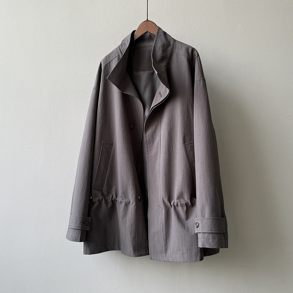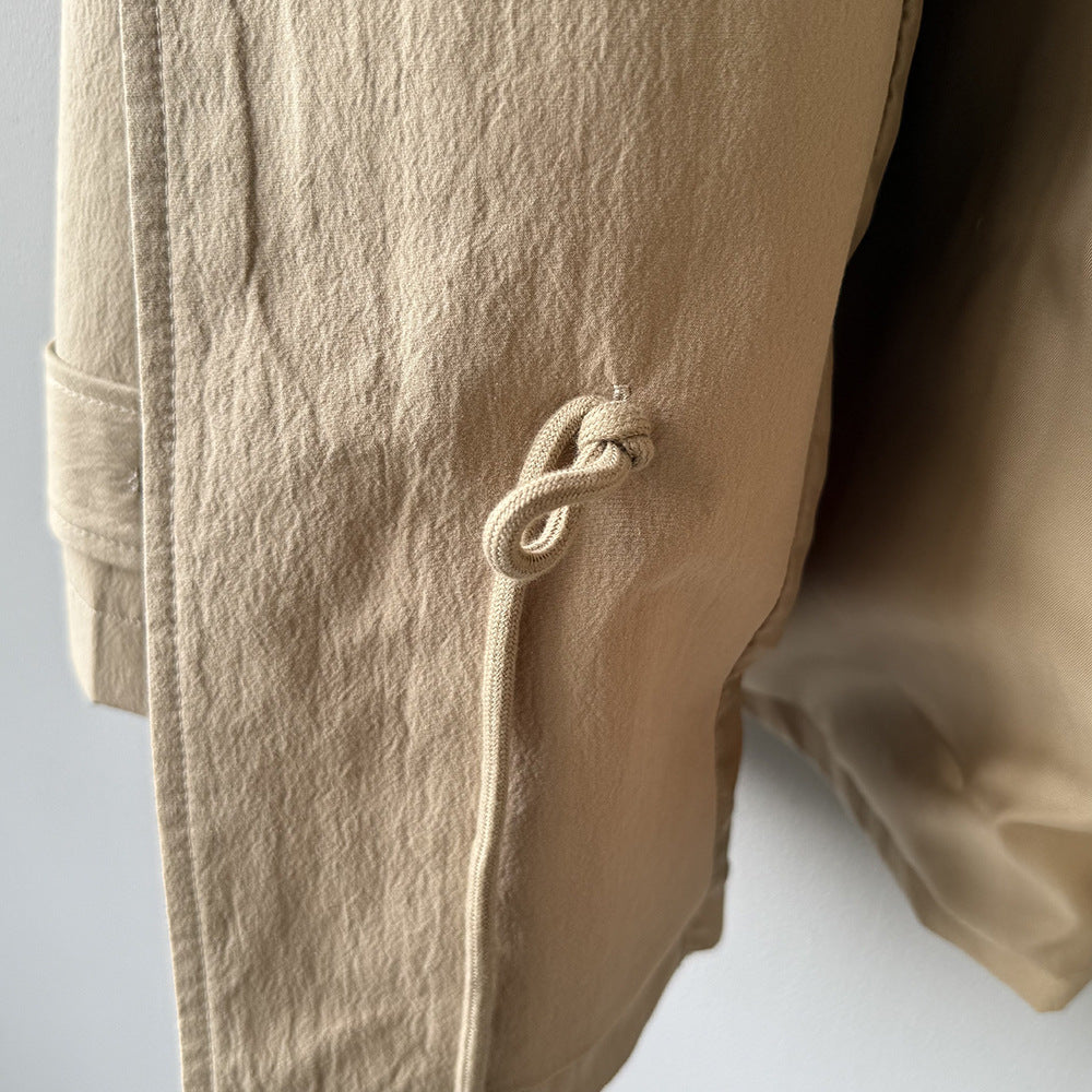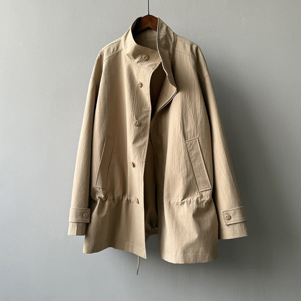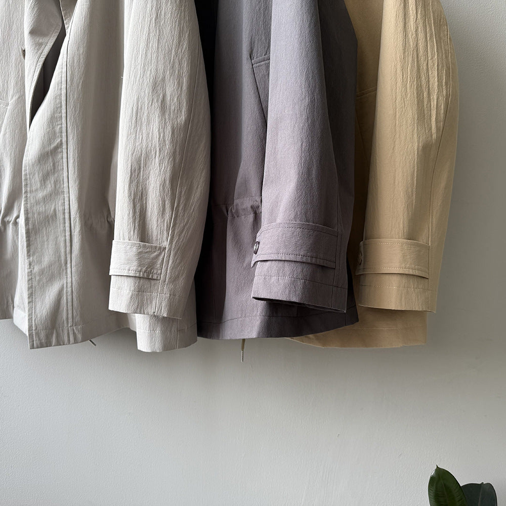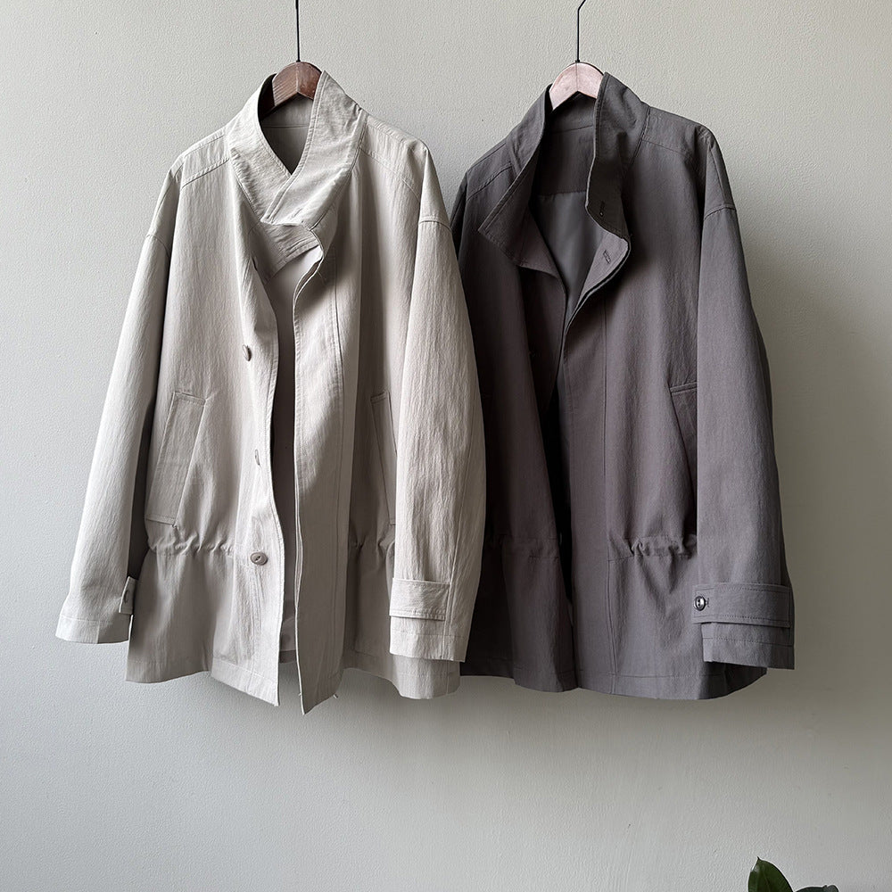 【Y71200】實拍初秋個性立領收腰抽繩風衣外套250911