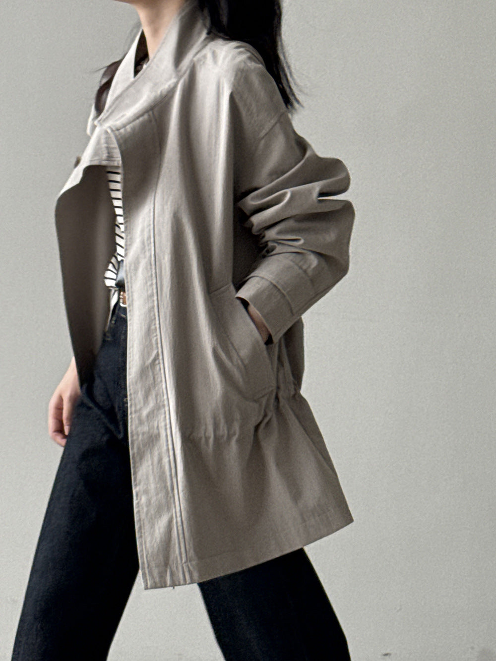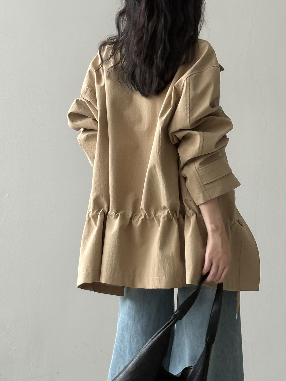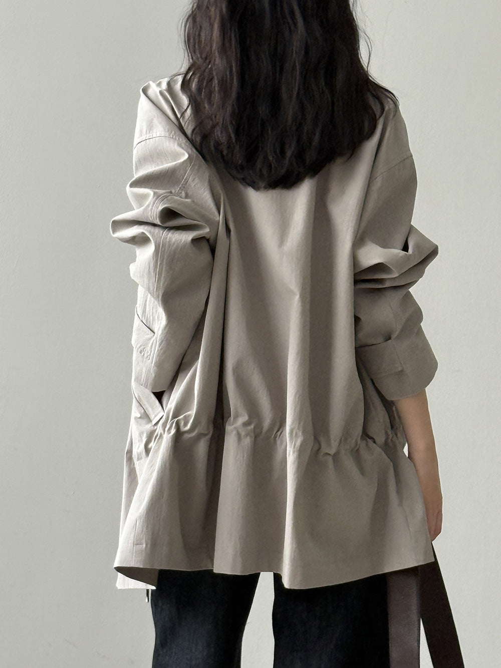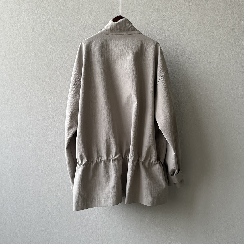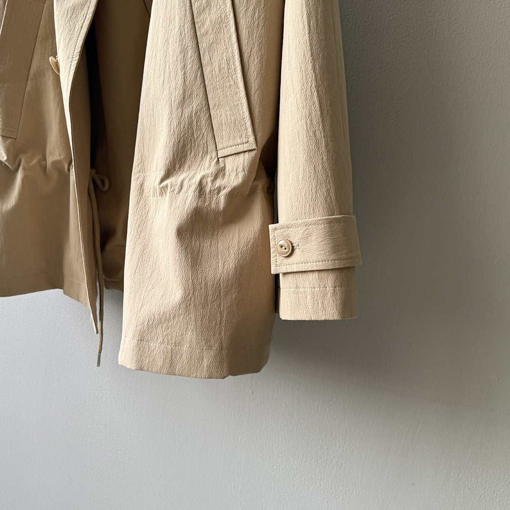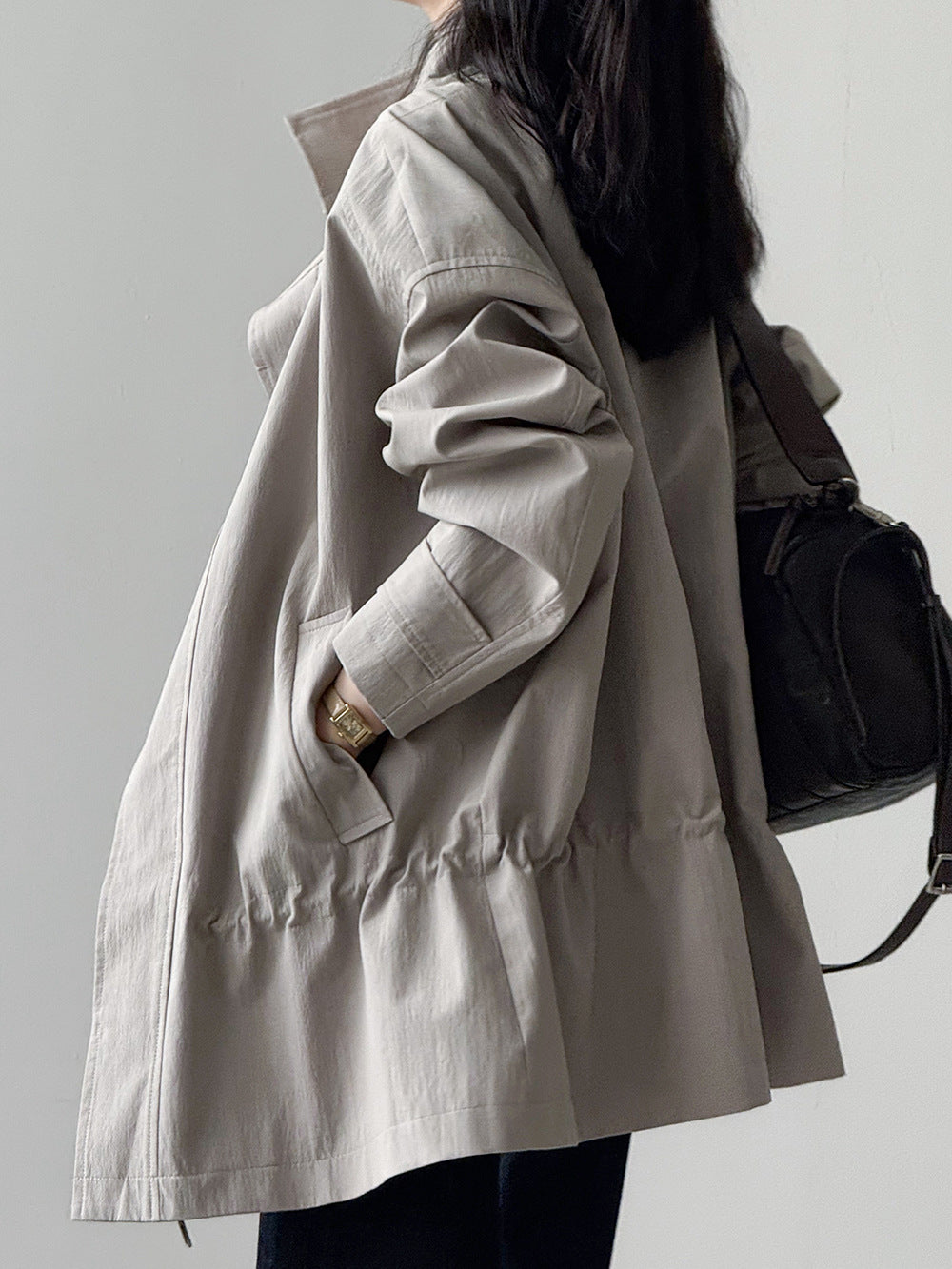 【Y71200】實拍初秋個性立領收腰抽繩風衣外套250911
