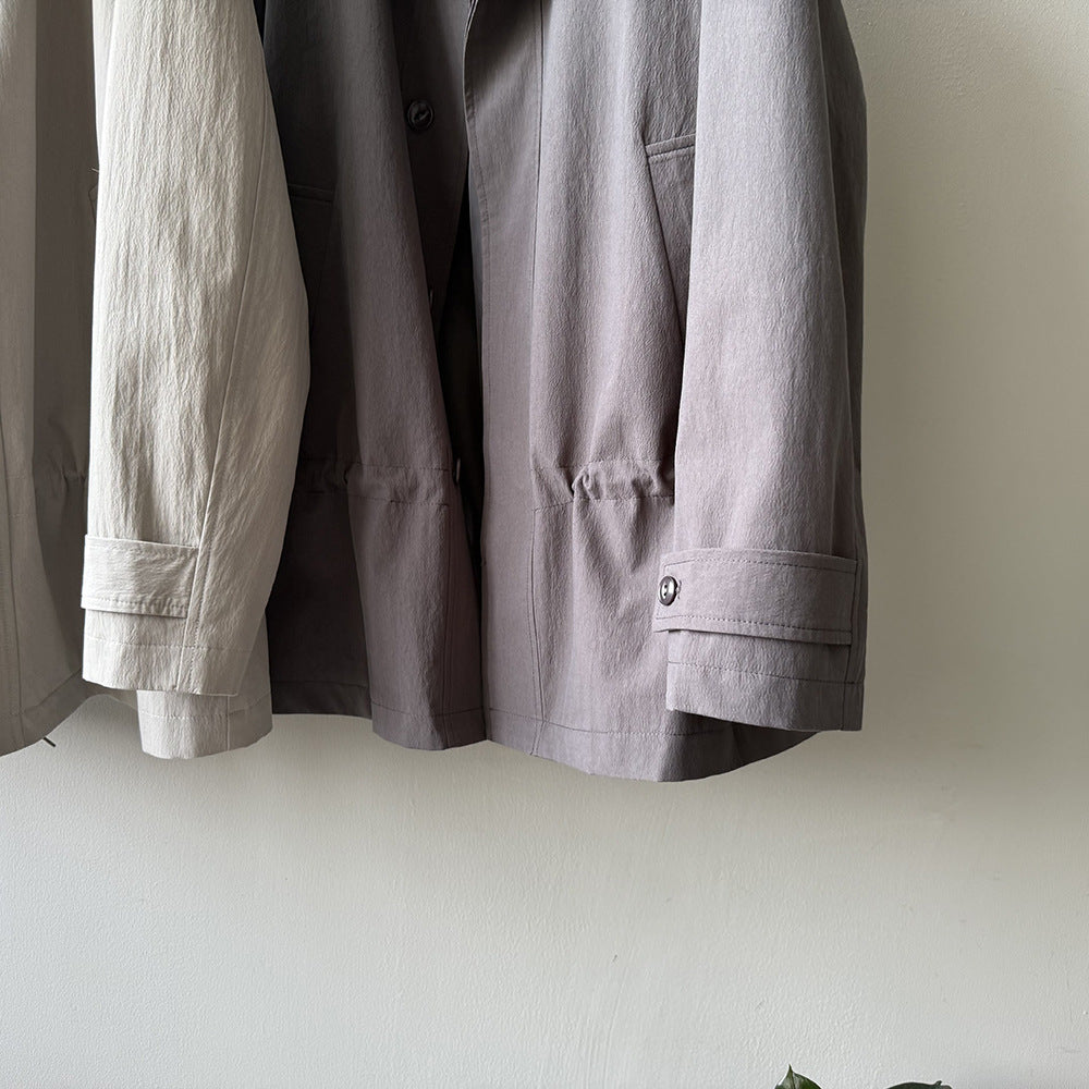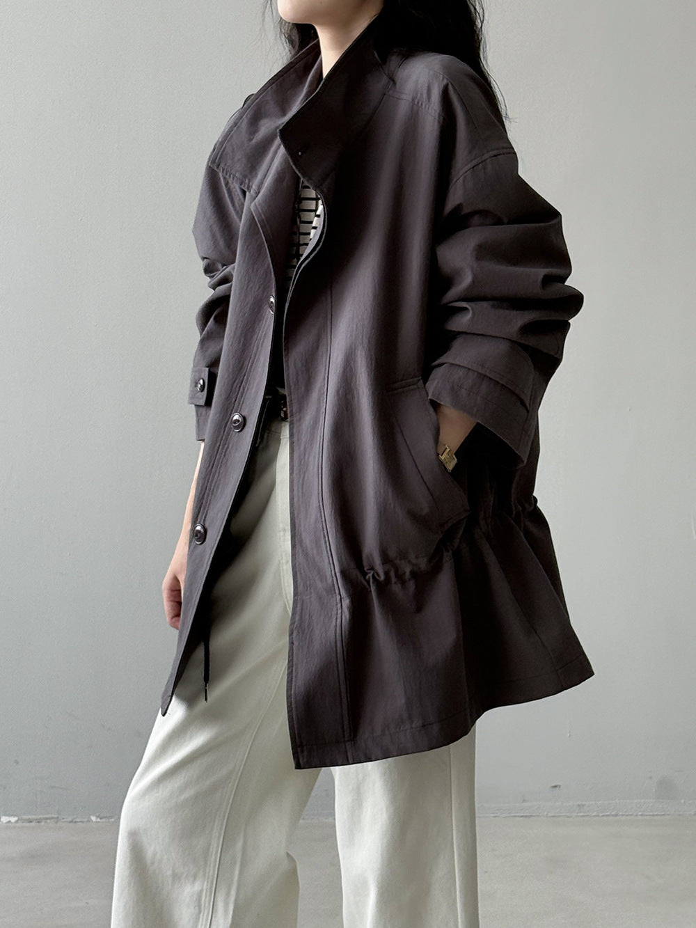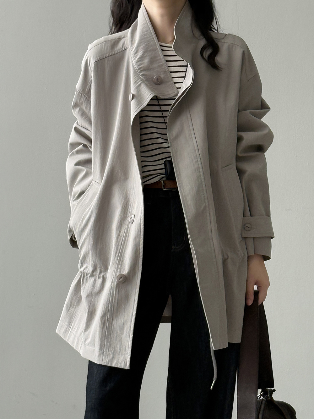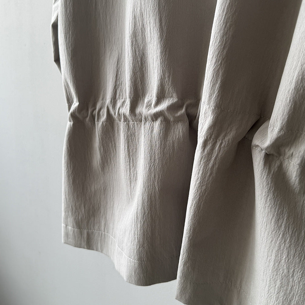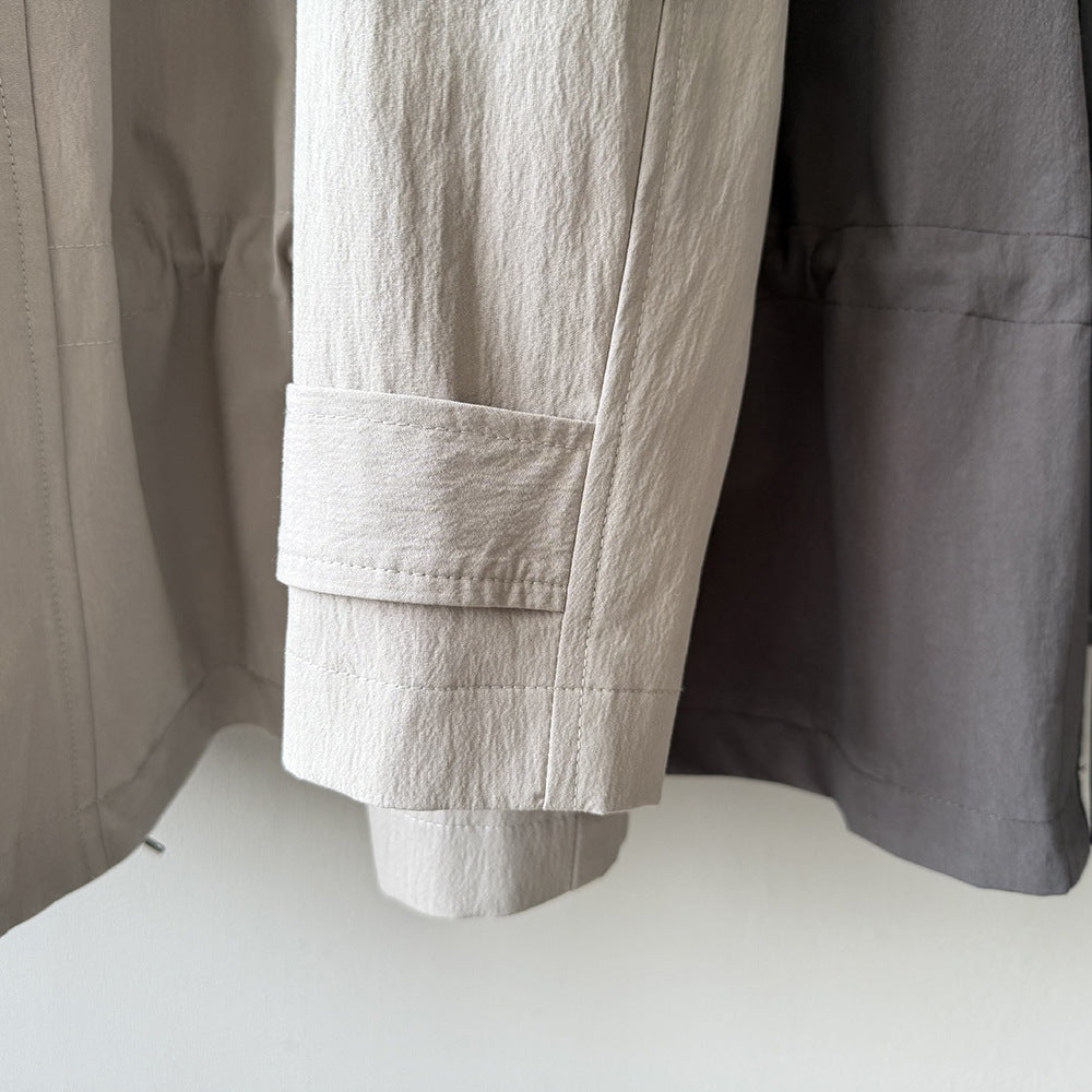 【Y71200】實拍初秋個性立領收腰抽繩風衣外套250911