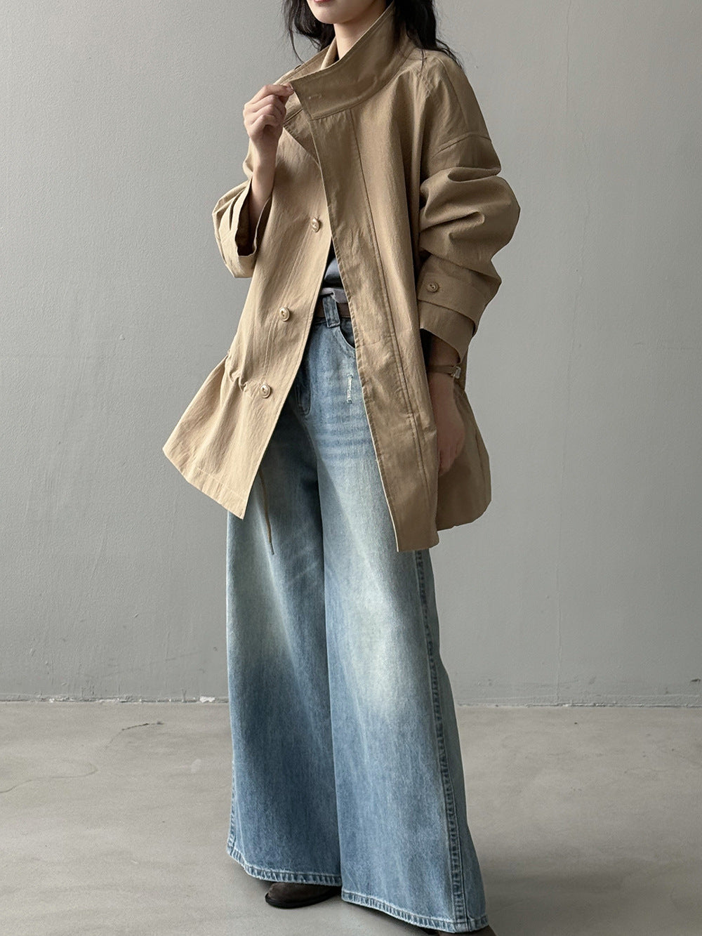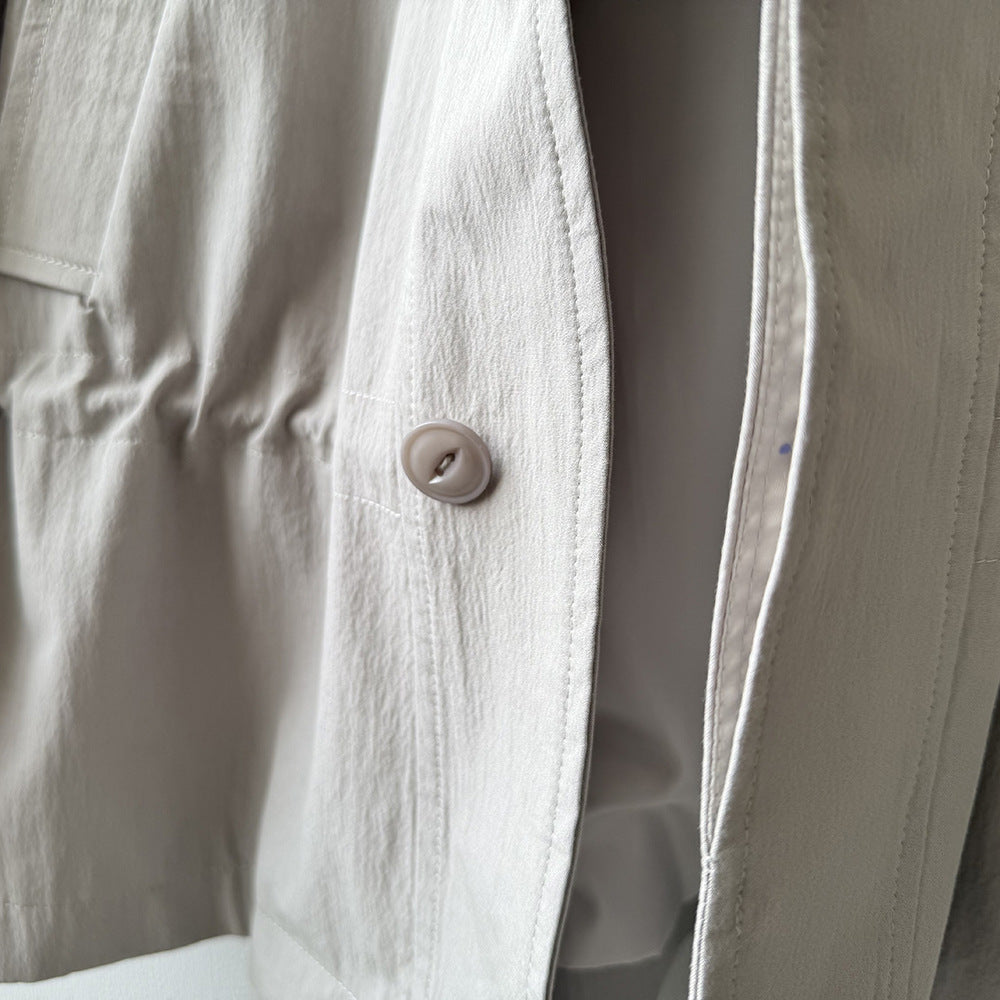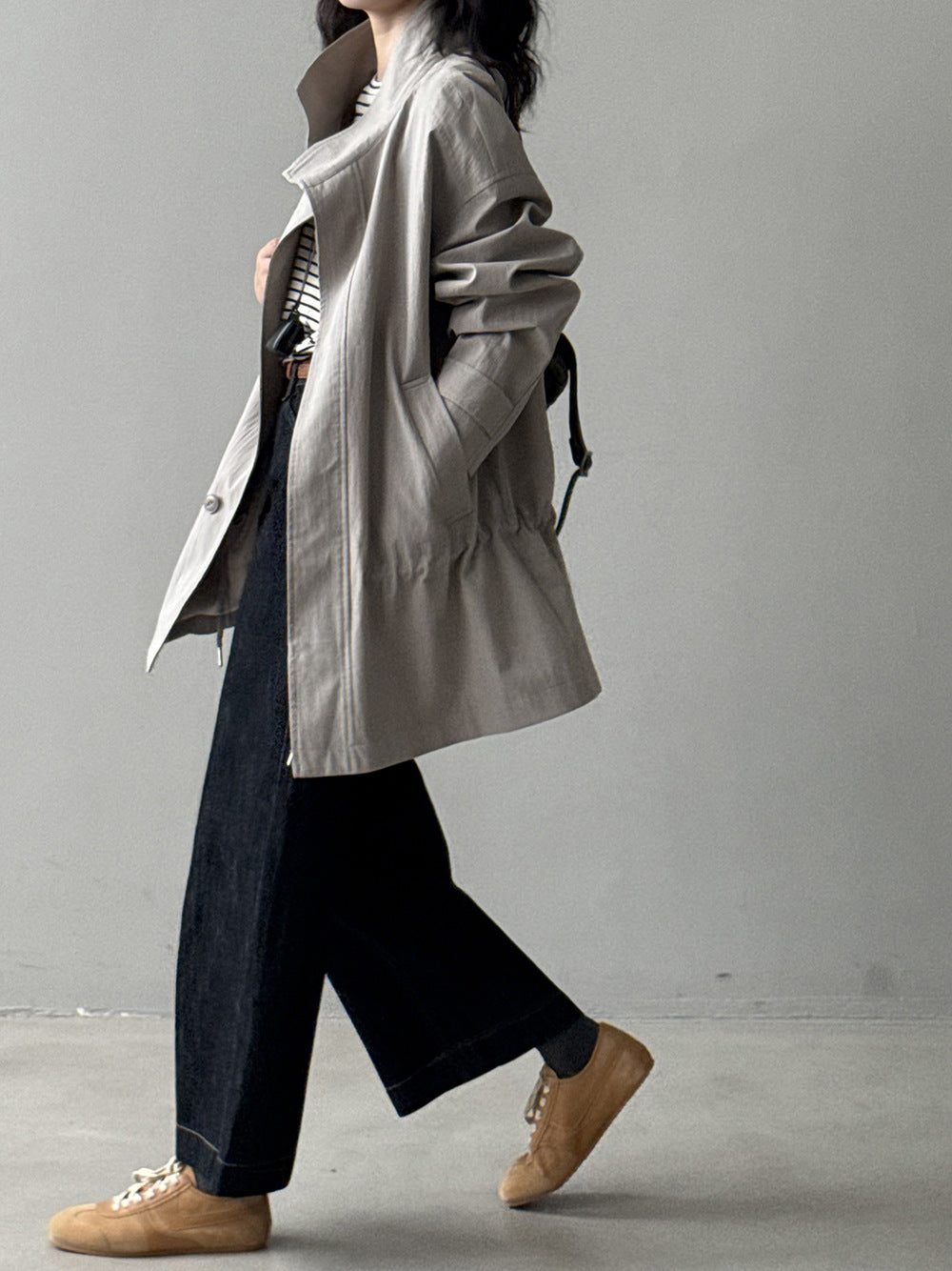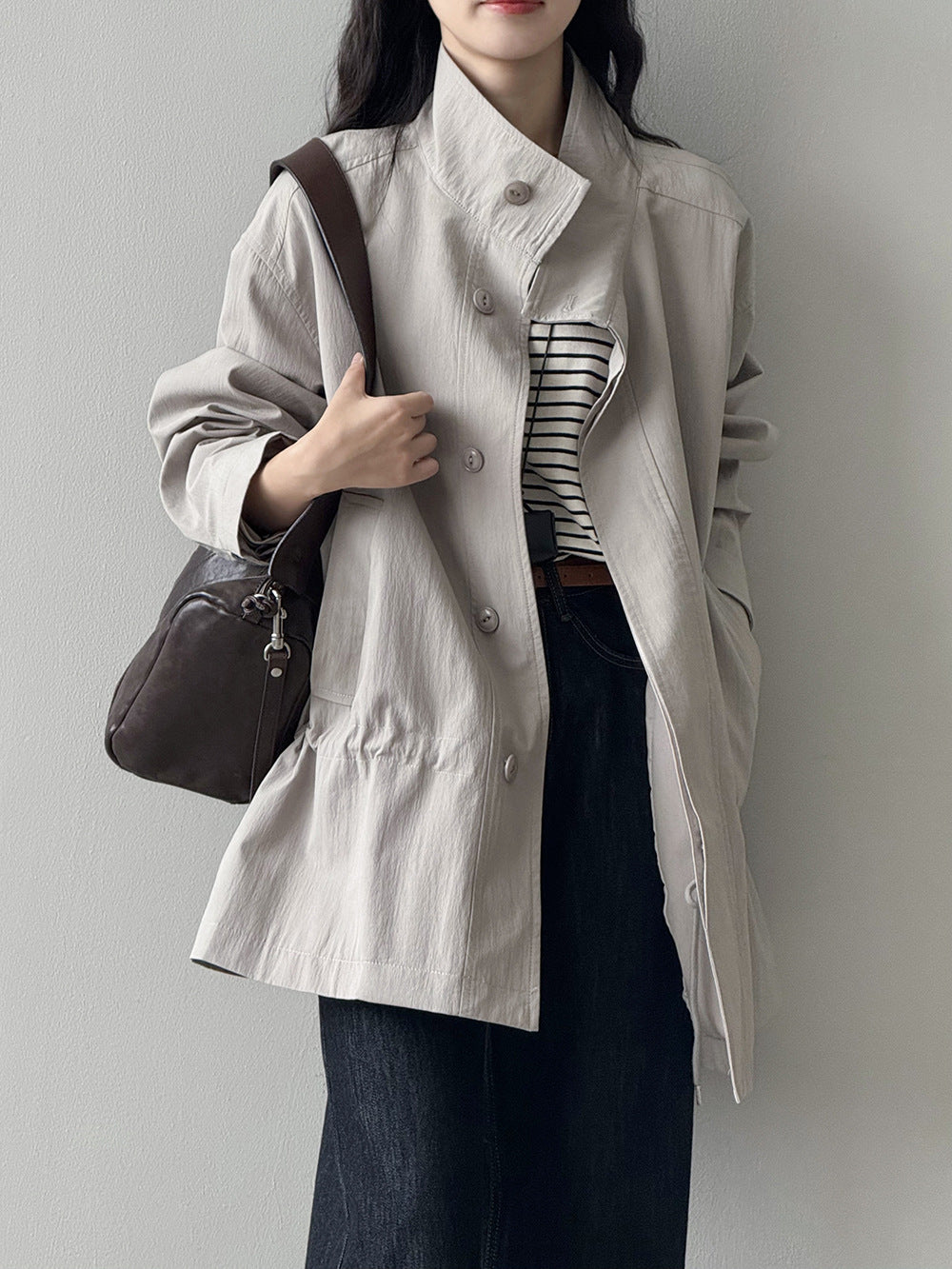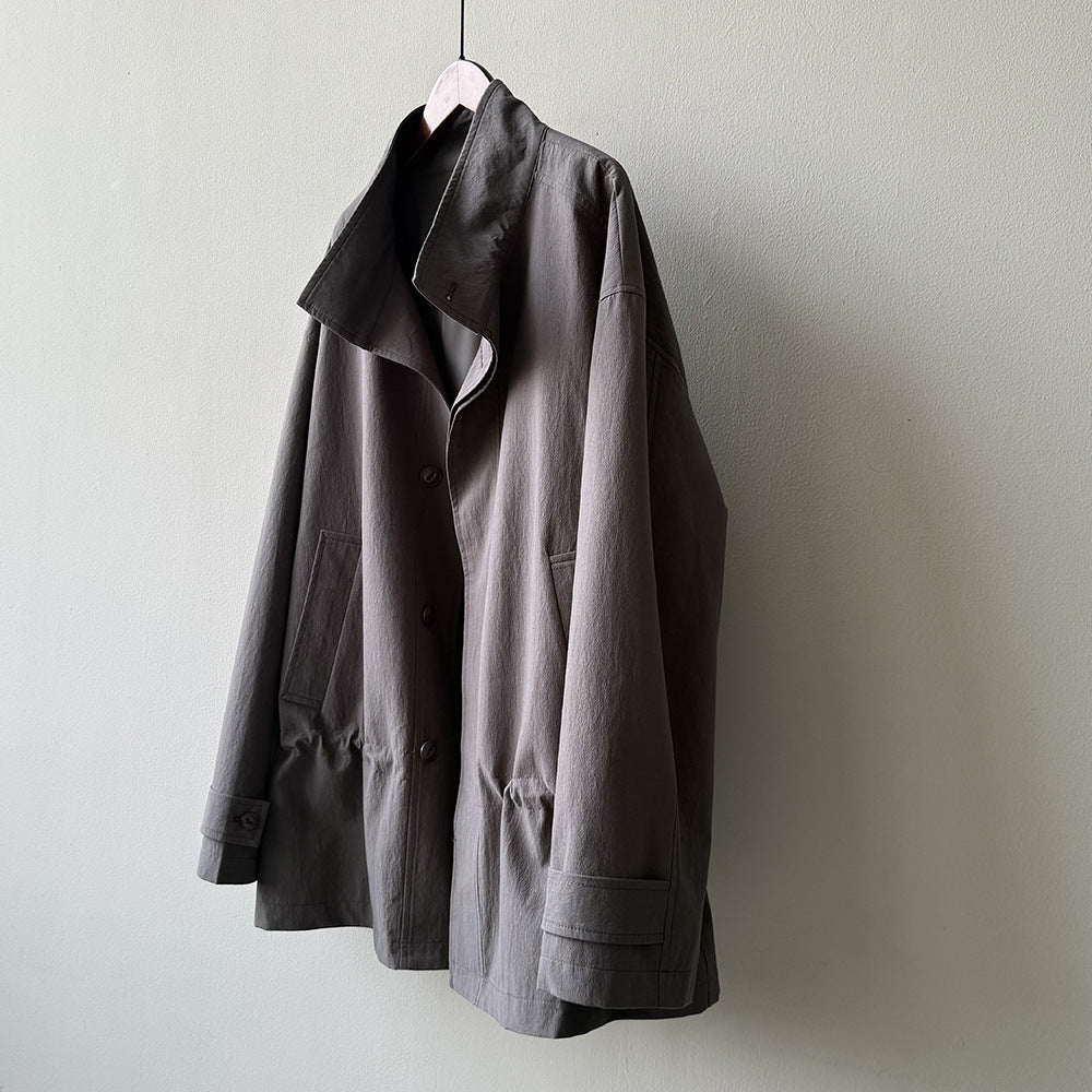 【Y71200】實拍初秋個性立領收腰抽繩風衣外套250911