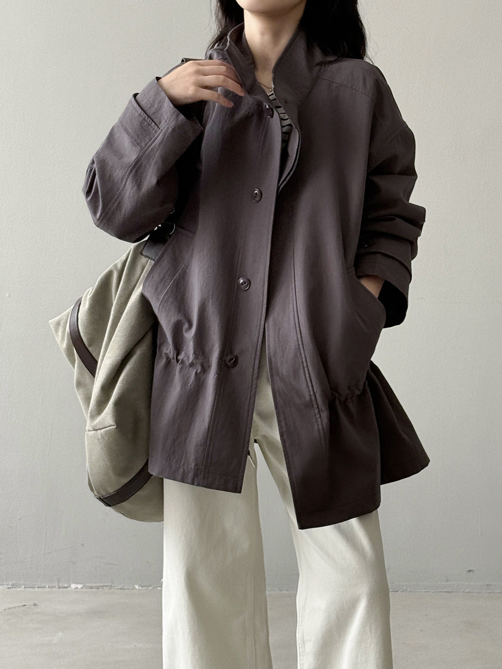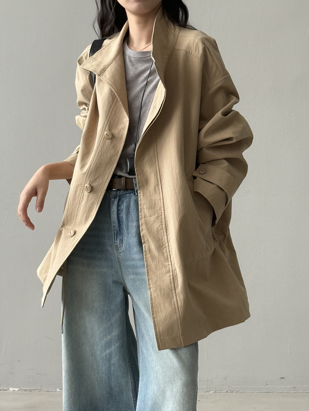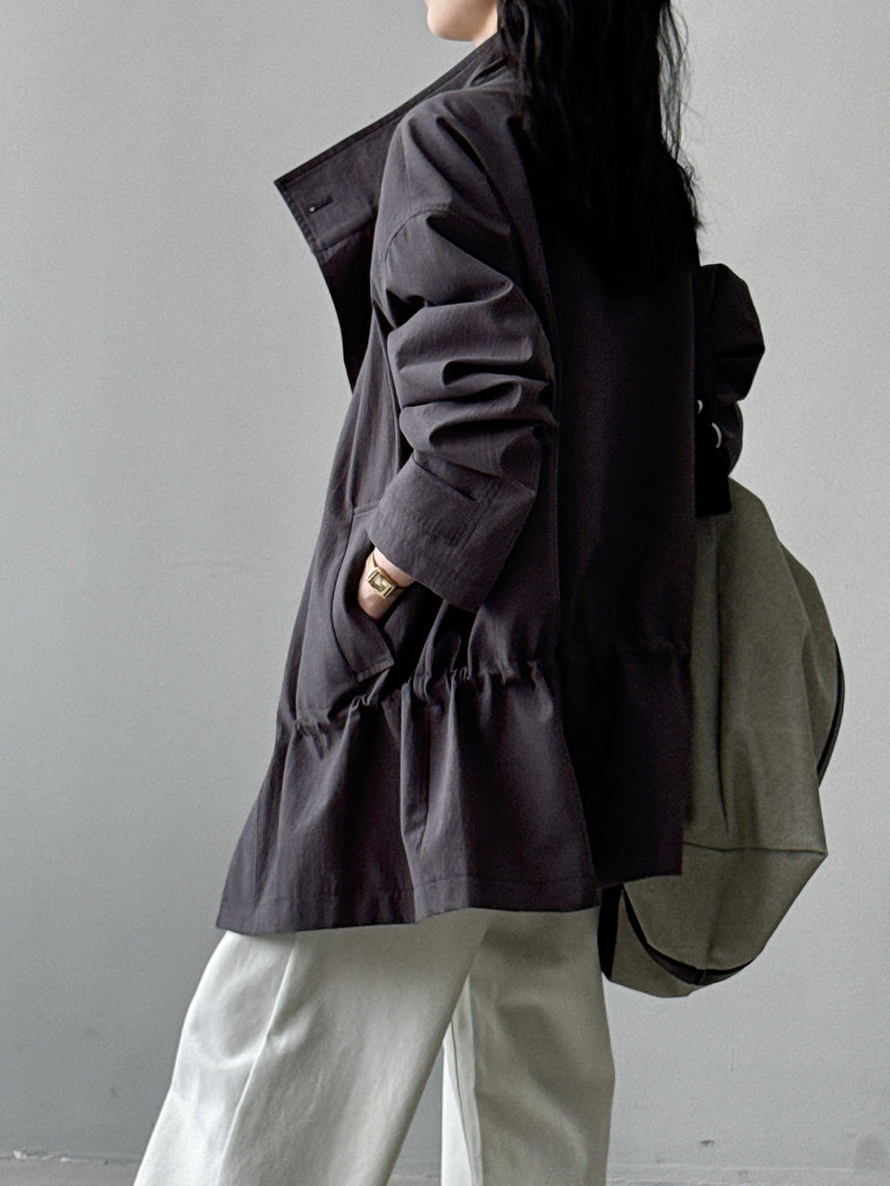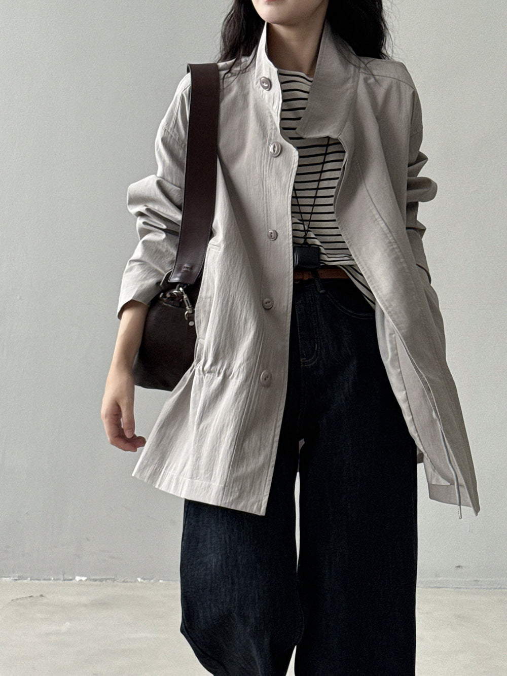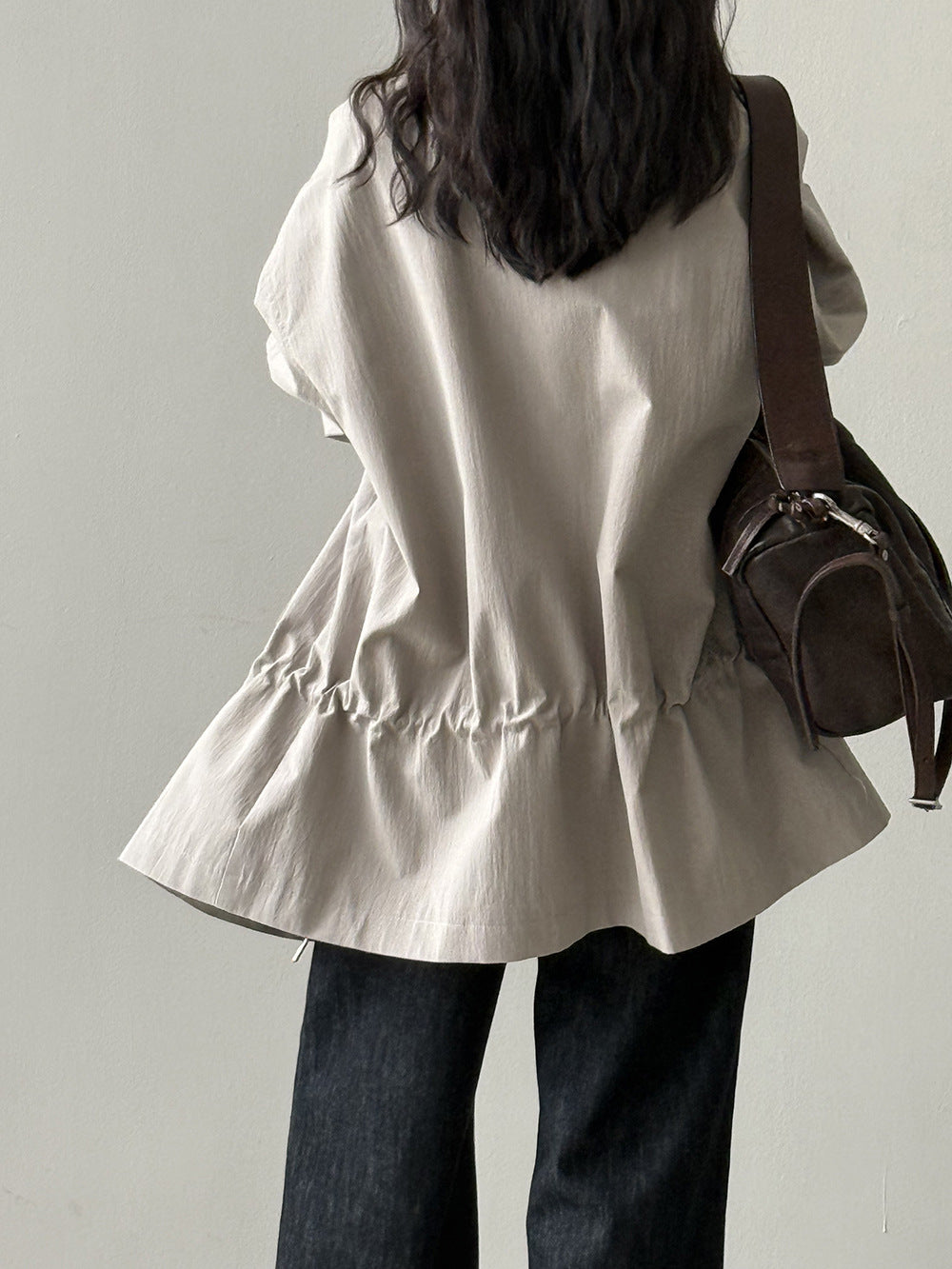 【Y71200】實拍初秋個性立領收腰抽繩風衣外套250911