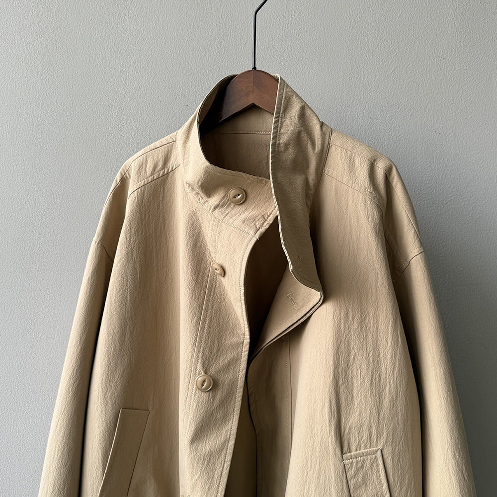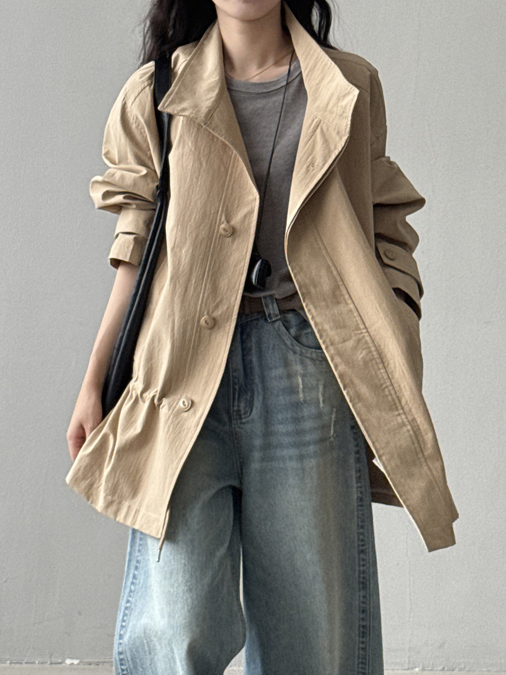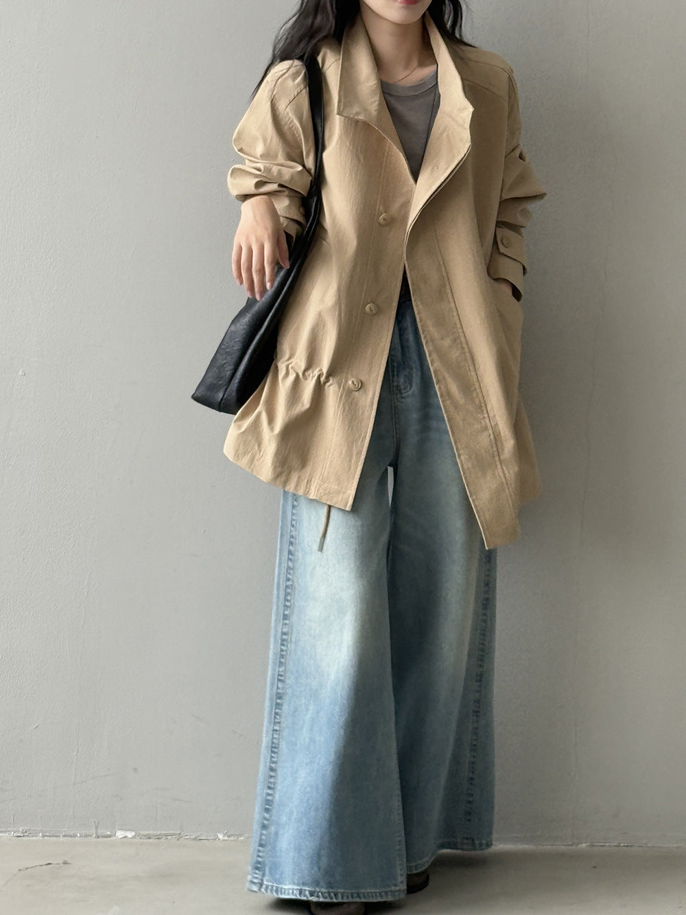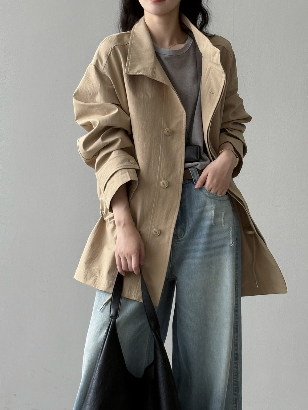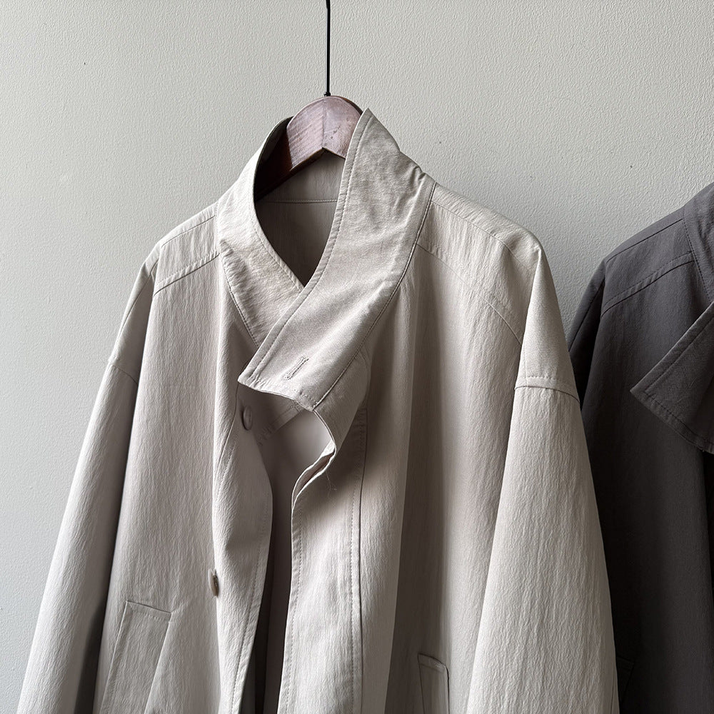 【Y71200】實拍初秋個性立領收腰抽繩風衣外套250911