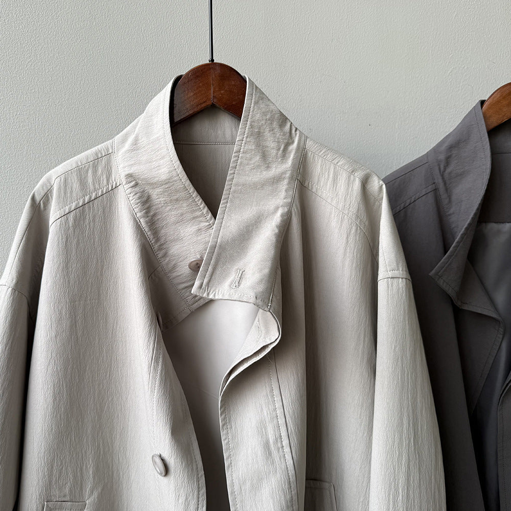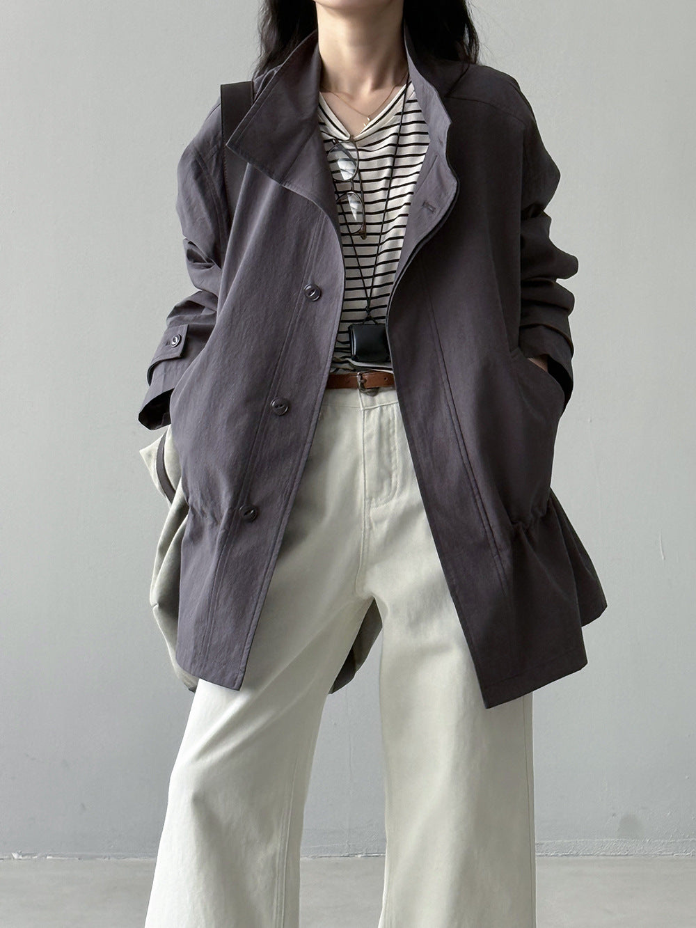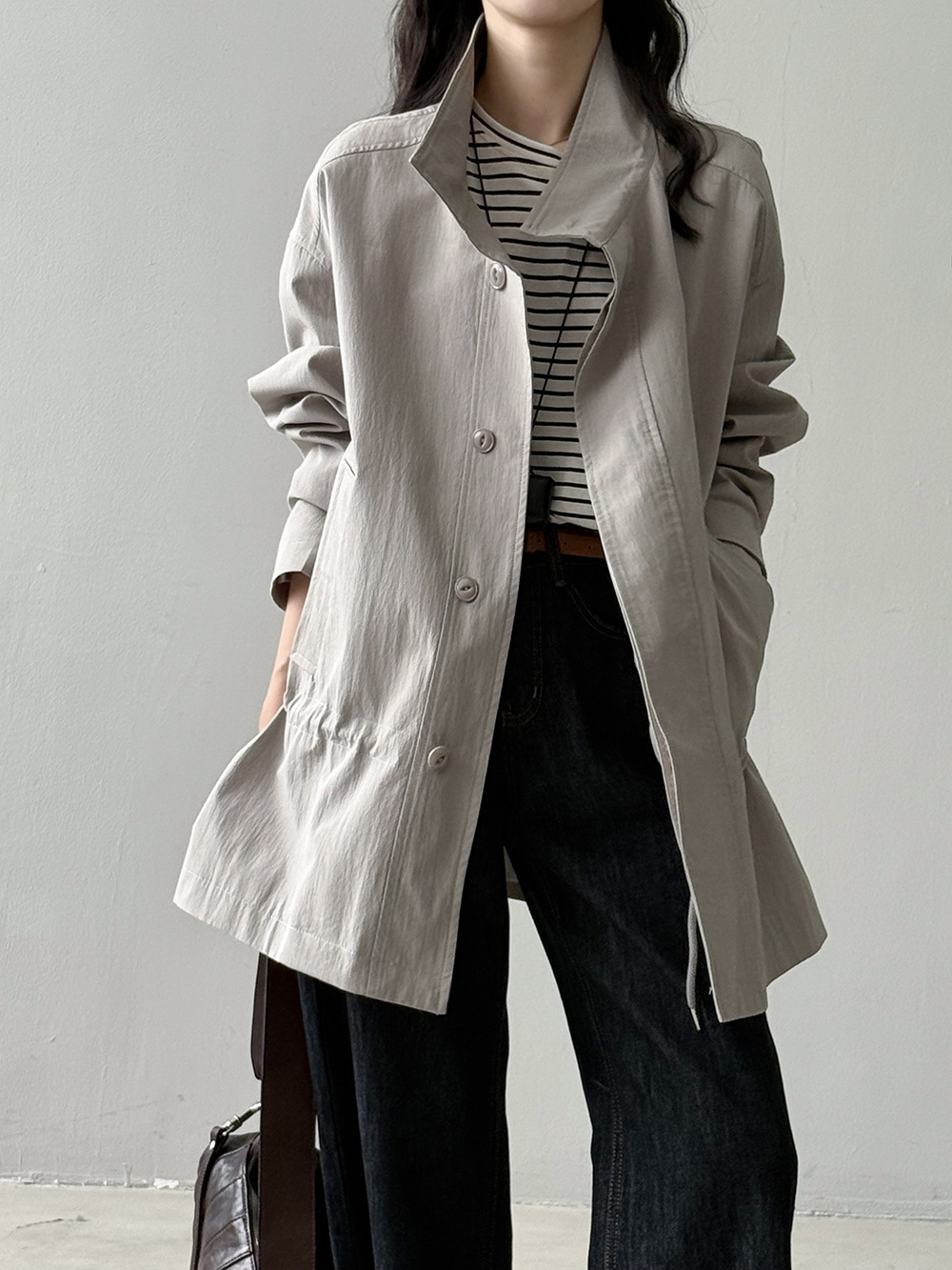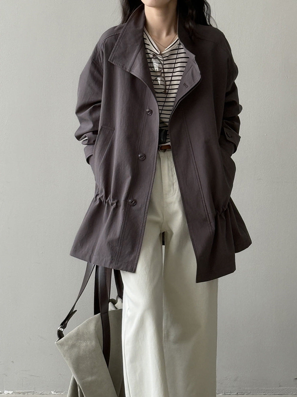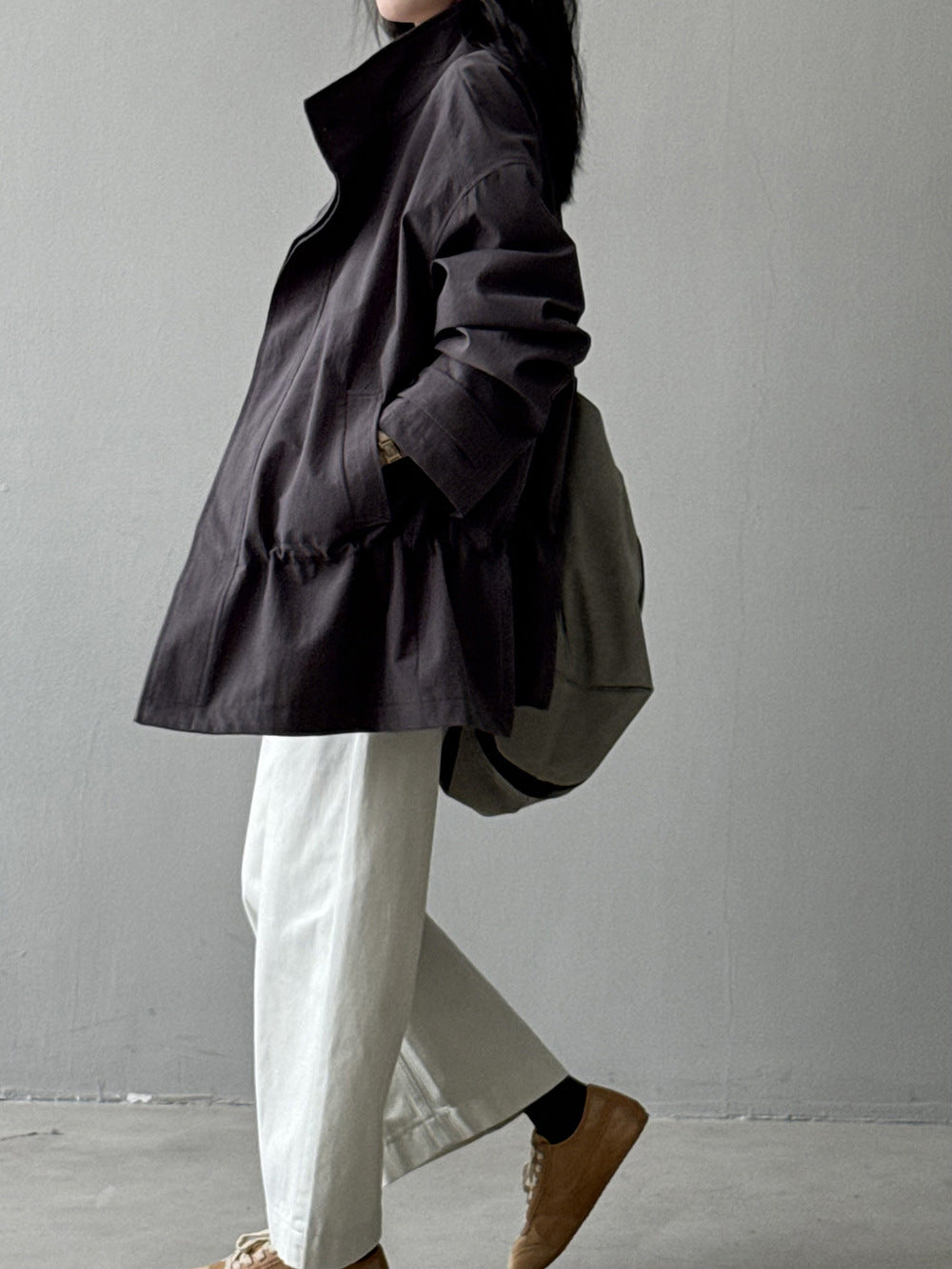 【Y71200】實拍初秋個性立領收腰抽繩風衣外套250911