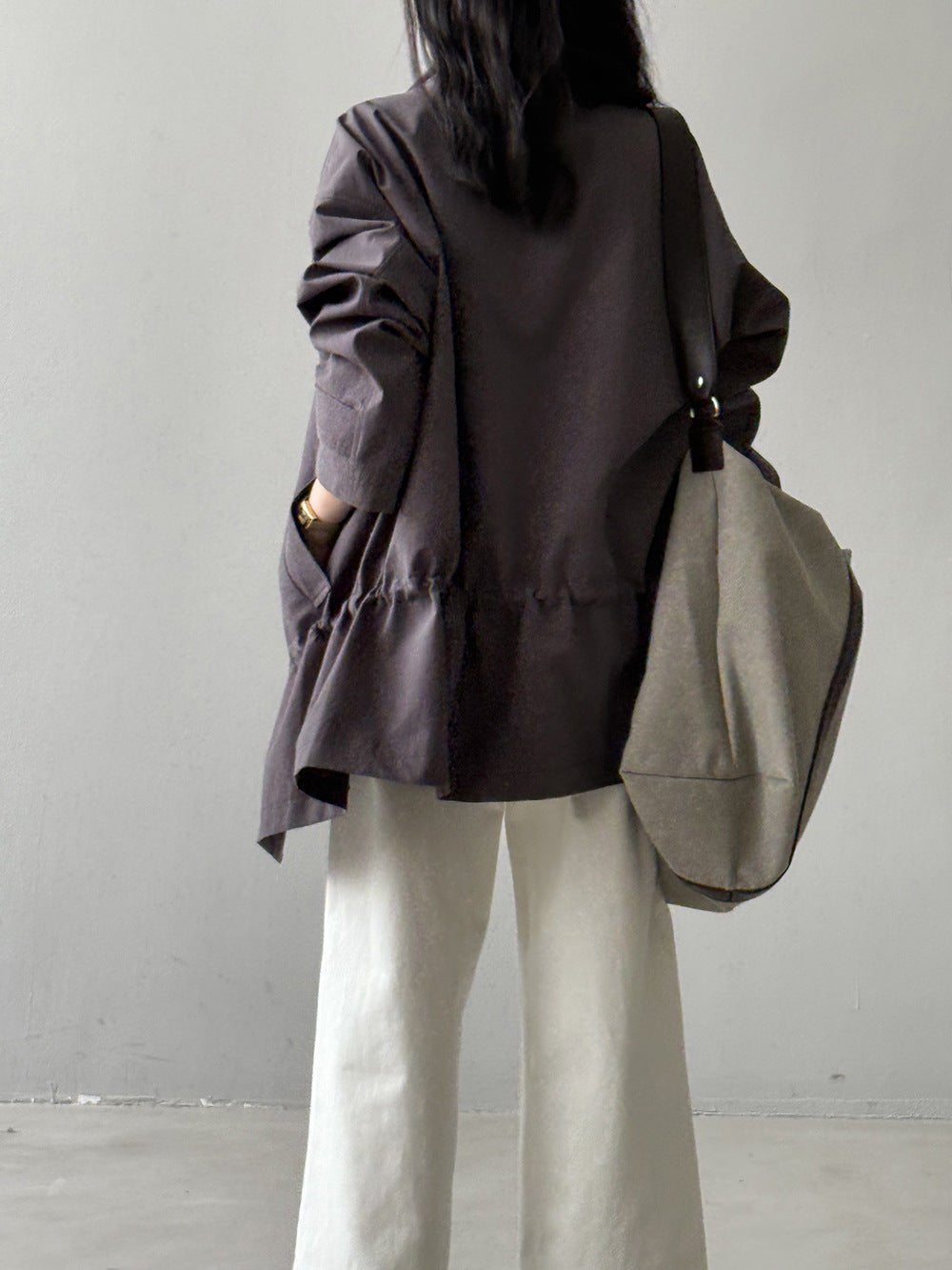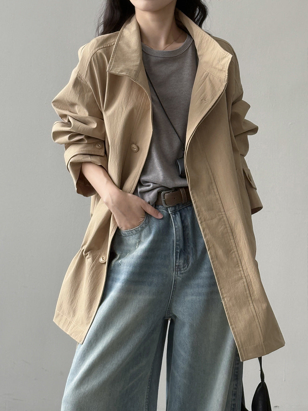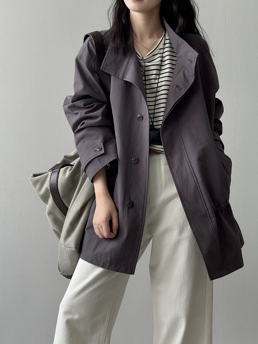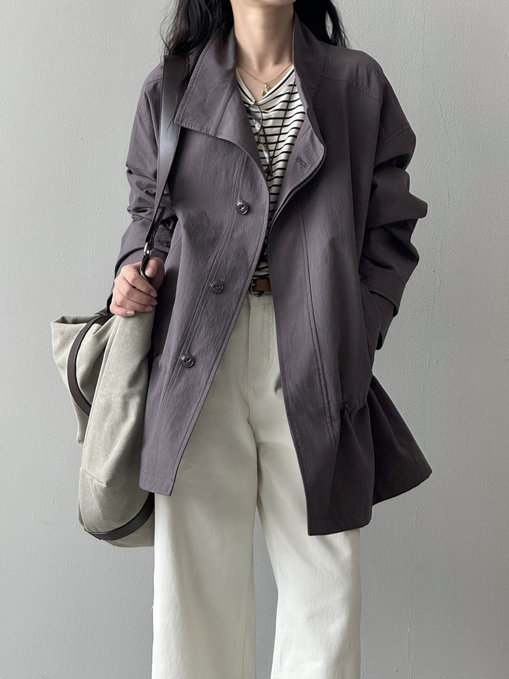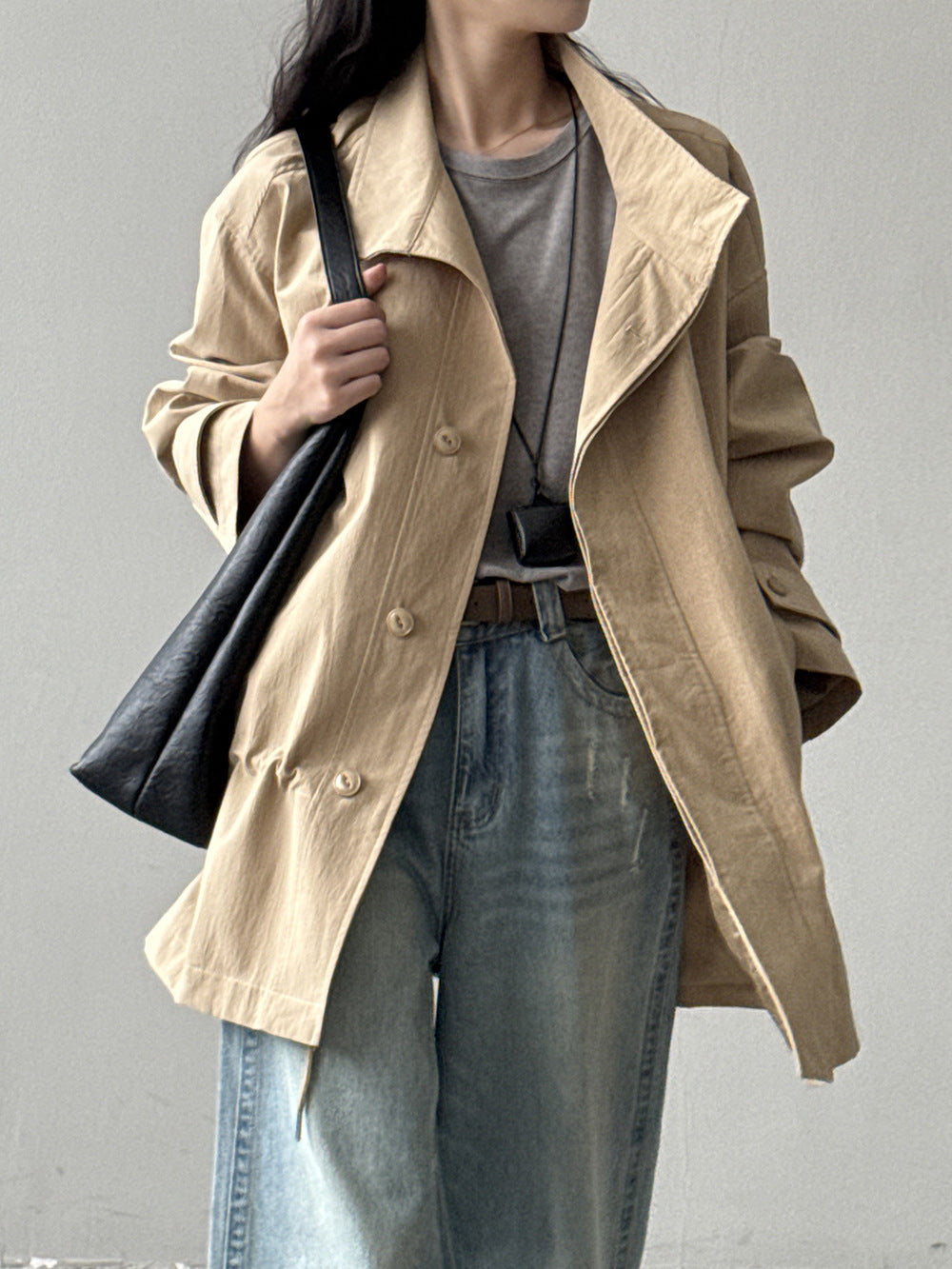 【Y71200】實拍初秋個性立領收腰抽繩風衣外套250911