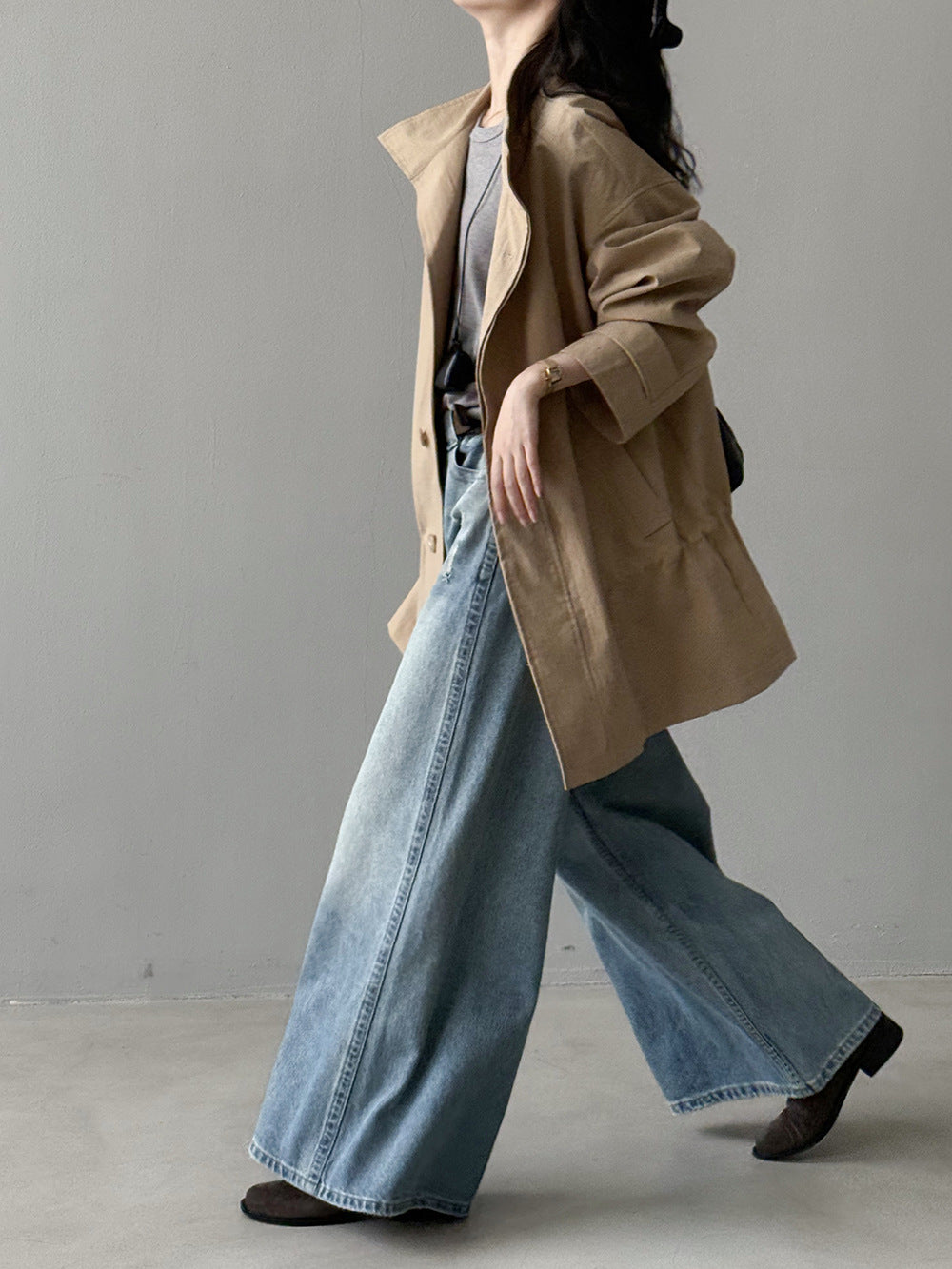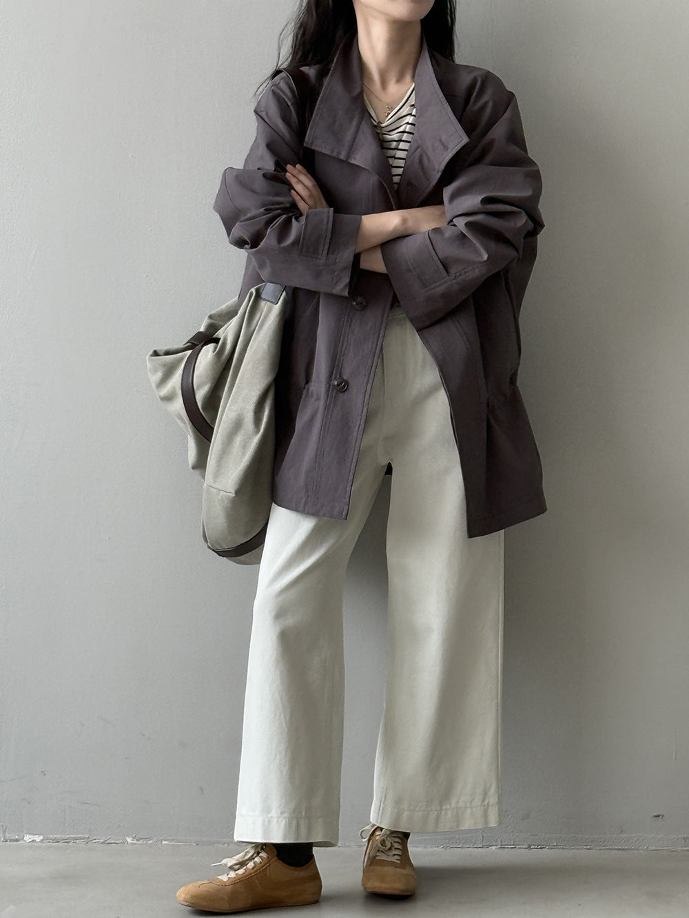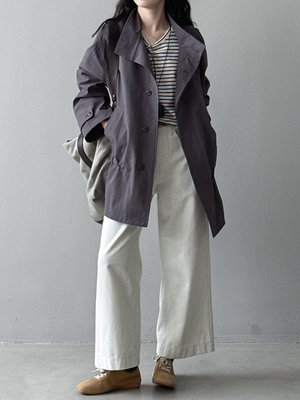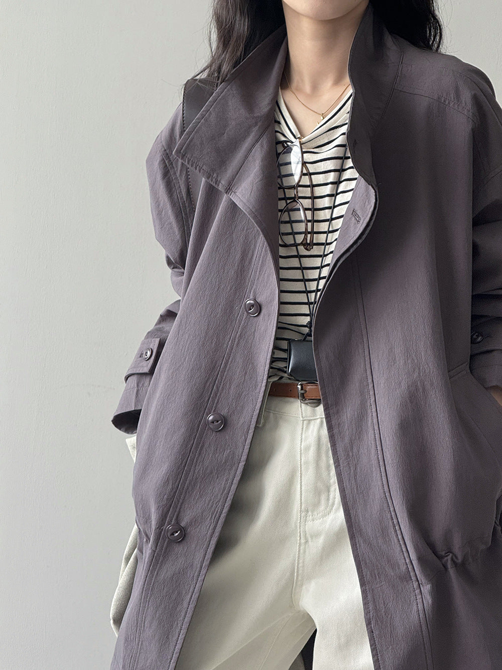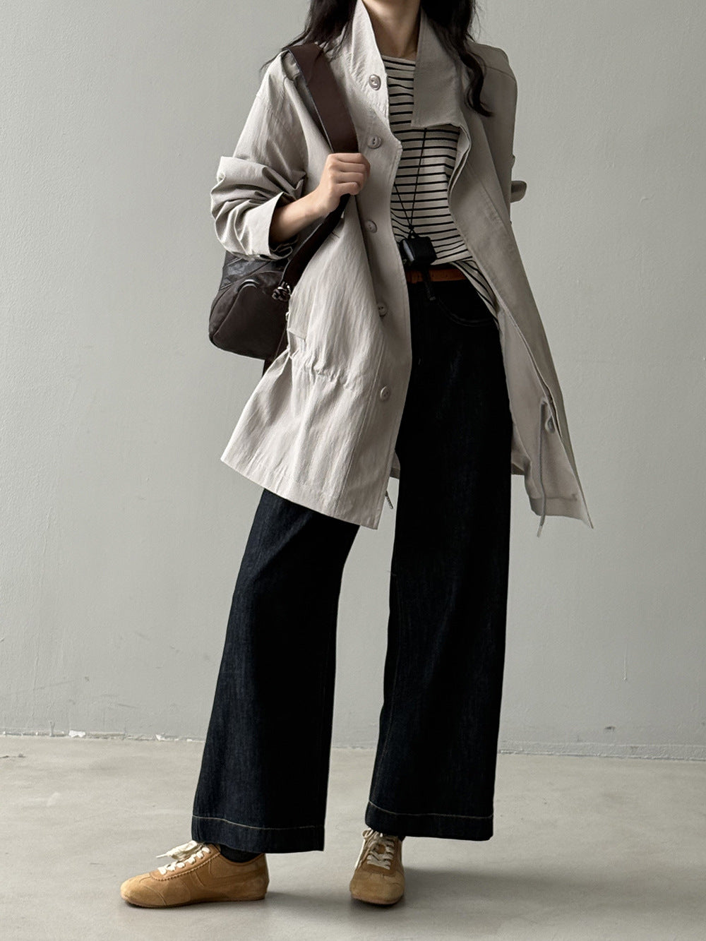 【Y71200】實拍初秋個性立領收腰抽繩風衣外套250911