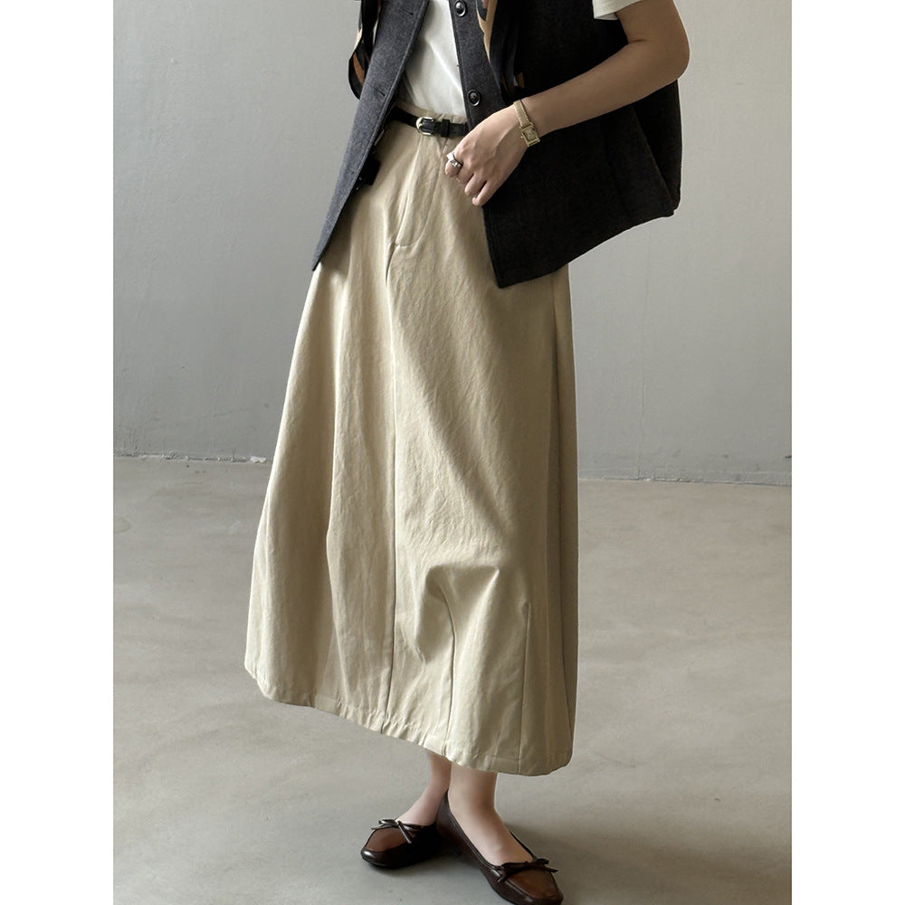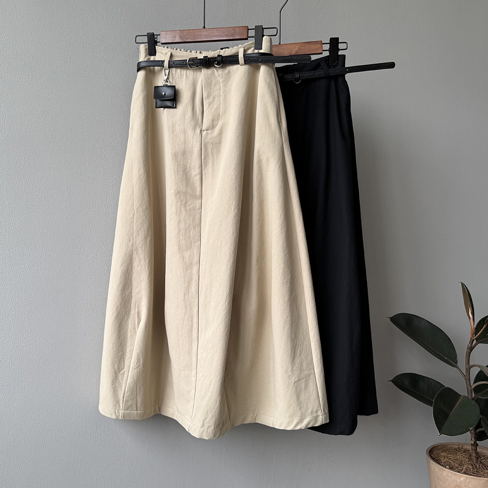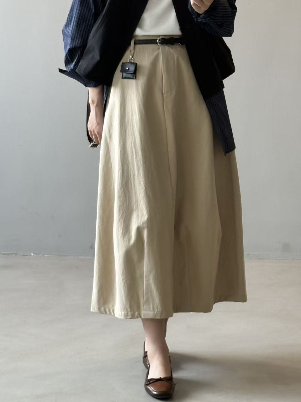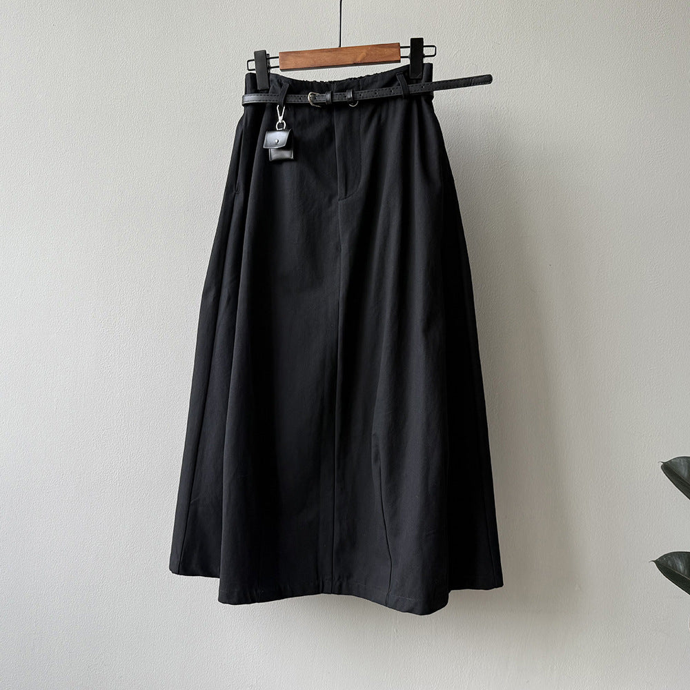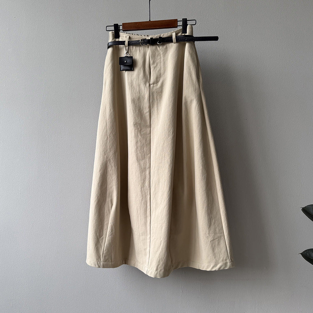 【Y78251】實拍初秋棉質高腰A字微氣球裙+腰帶小包250918