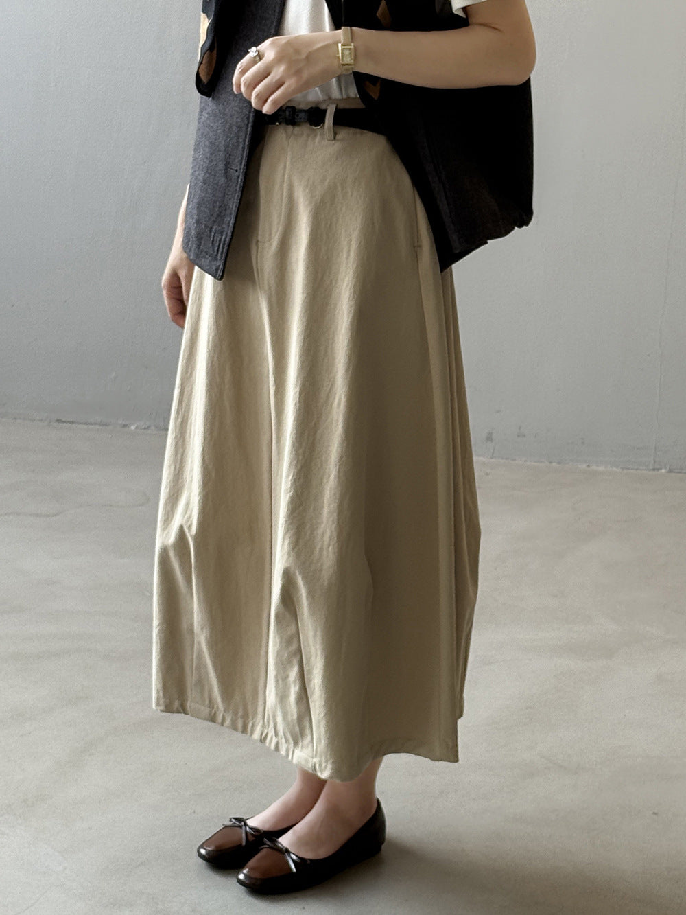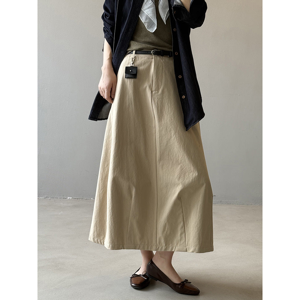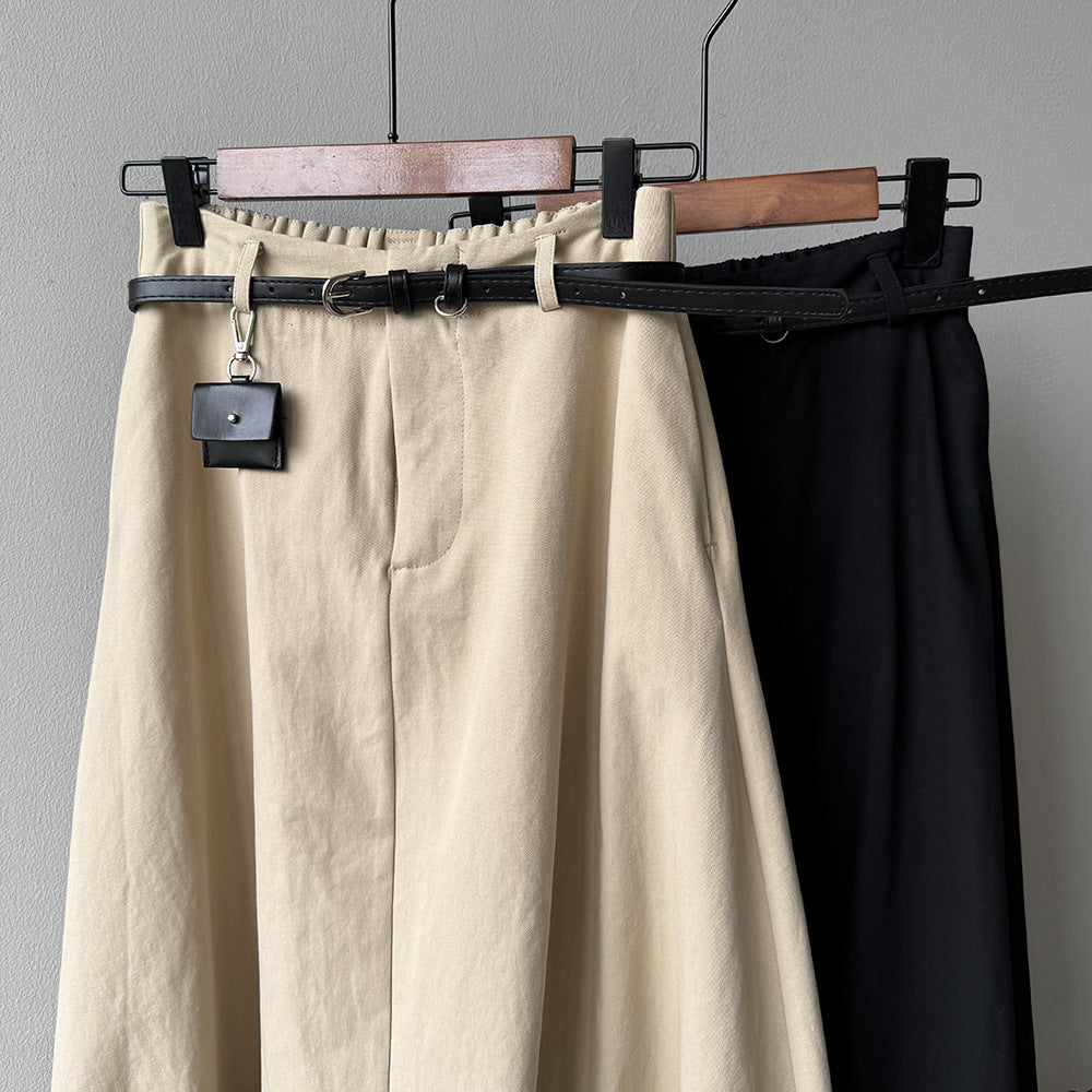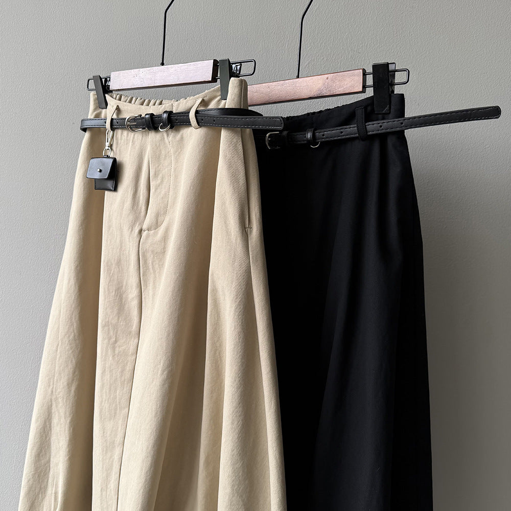 【Y78251】實拍初秋棉質高腰A字微氣球裙+腰帶小包250918