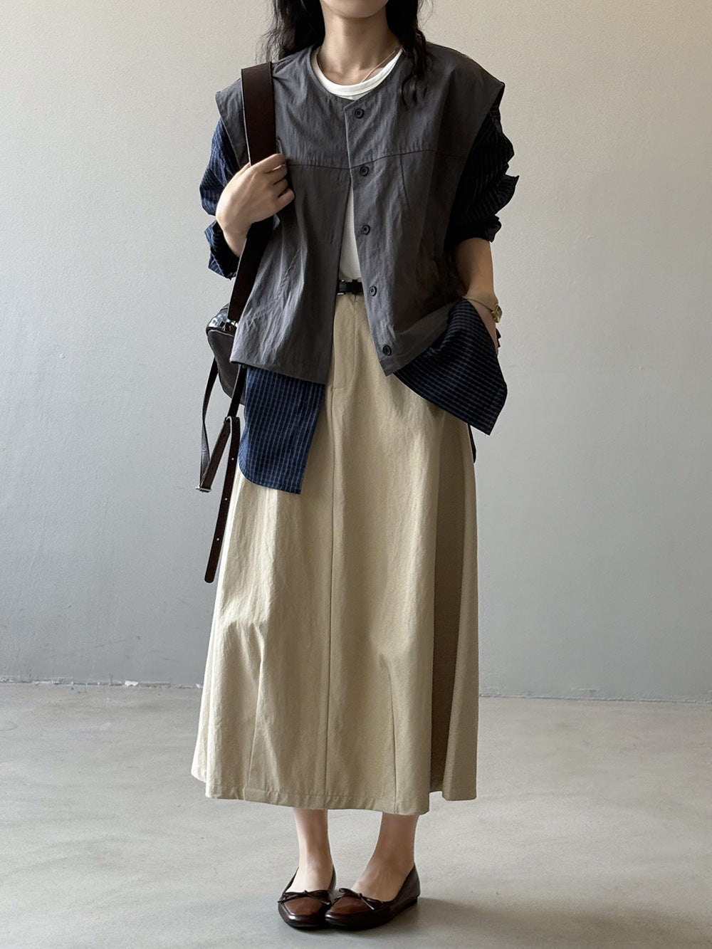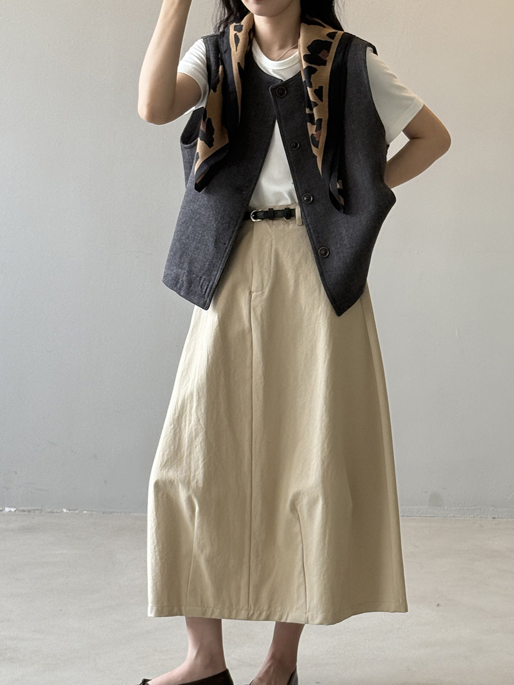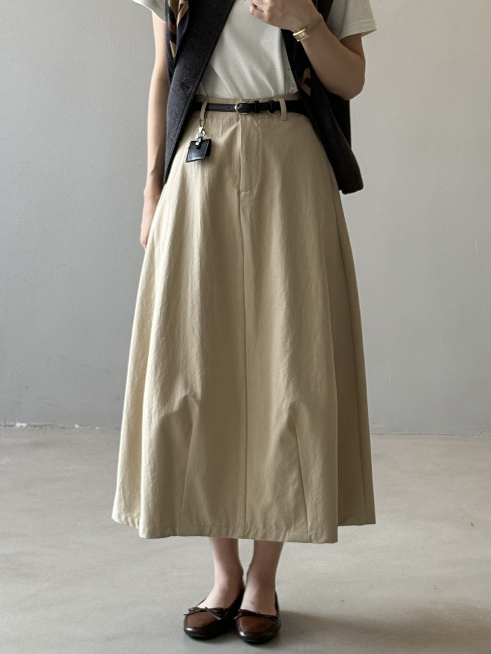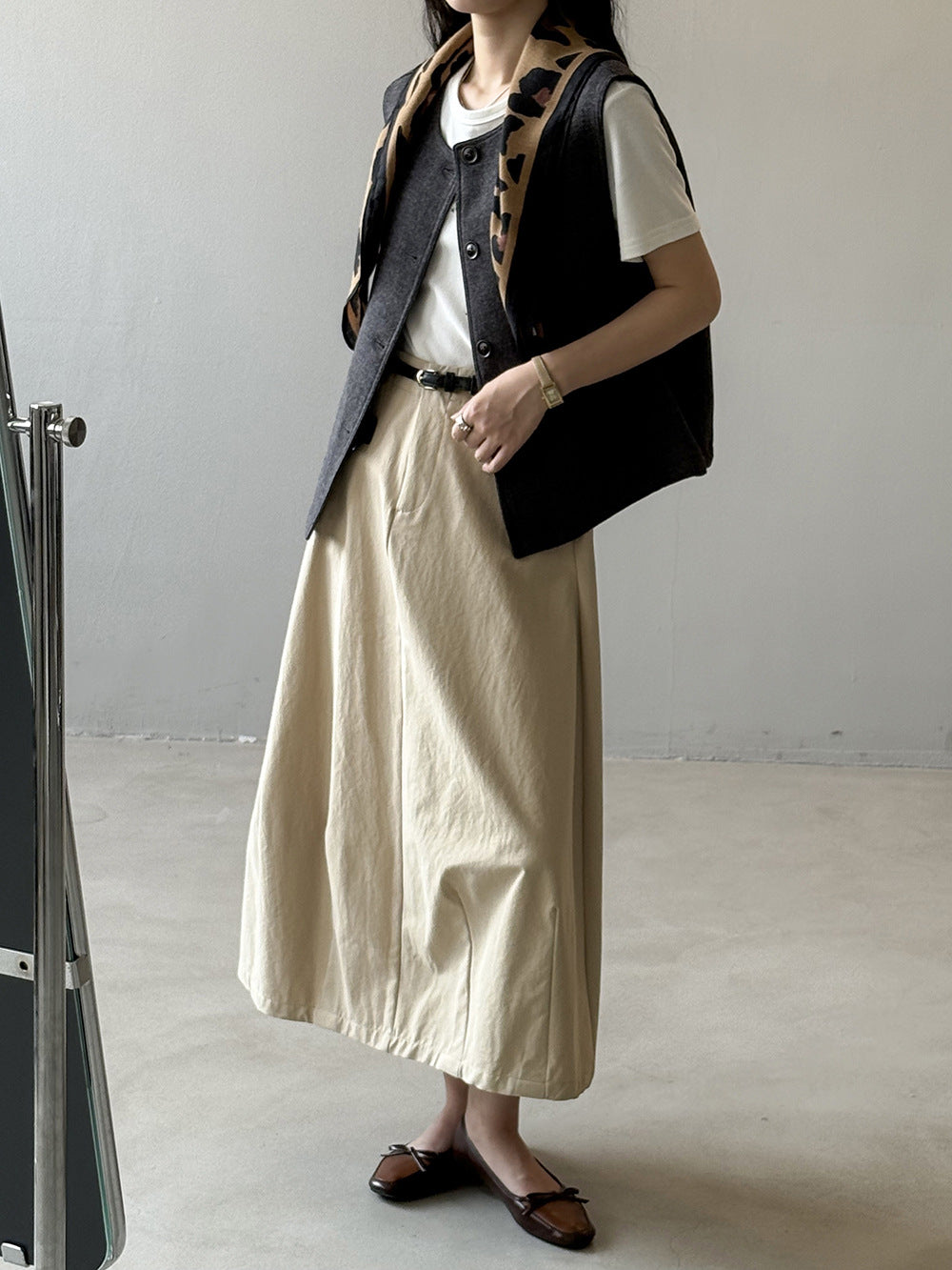 【Y78251】實拍初秋棉質高腰A字微氣球裙+腰帶小包250918