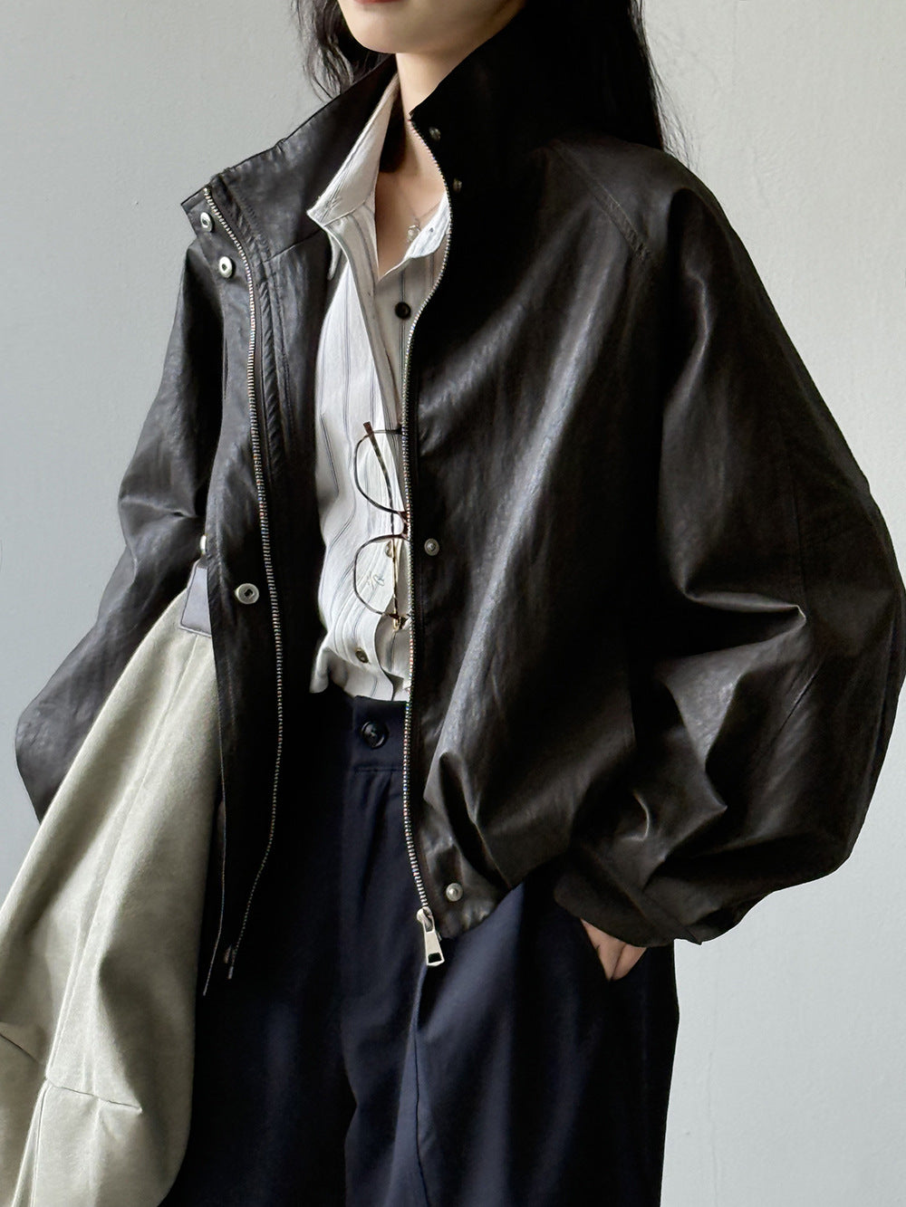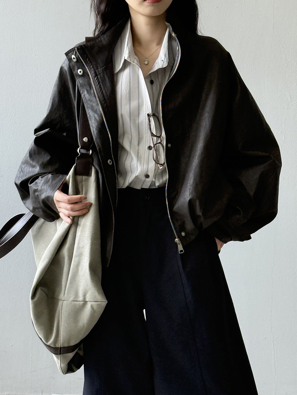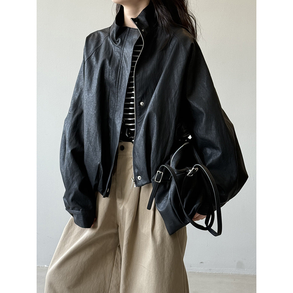 【Y79786】實拍初秋美式復古高級感PU夾克皮衣250822