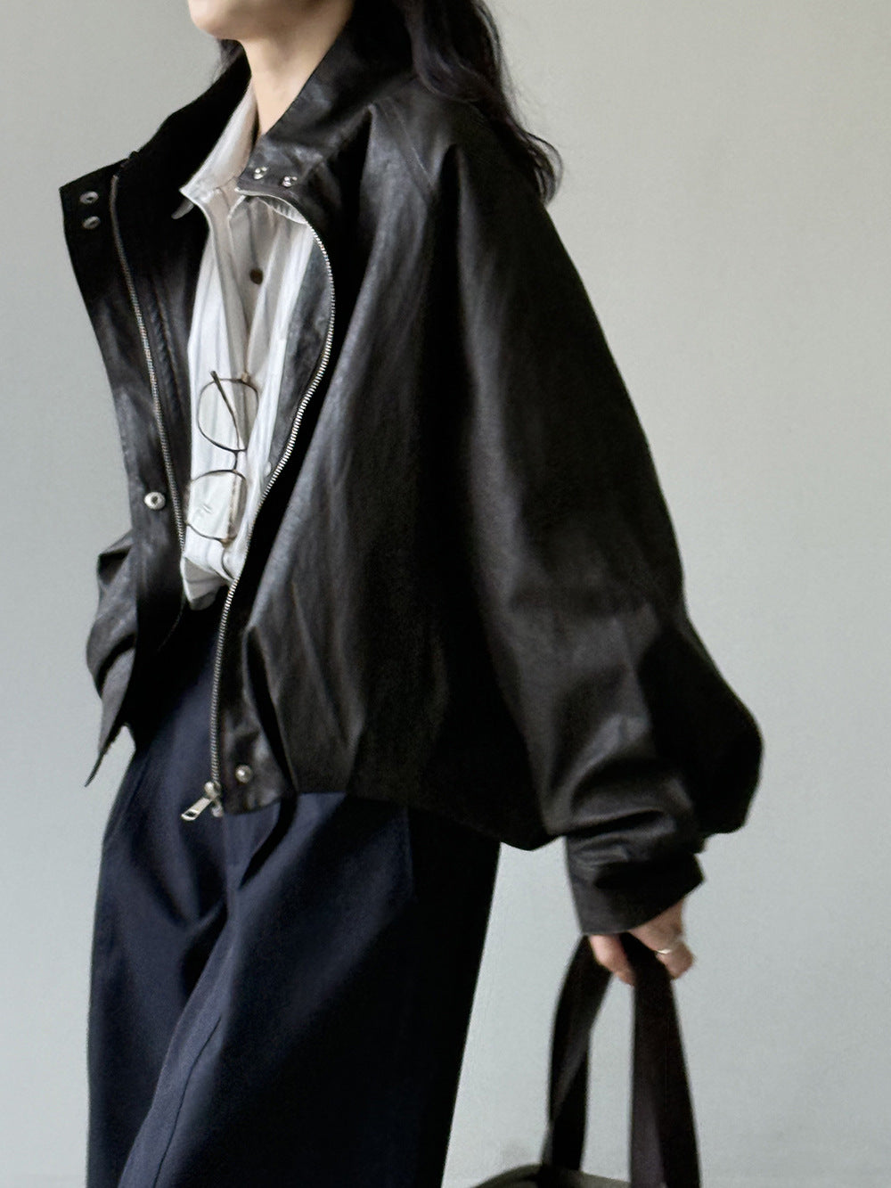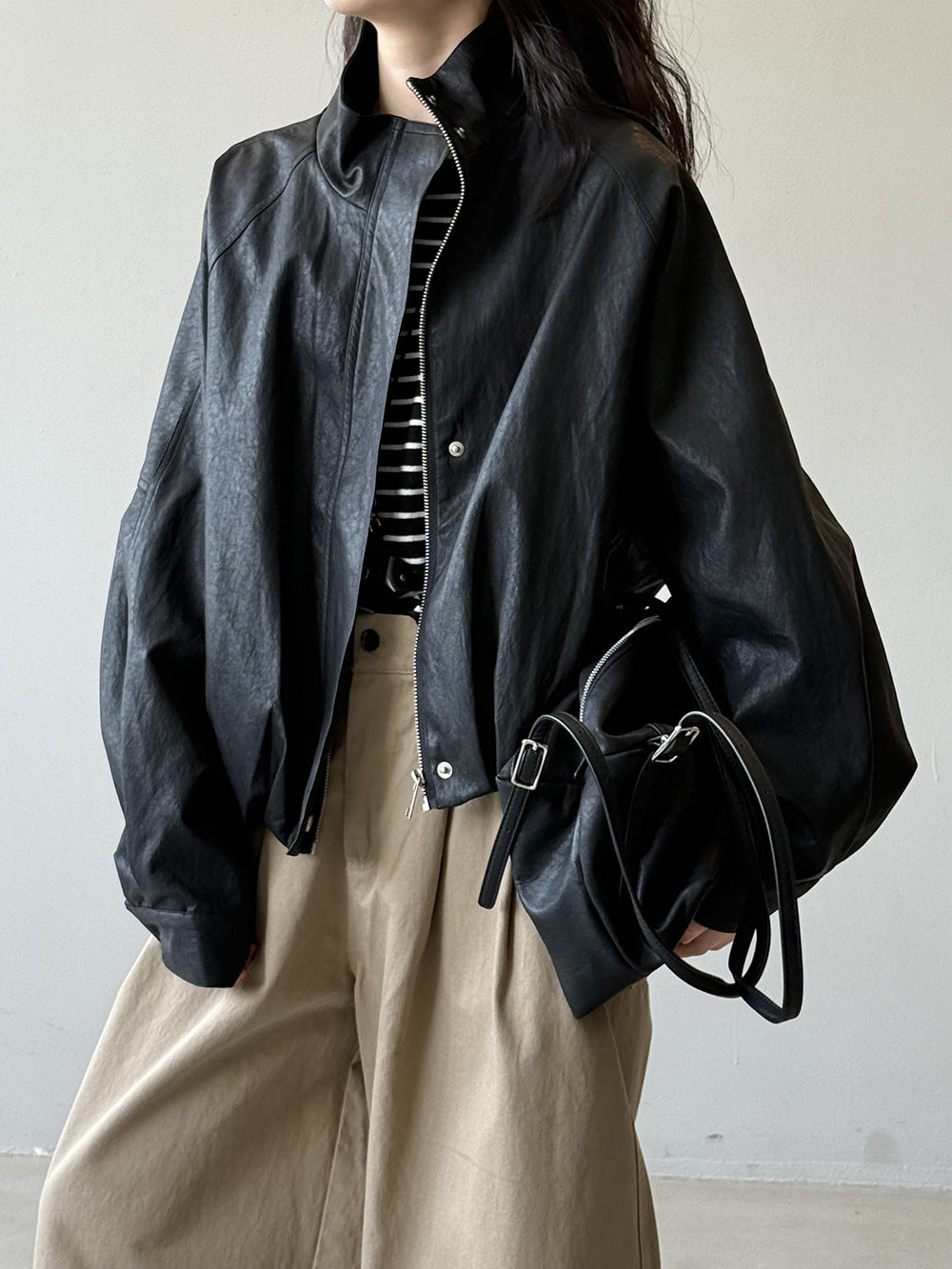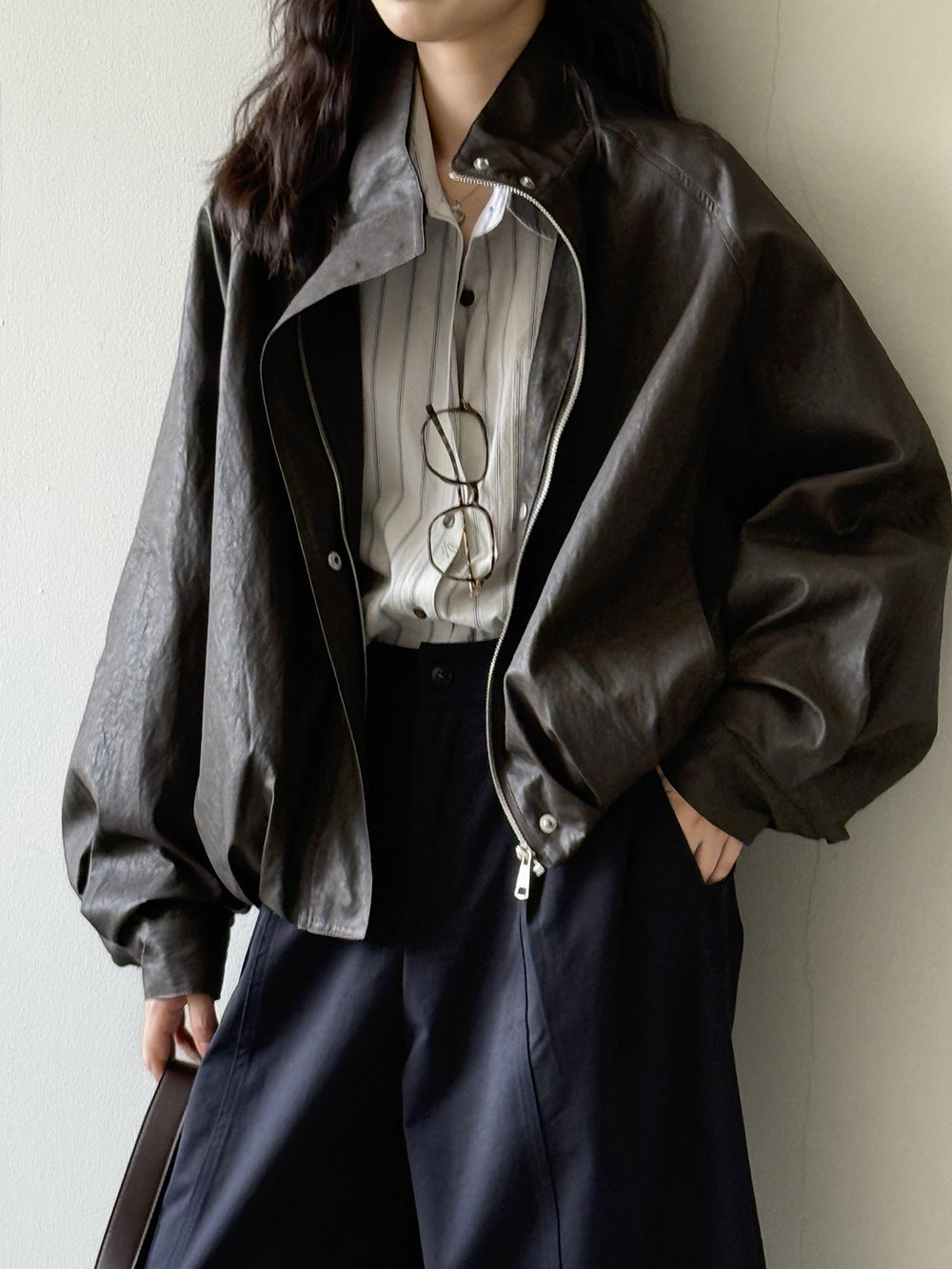 【Y79786】實拍初秋美式復古高級感PU夾克皮衣250822