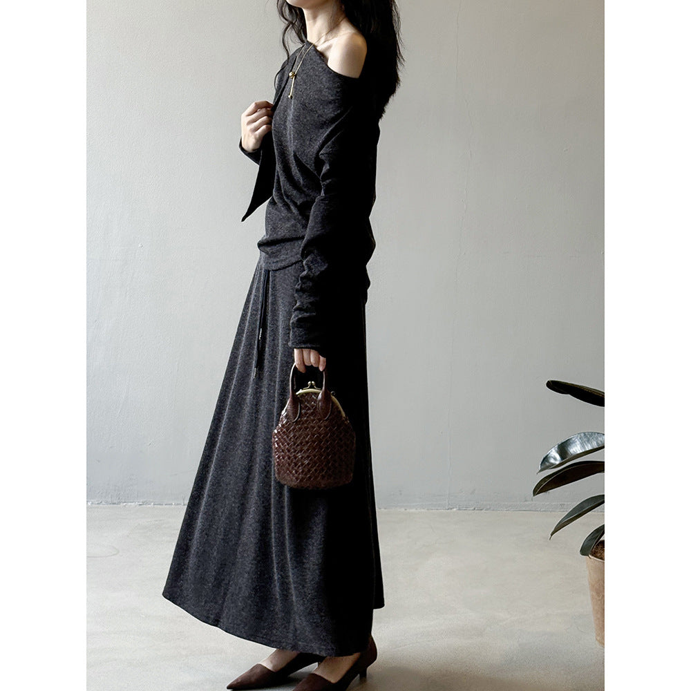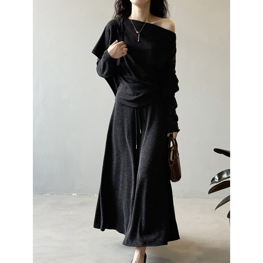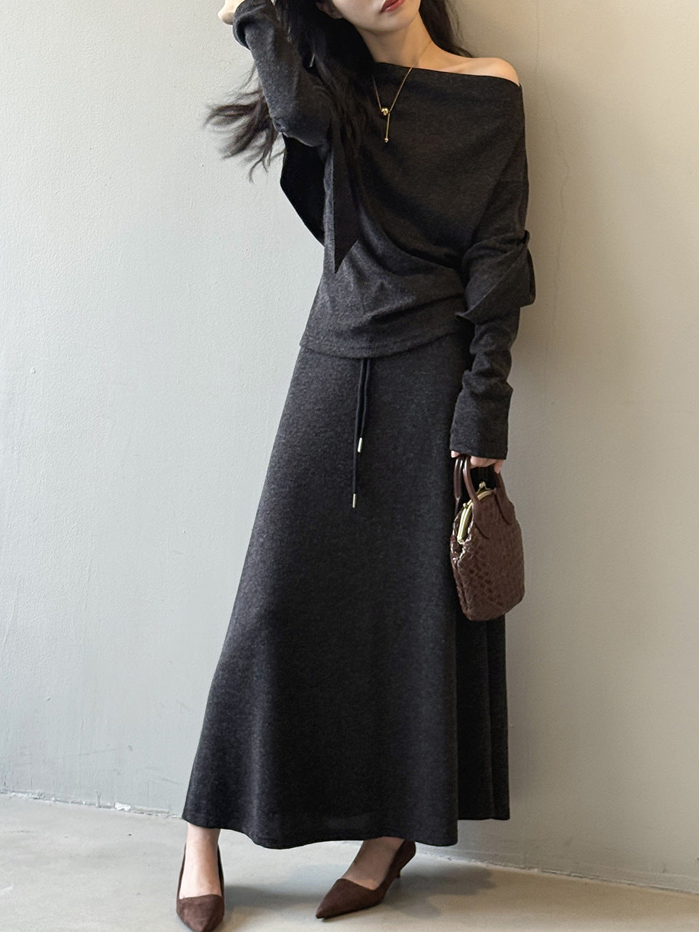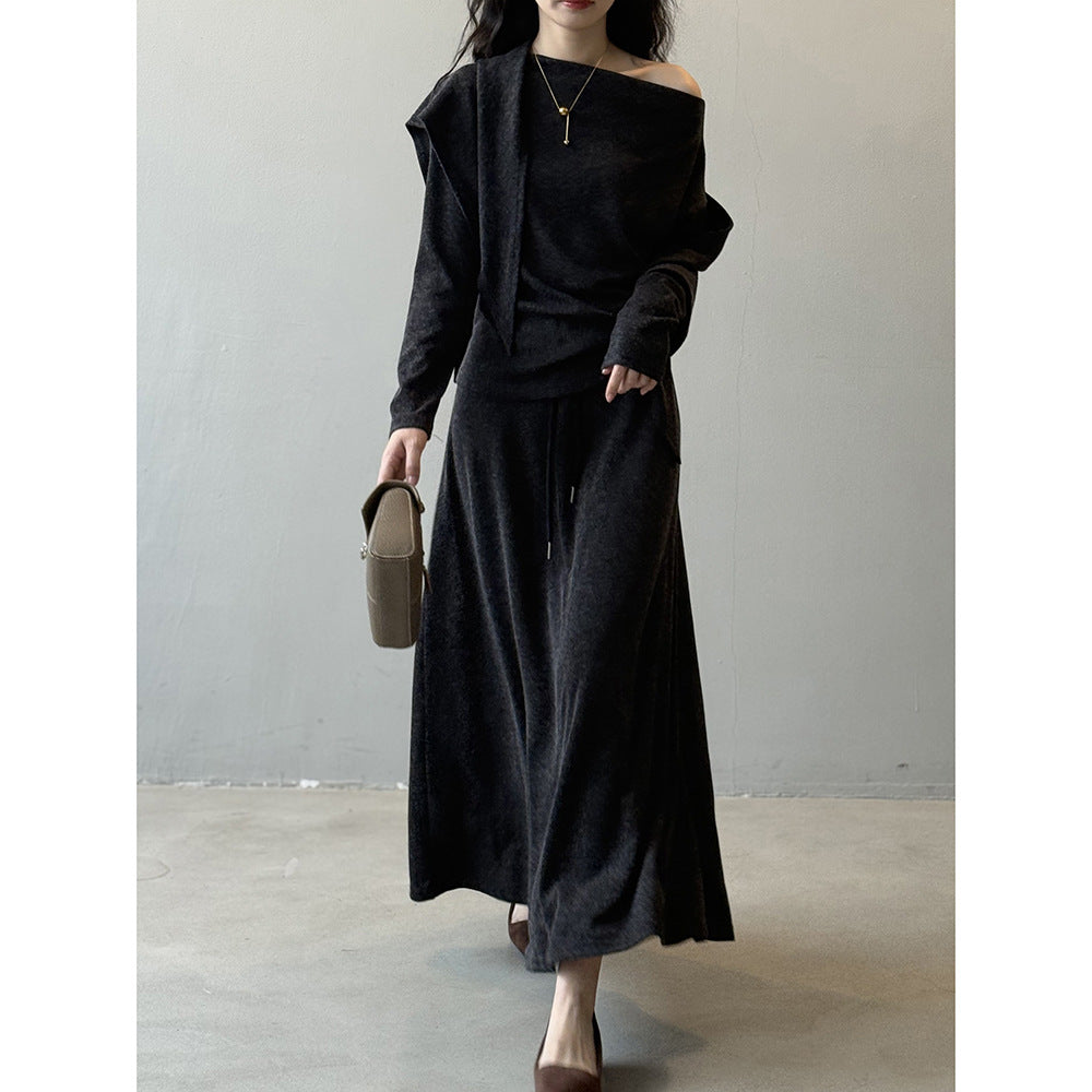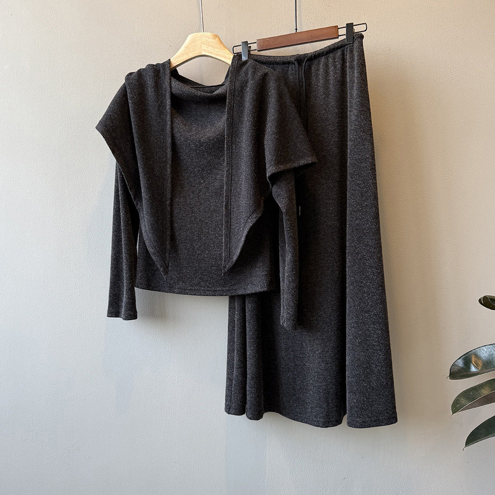 【Y79826】實拍初秋披肩針織+T恤+鬆緊腰長裙 3件套250911