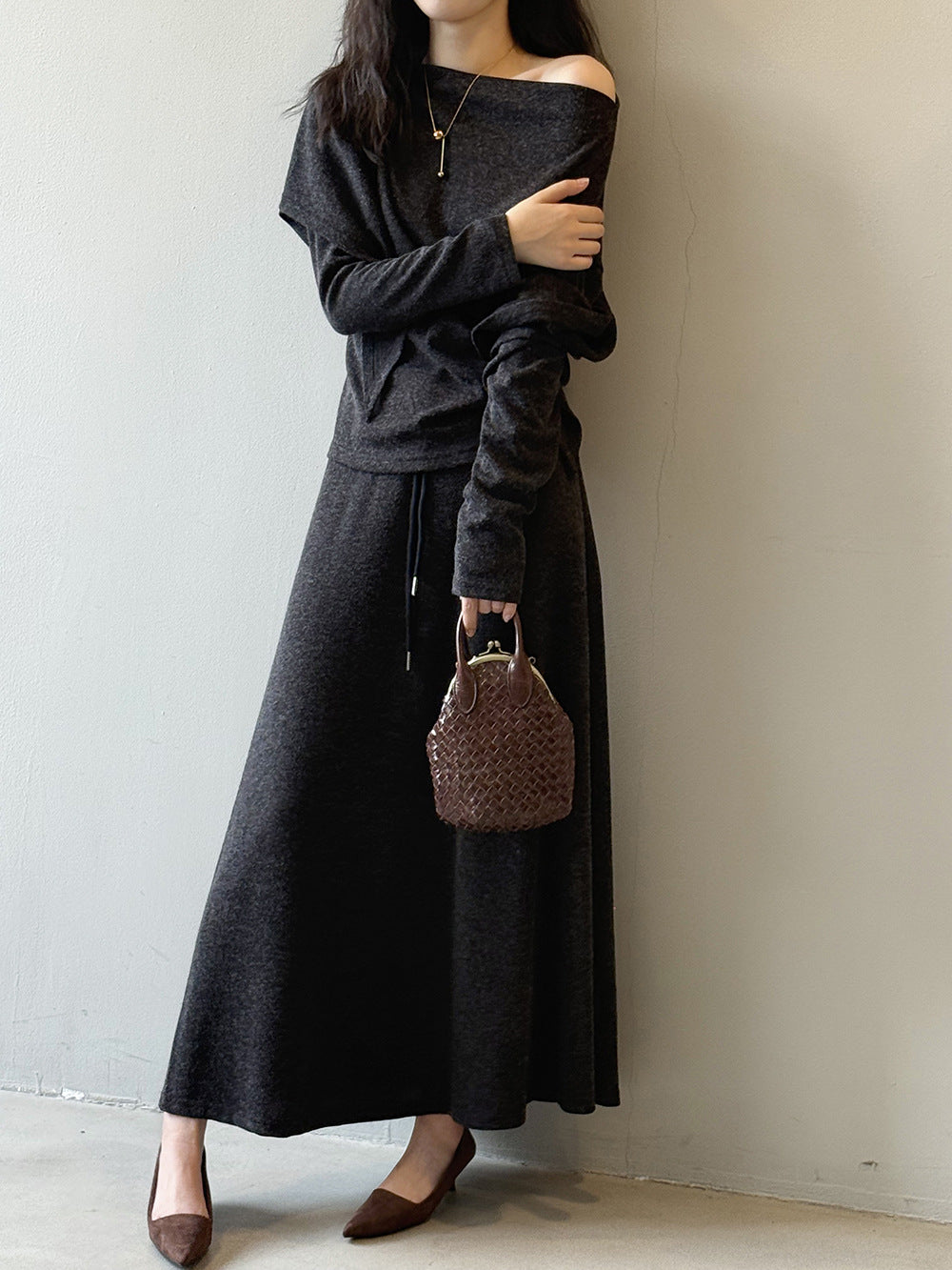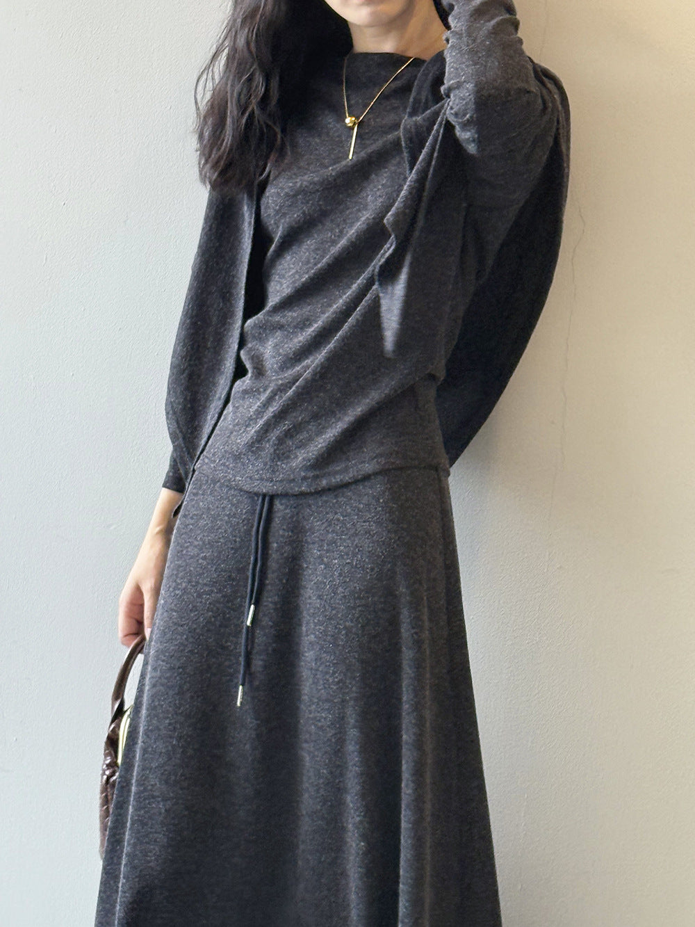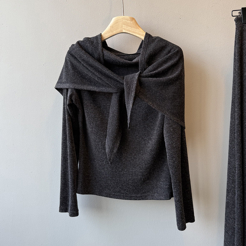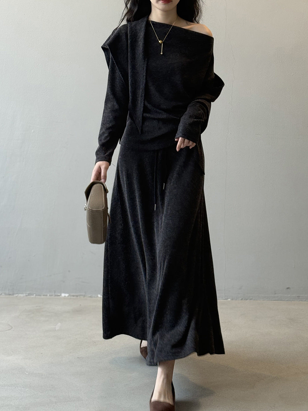【Y79826】實拍初秋披肩針織+T恤+鬆緊腰長裙 3件套250911
