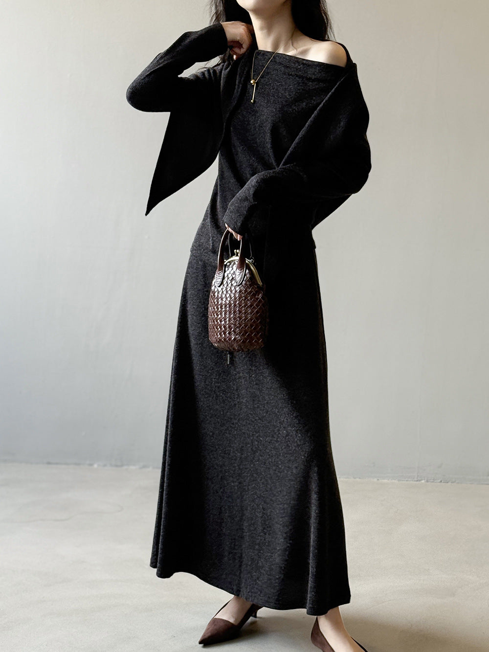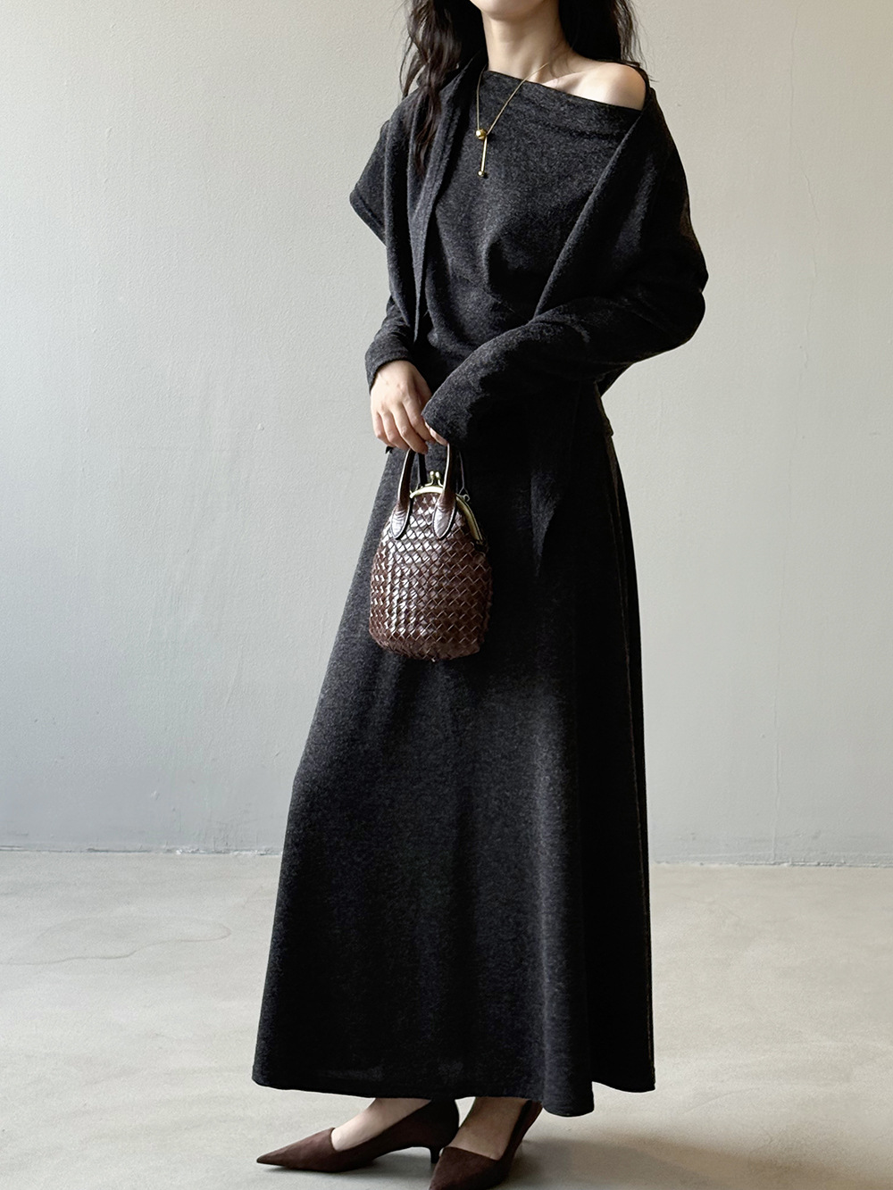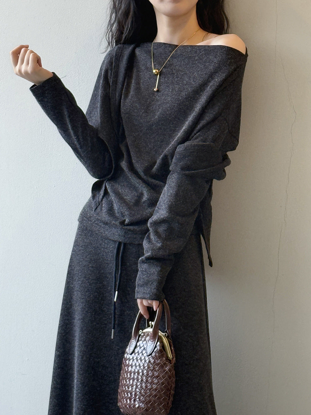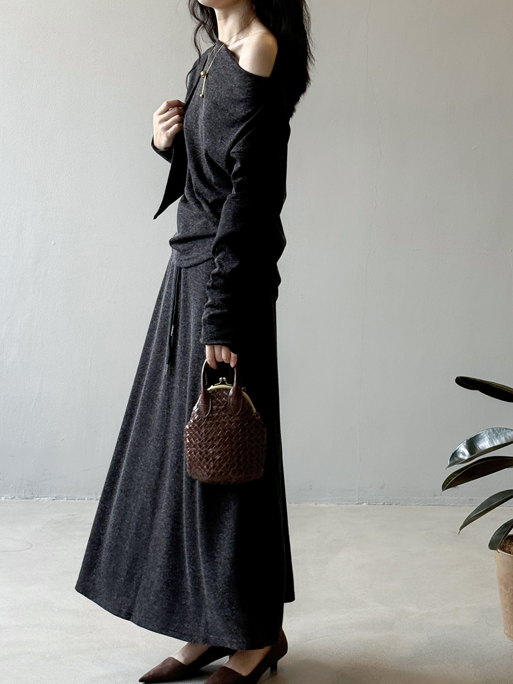 【Y79826】實拍初秋披肩針織+T恤+鬆緊腰長裙 3件套250911