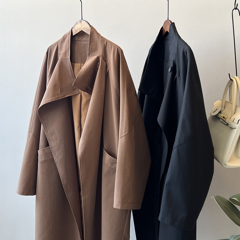 【Y82116】實拍早春復古翻領一粒扣中長款風衣外套YY25早春