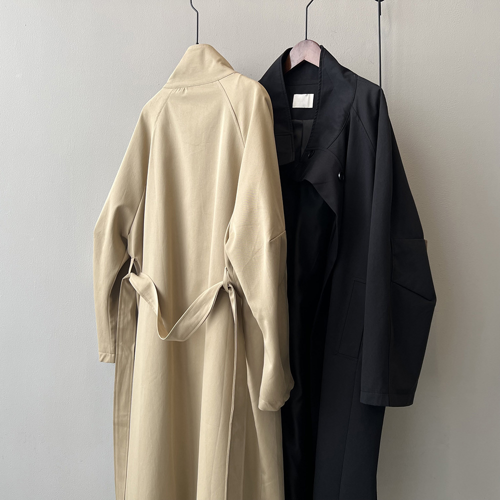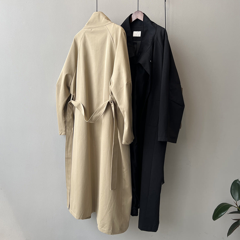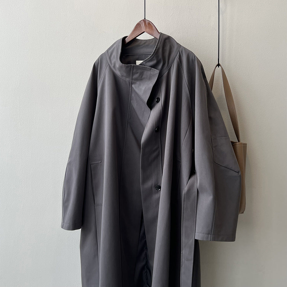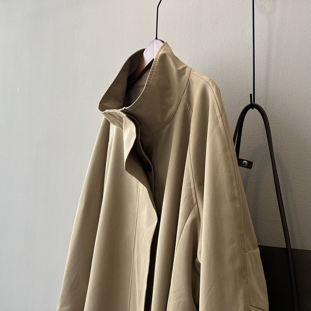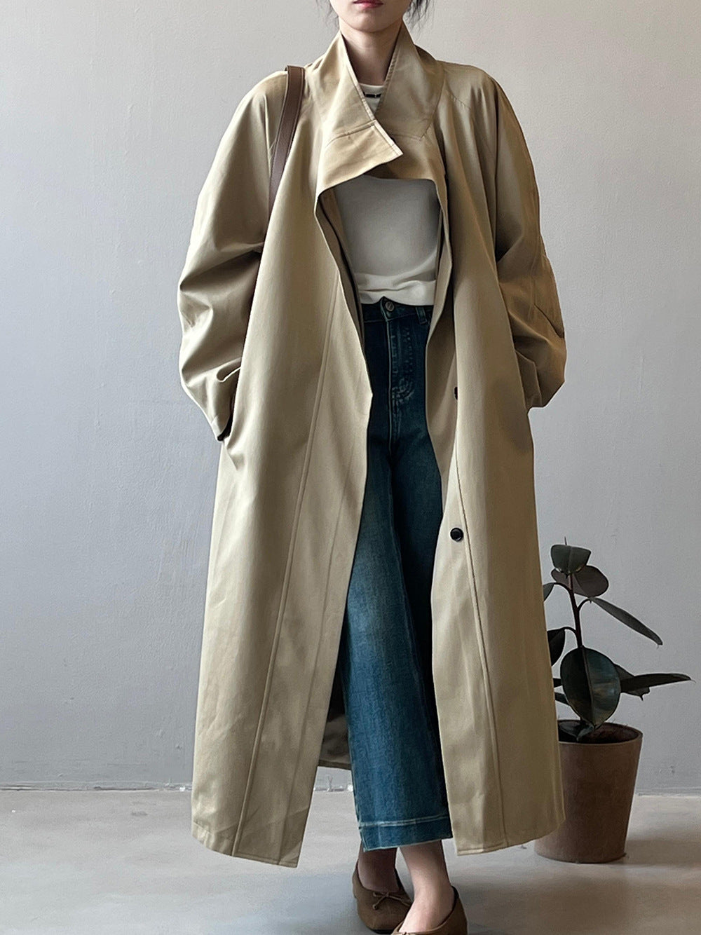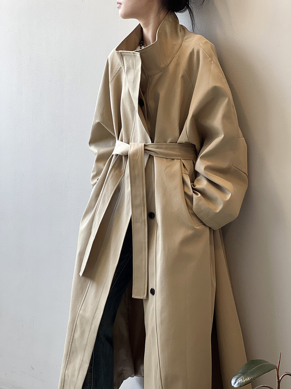 【Y82133】實拍韓國高單簡約單排扣立領長版寬鬆風衣外套YY25早春