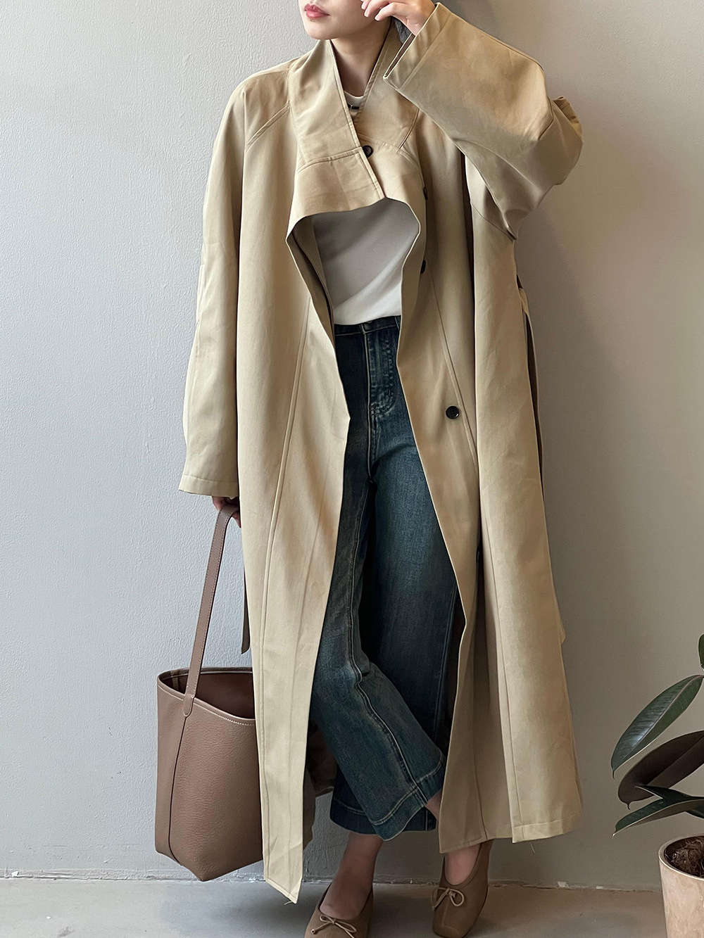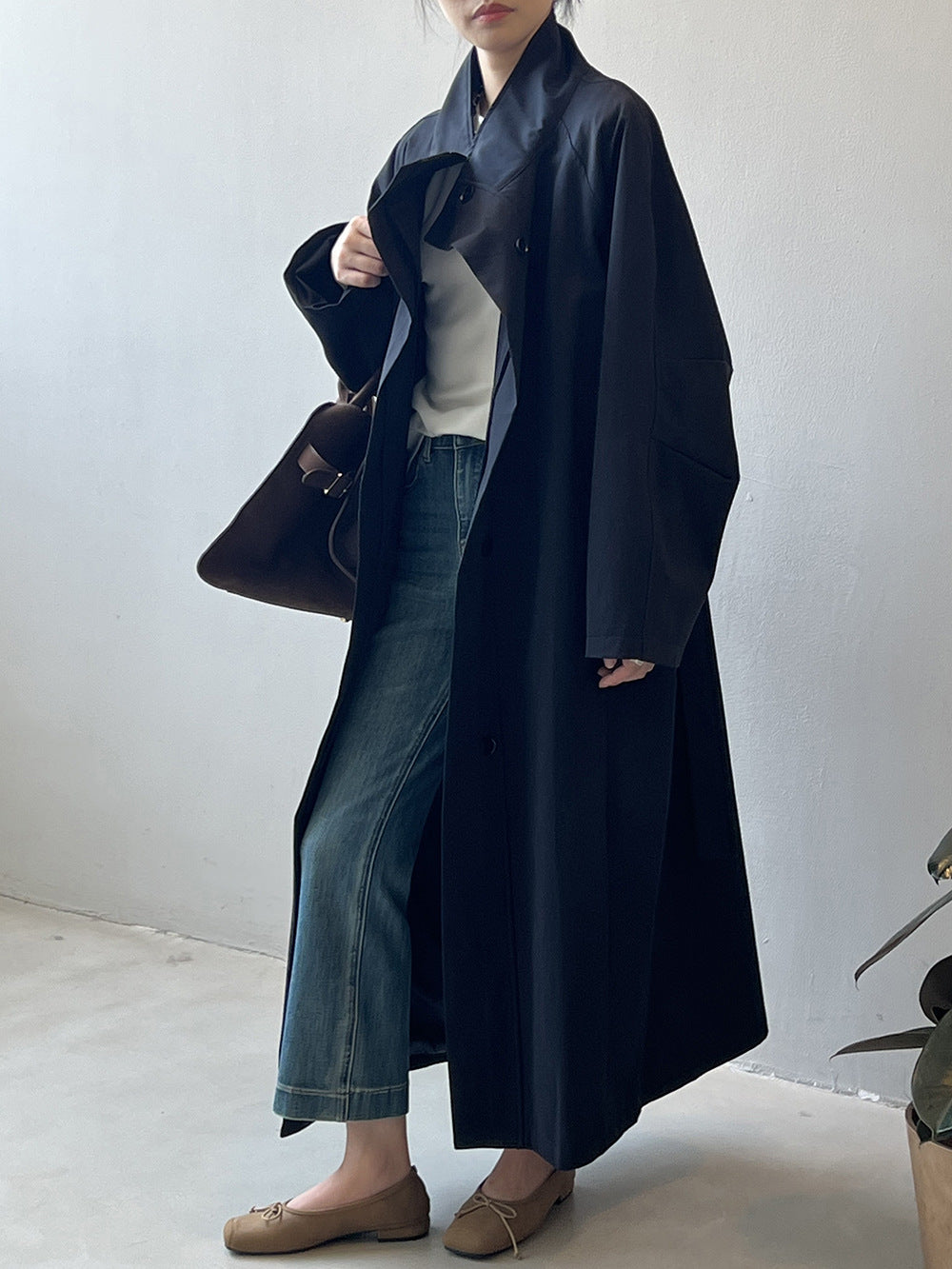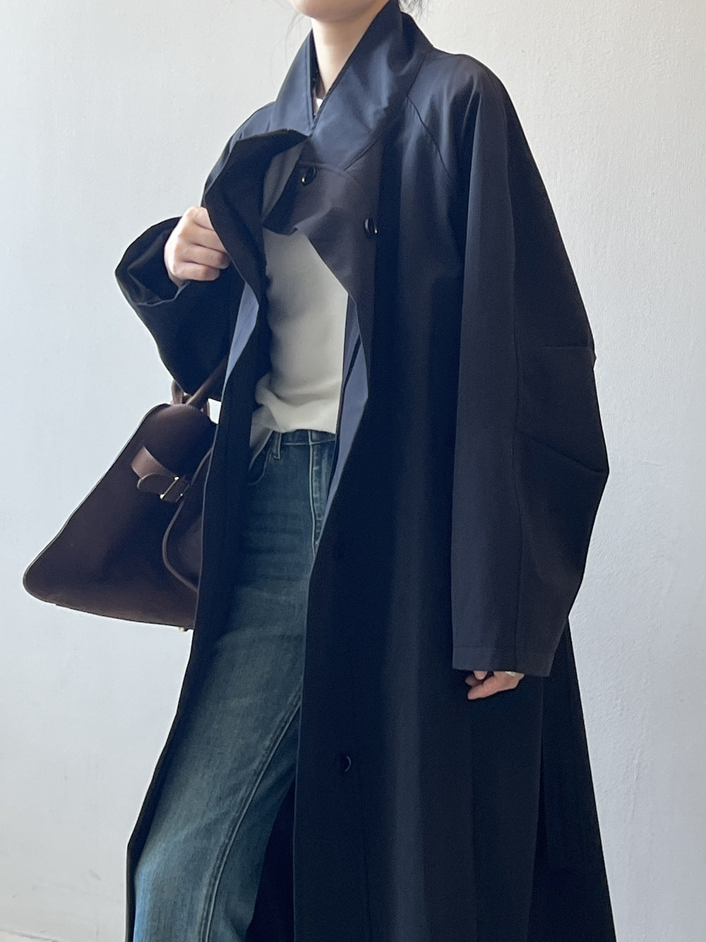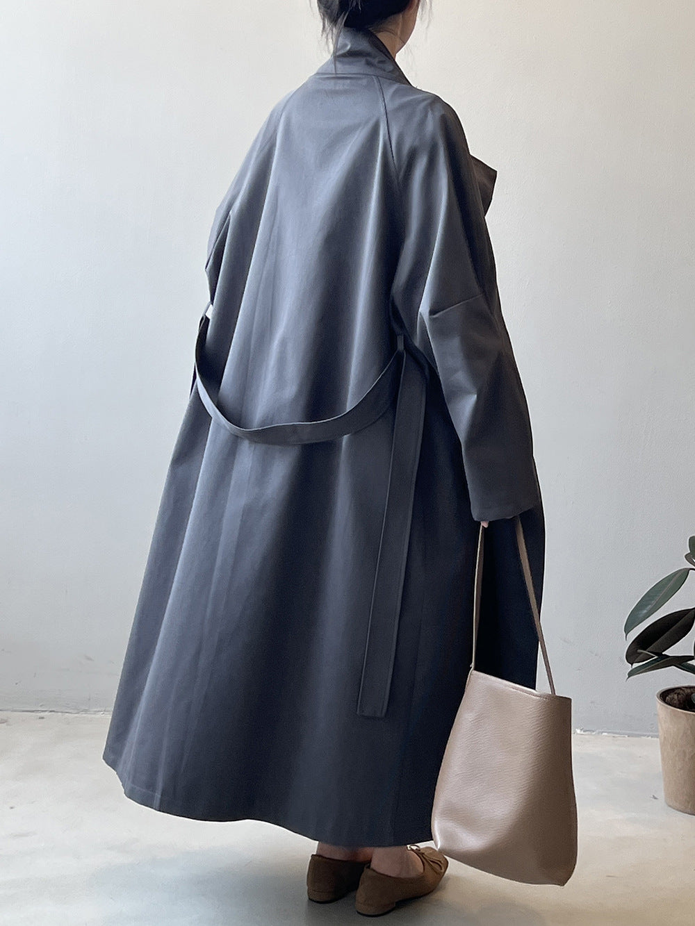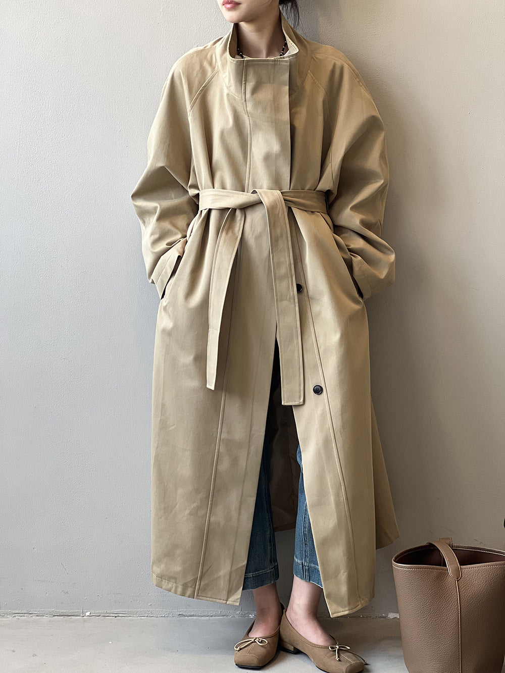 【Y82133】實拍韓國高單簡約單排扣立領長版寬鬆風衣外套YY25早春