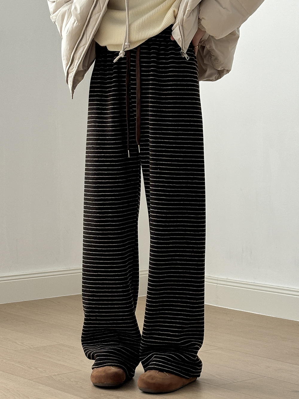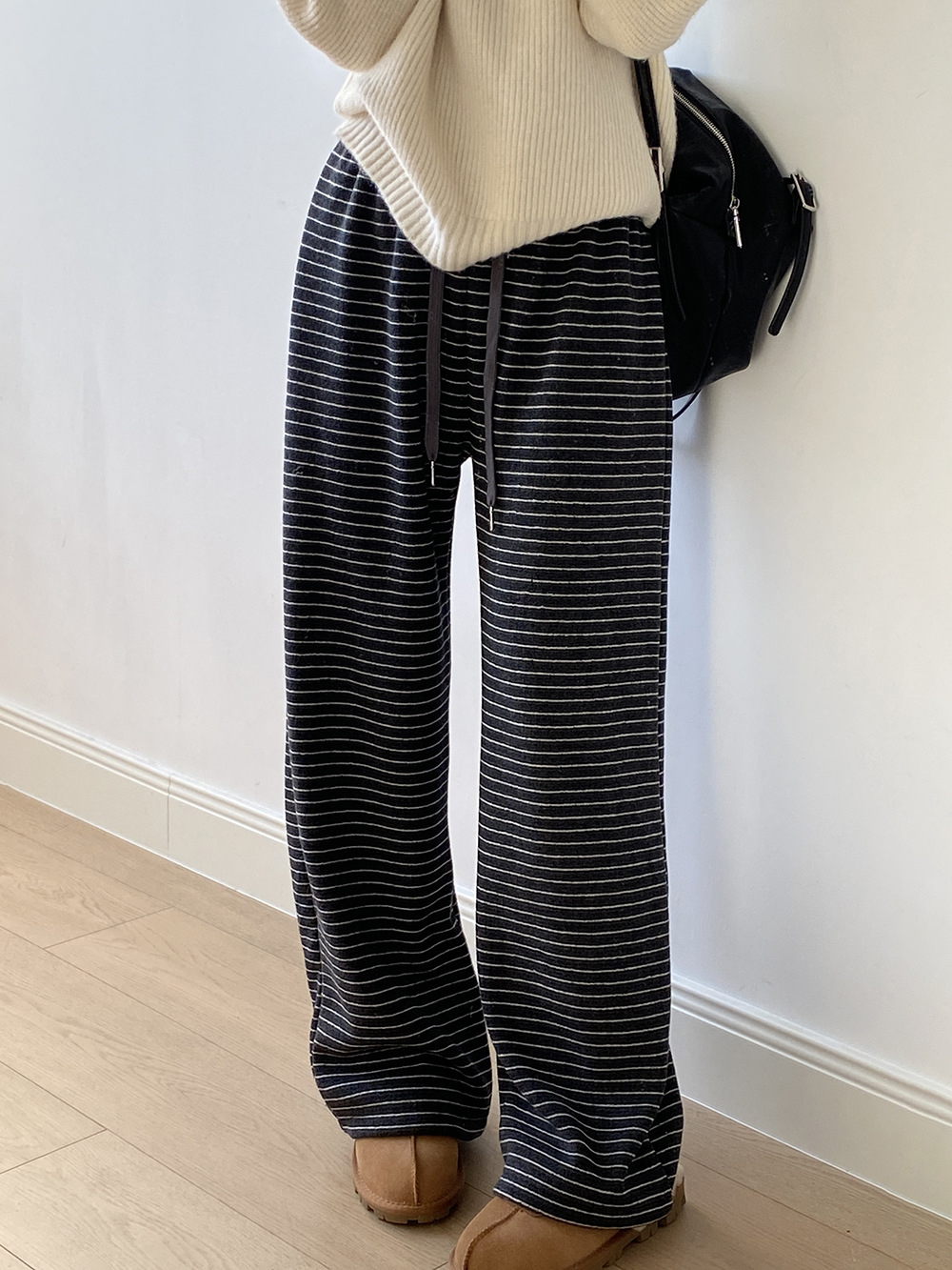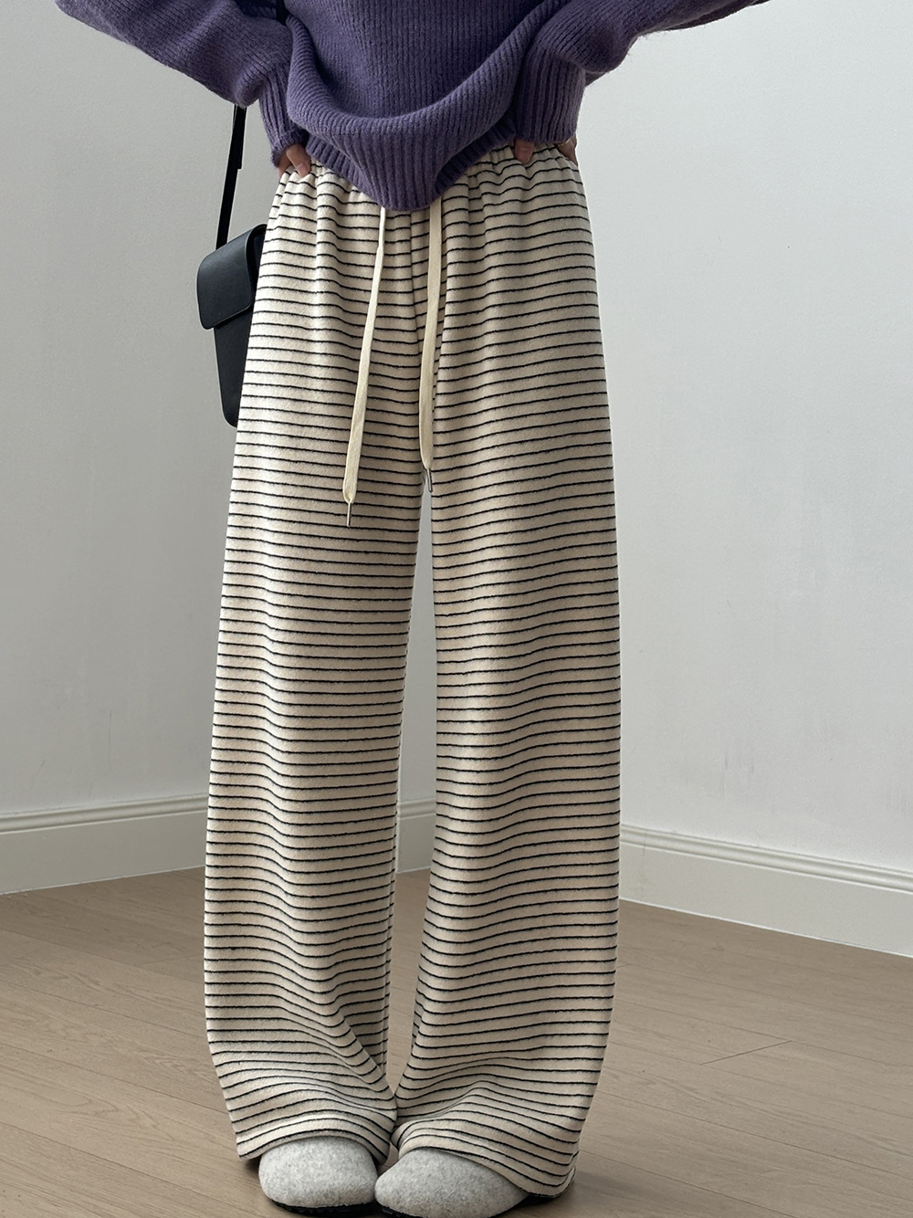 【Y82192】實拍舒適好質感高腰加絨抽繩绵羊毛直筒褲241211