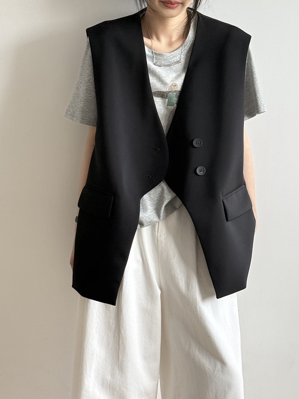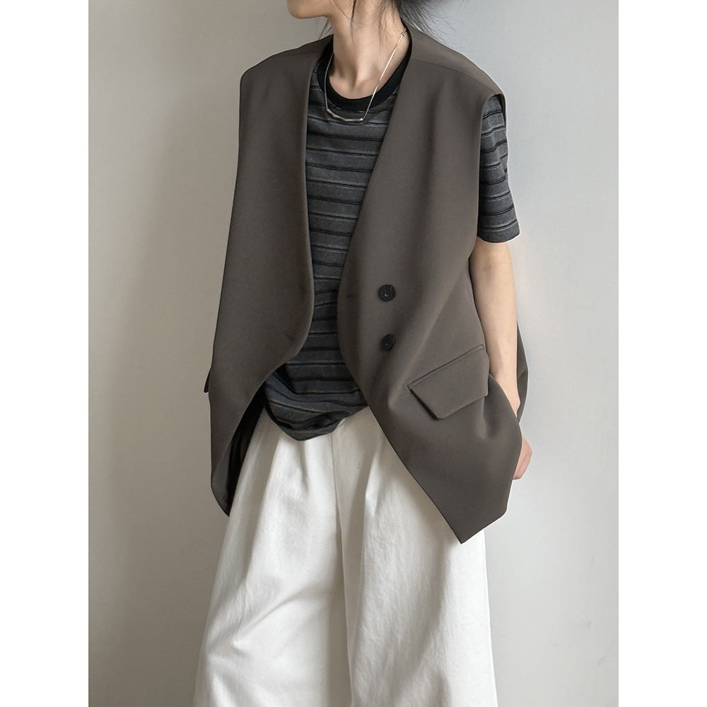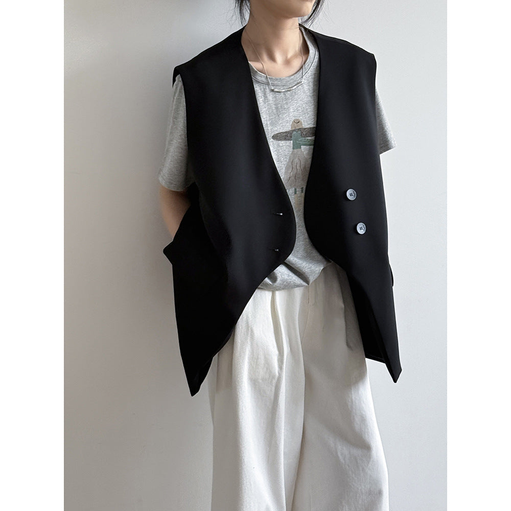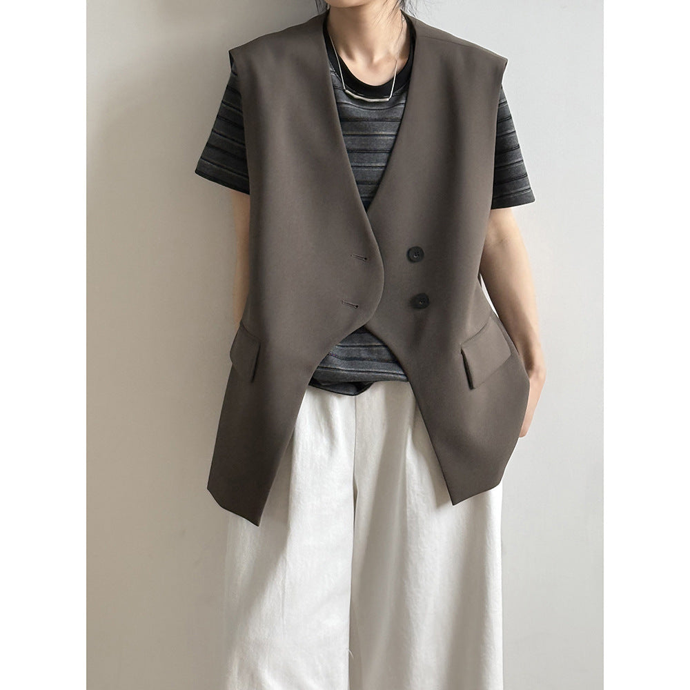 【Y82216】實拍韓國高單質感簡約V領西裝背心250320