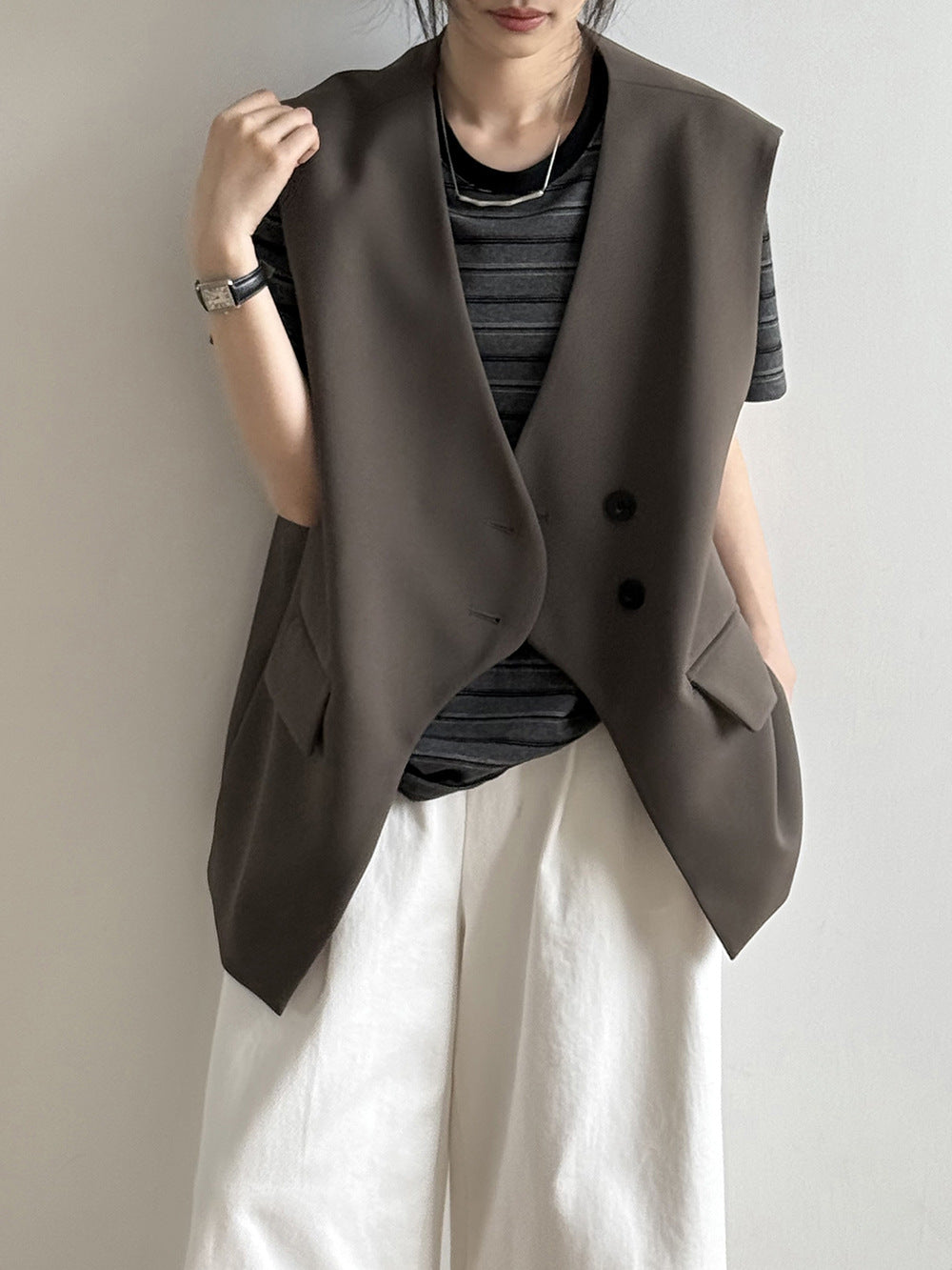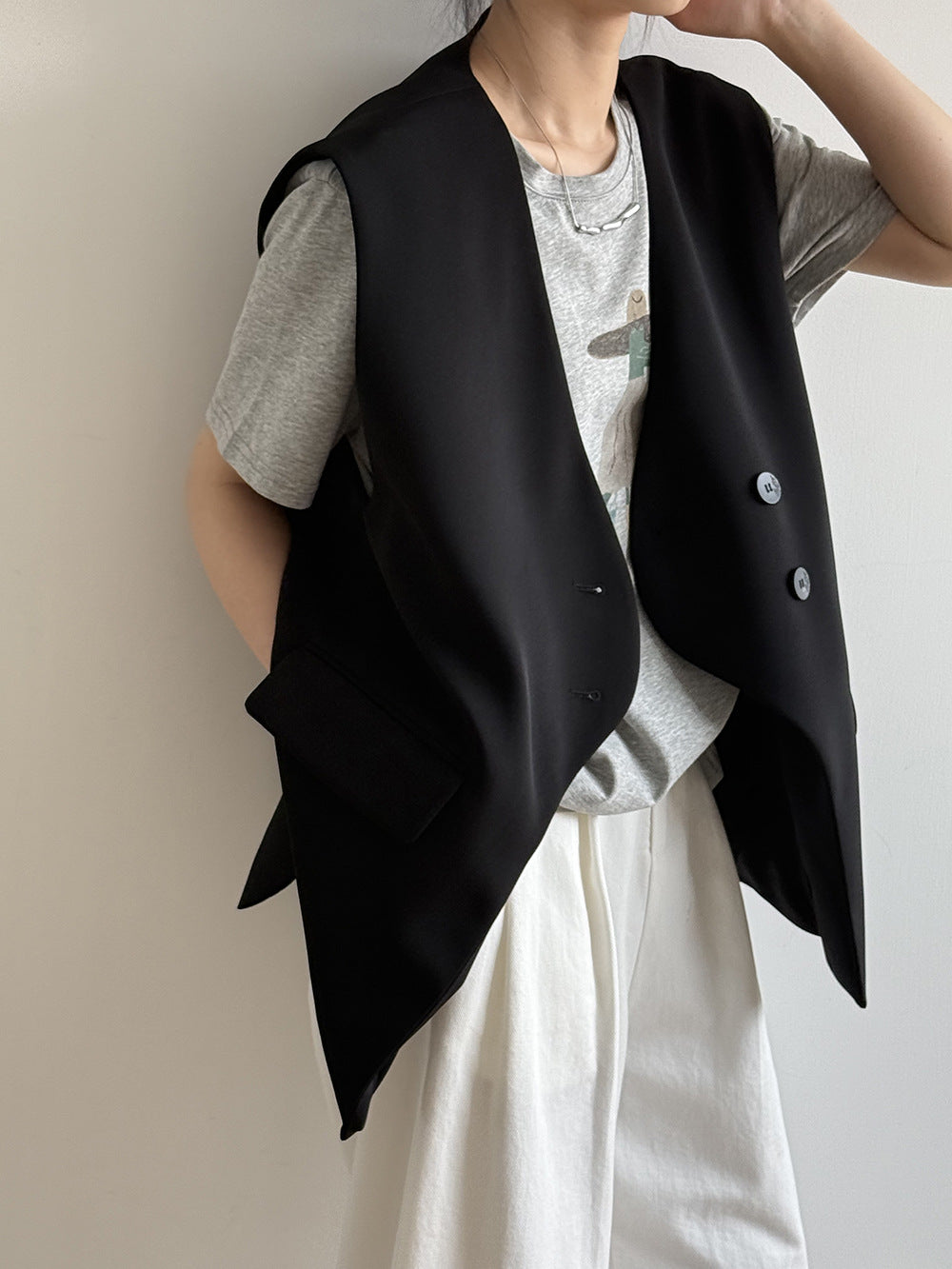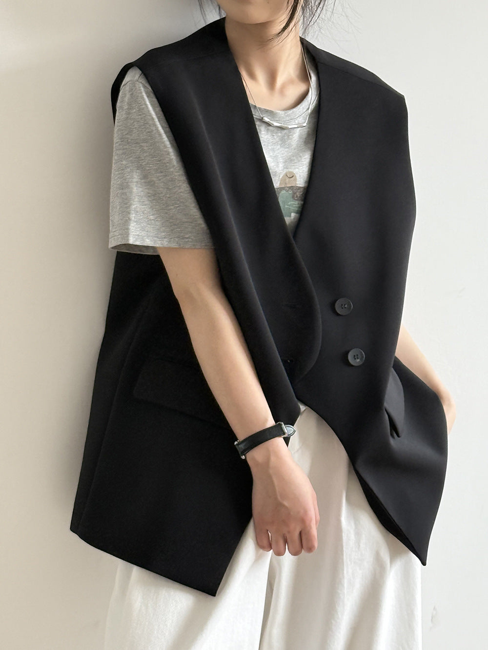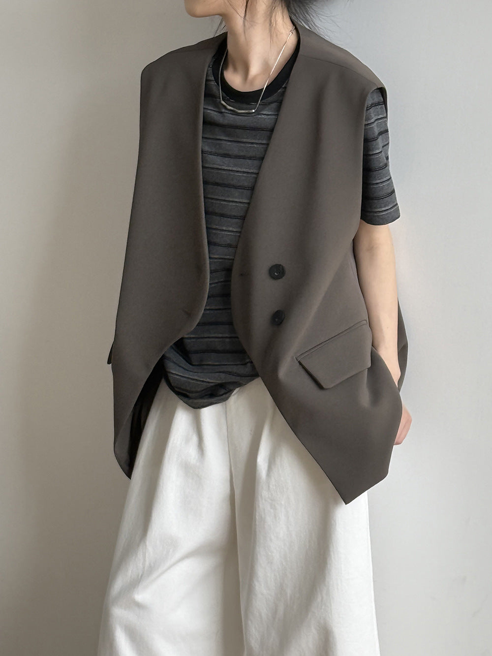 【Y82216】實拍韓國高單質感簡約V領西裝背心250320