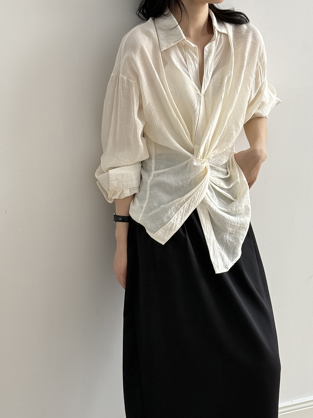 【Y82226】實拍夏季個性小眾紐結不規則襯衫250320