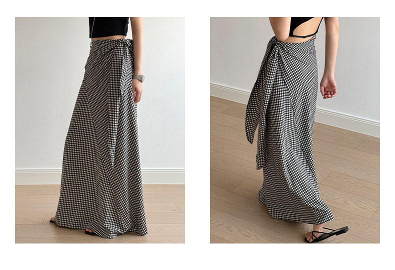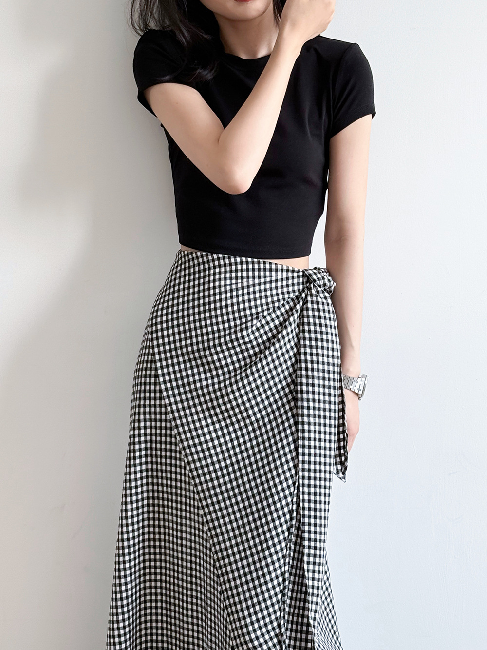 【Y82250】實拍美式微辣露背短袖t恤+設計款格子長裙(分開下單)250327