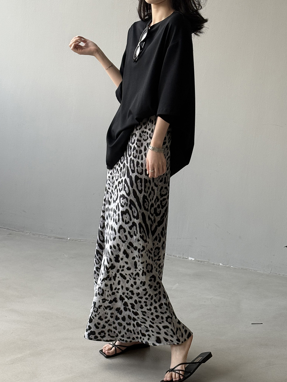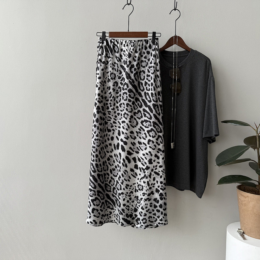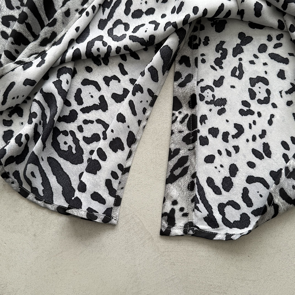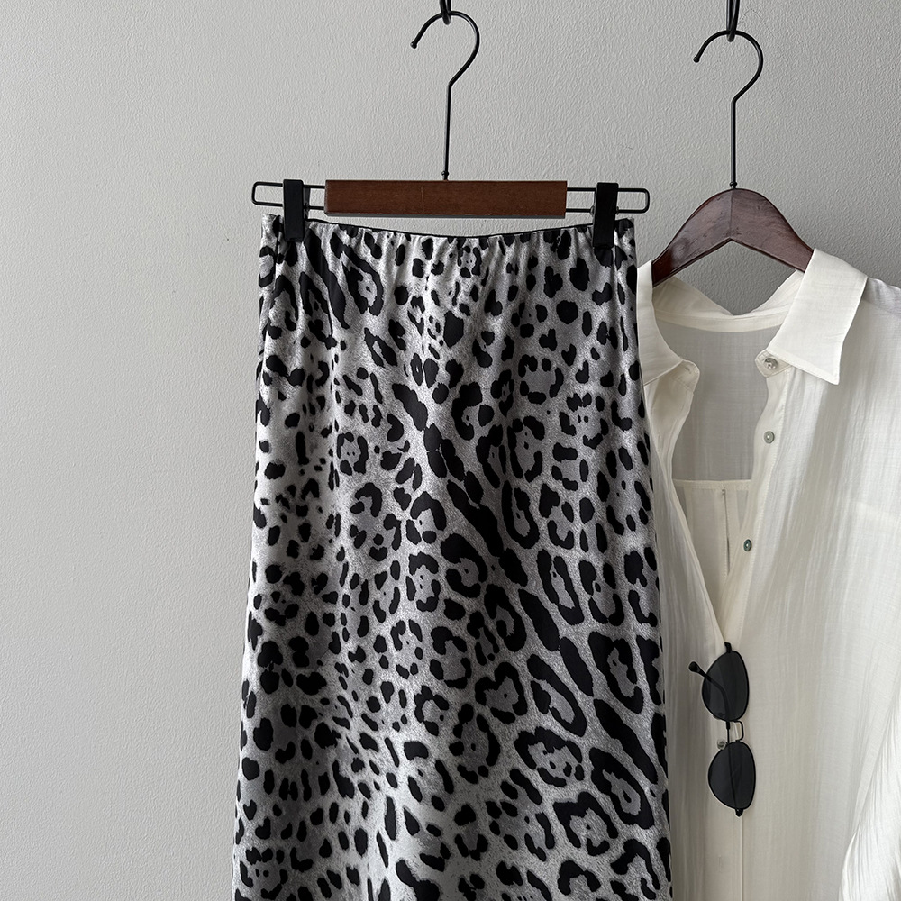 【Y82283】實拍M~XL夏季輕奢高級感|豹紋開叉高腰A字長裙(鬆緊腰)250424