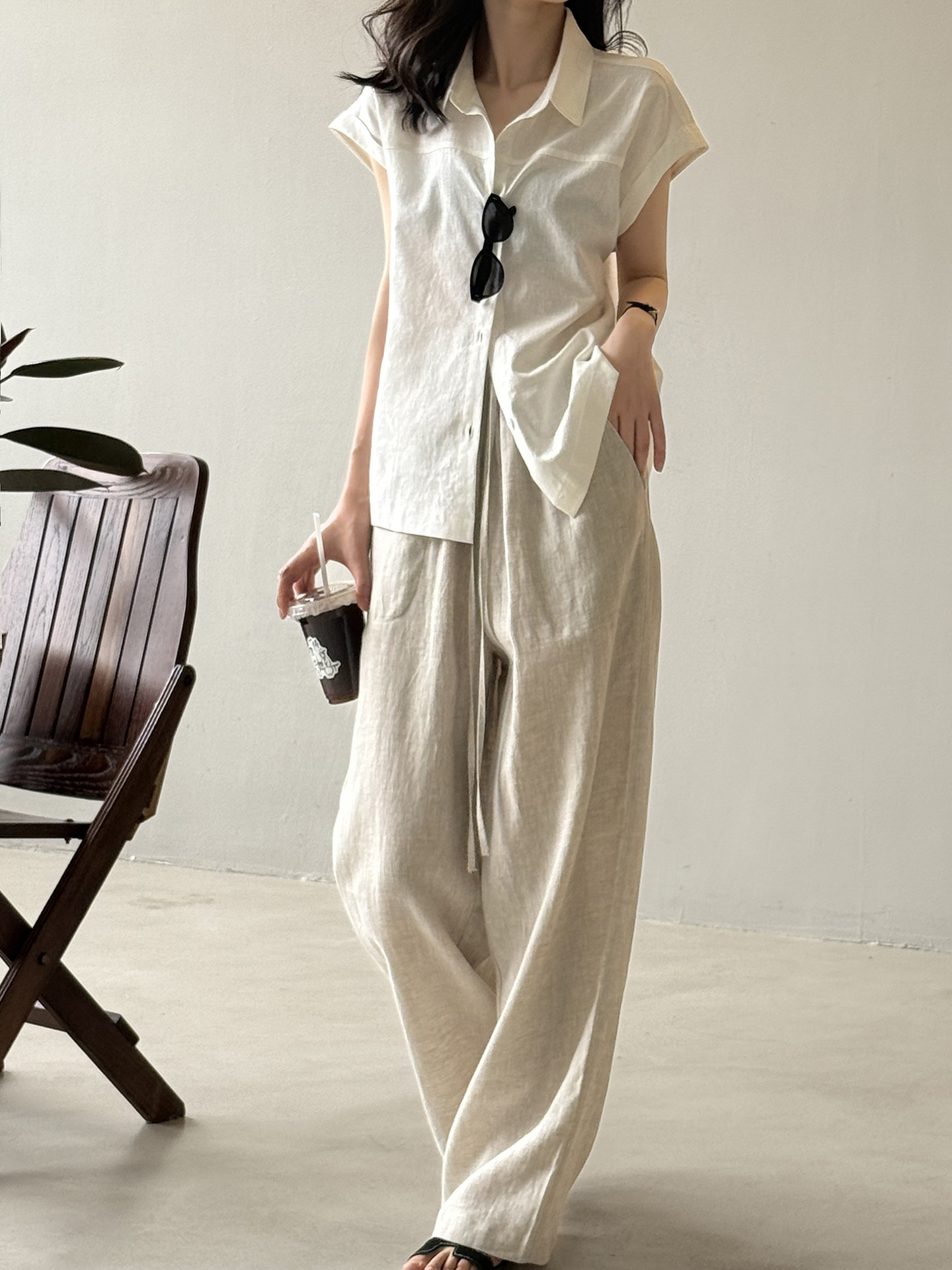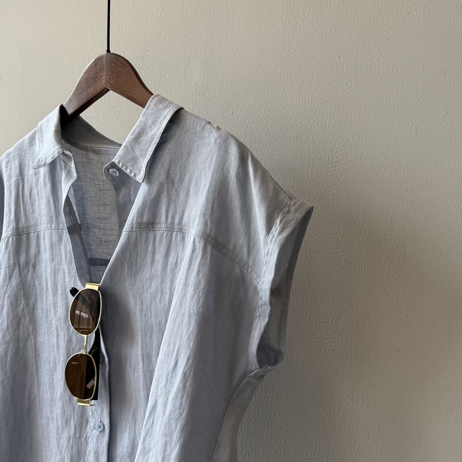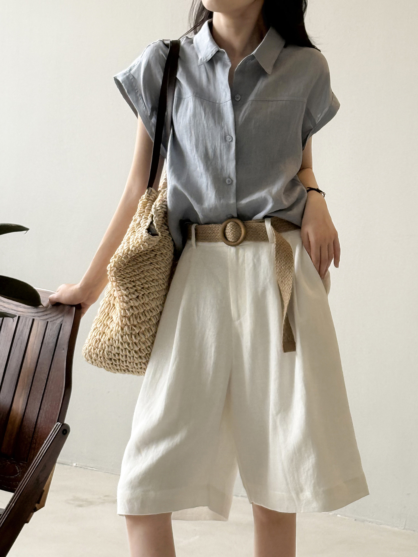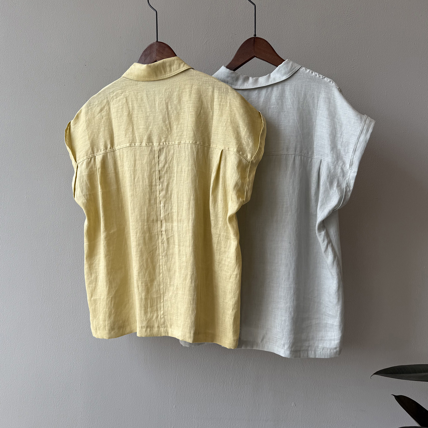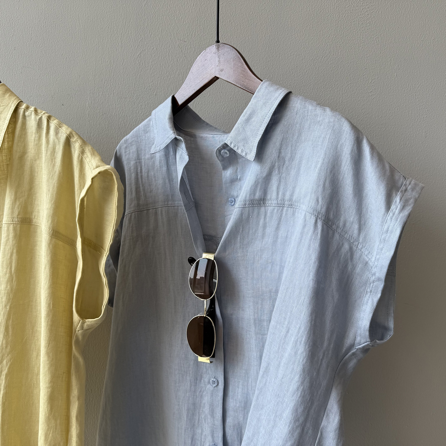 【Y82315】高單夏天亞麻混棉落肩襯衫250515