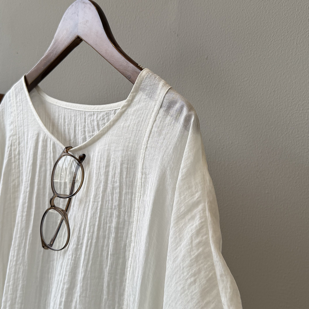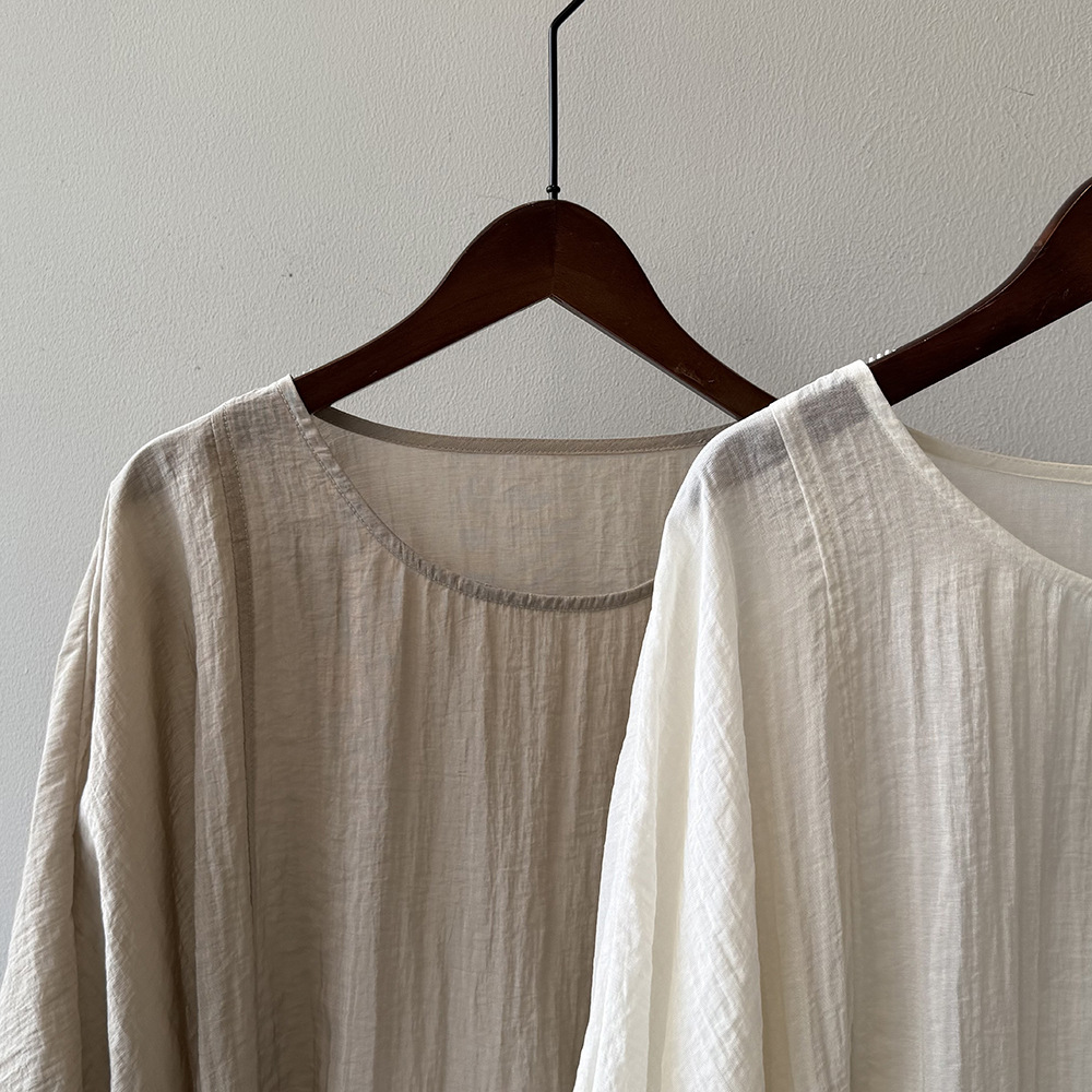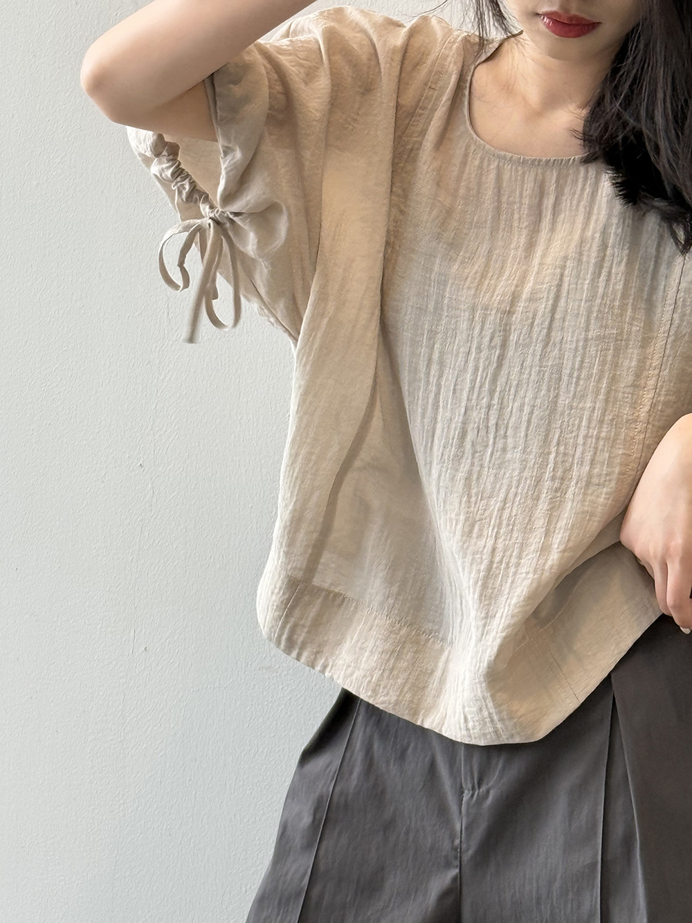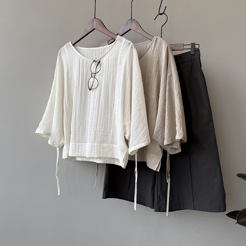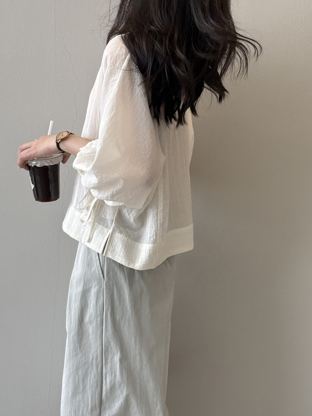 【Y82318】實拍夏季韓系氣質|袖口綁帶七分袖雪紡襯衫250424