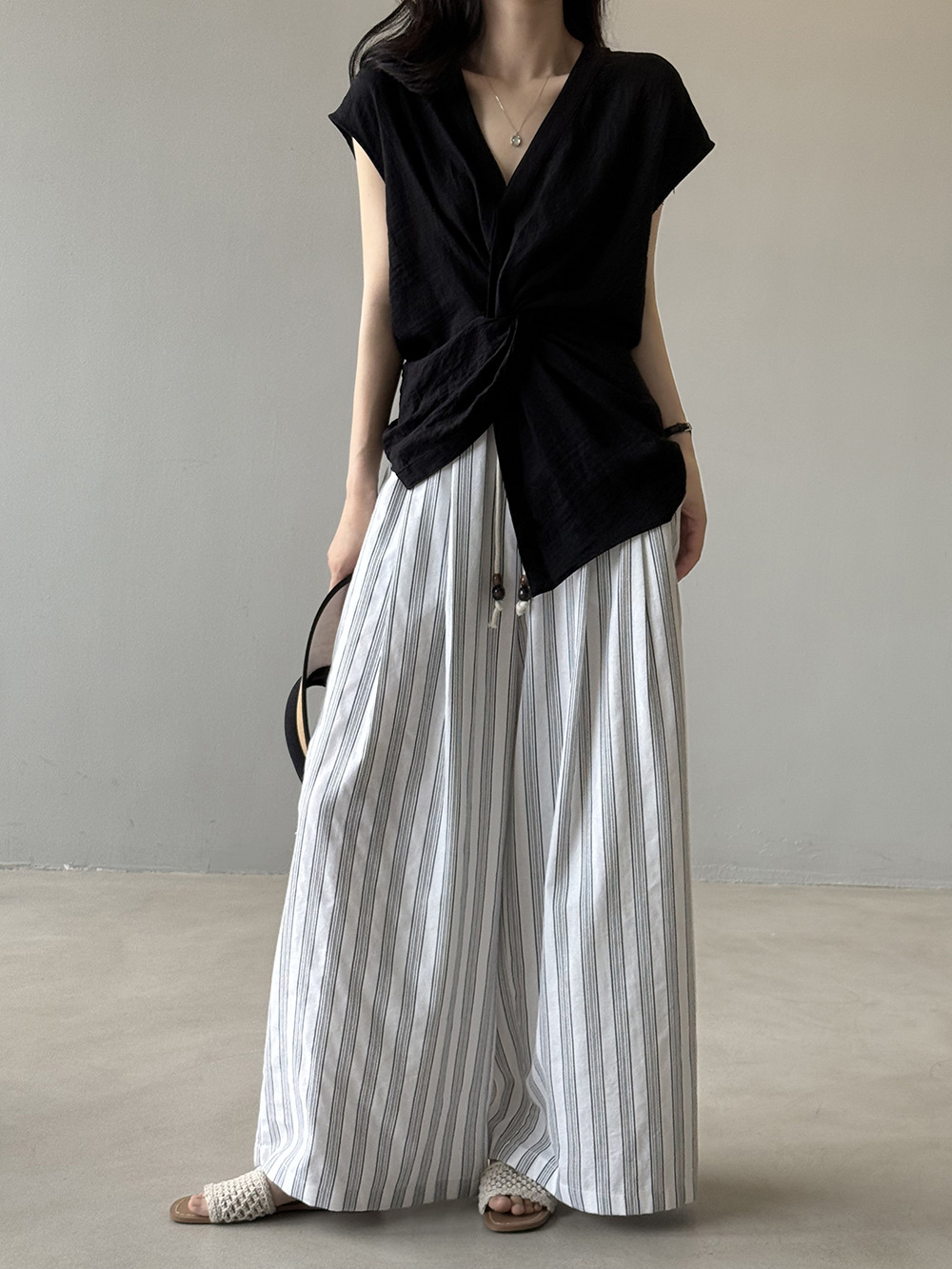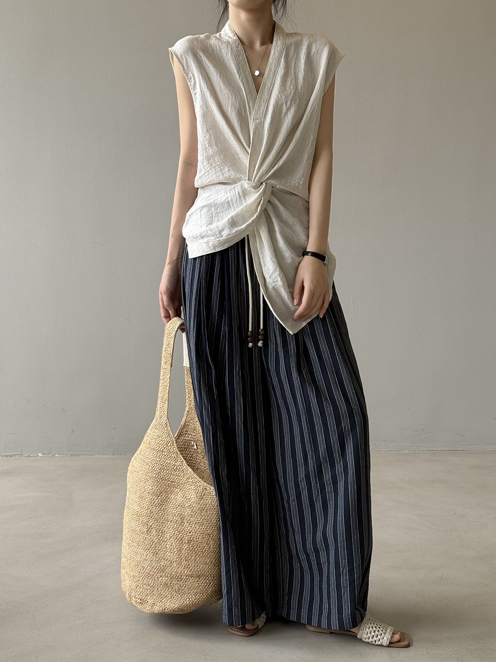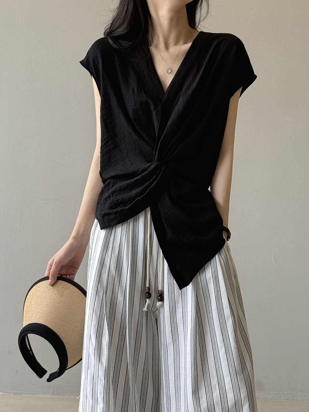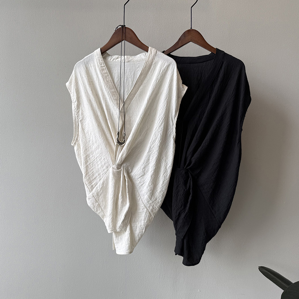 【Y82391】夏季高單扭結天然亞麻上衣(亞麻20%)250515