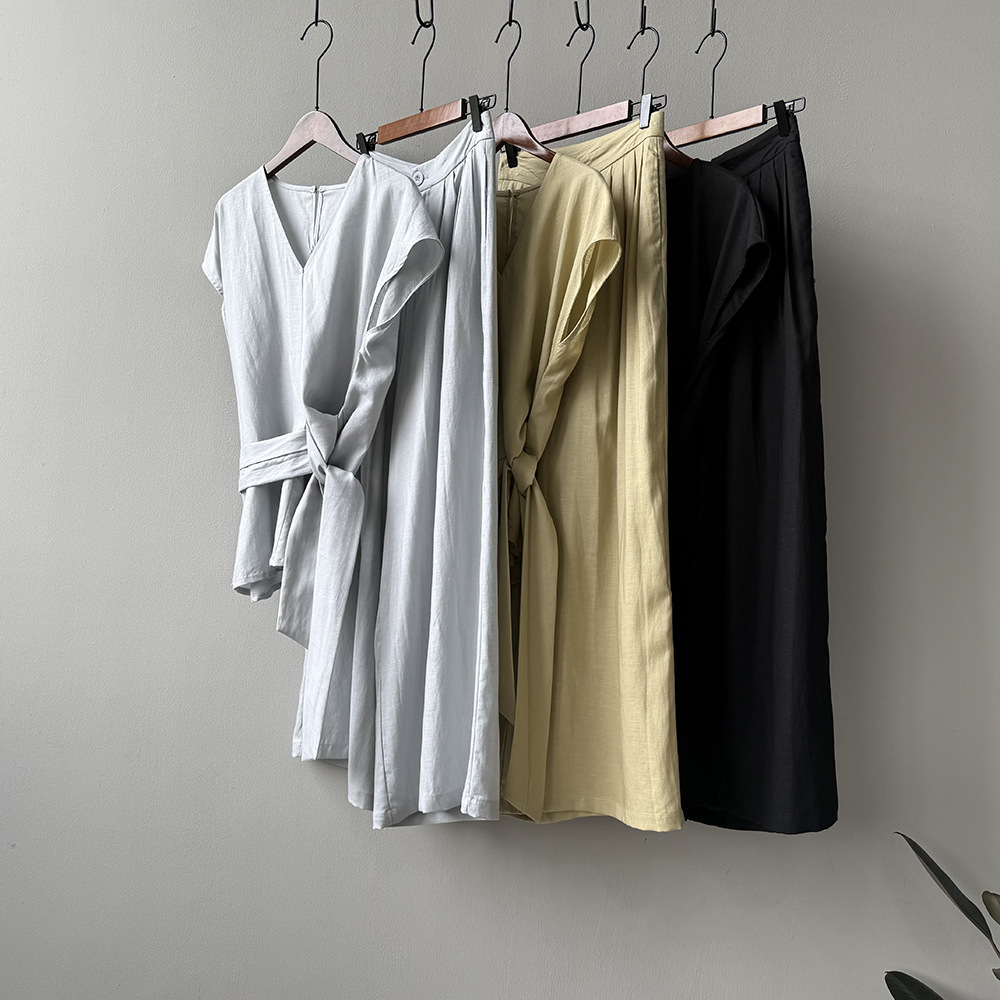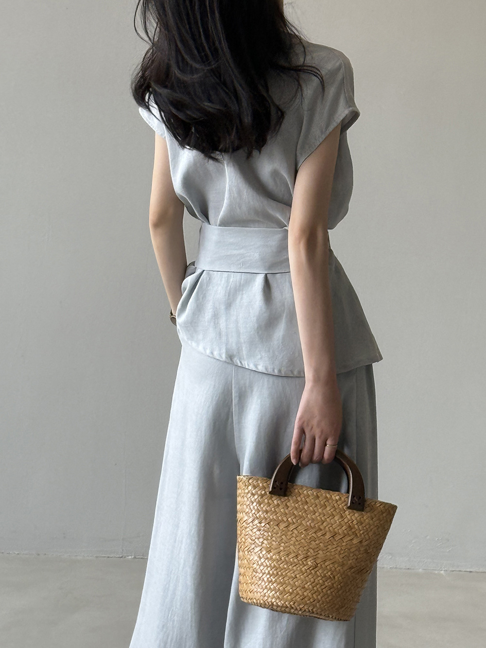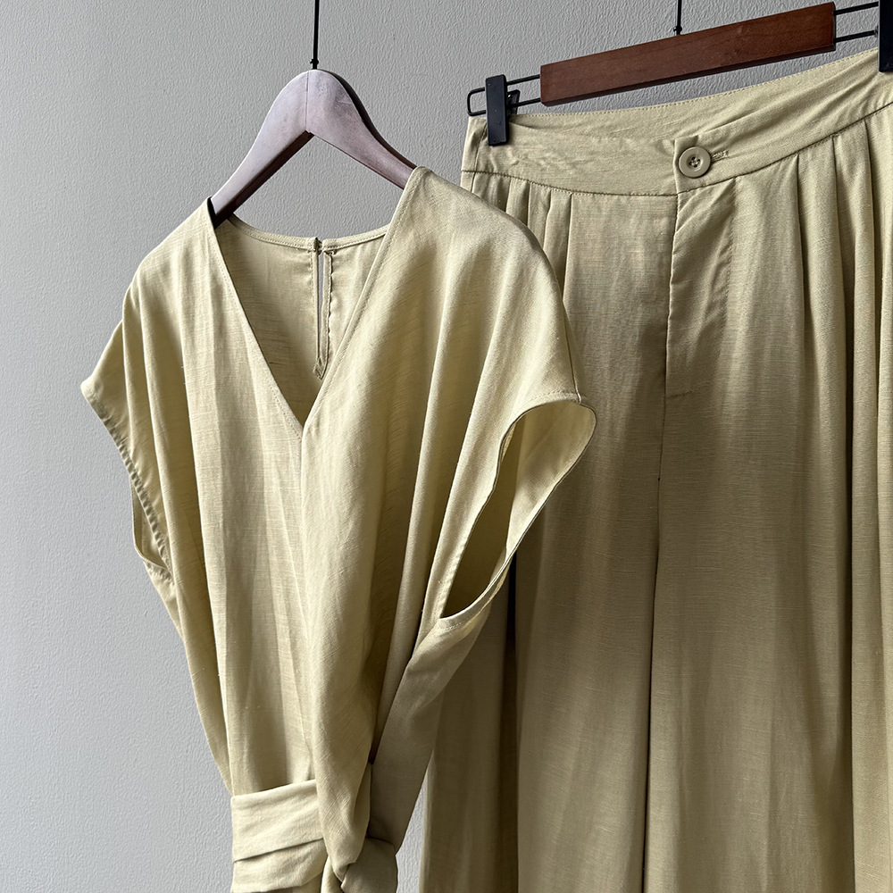 【Y82395】實拍 夏天高單天絲漢麻慵懶氣質綁帶襯衫+高腰顯瘦闊腿褲(分開下單)250529