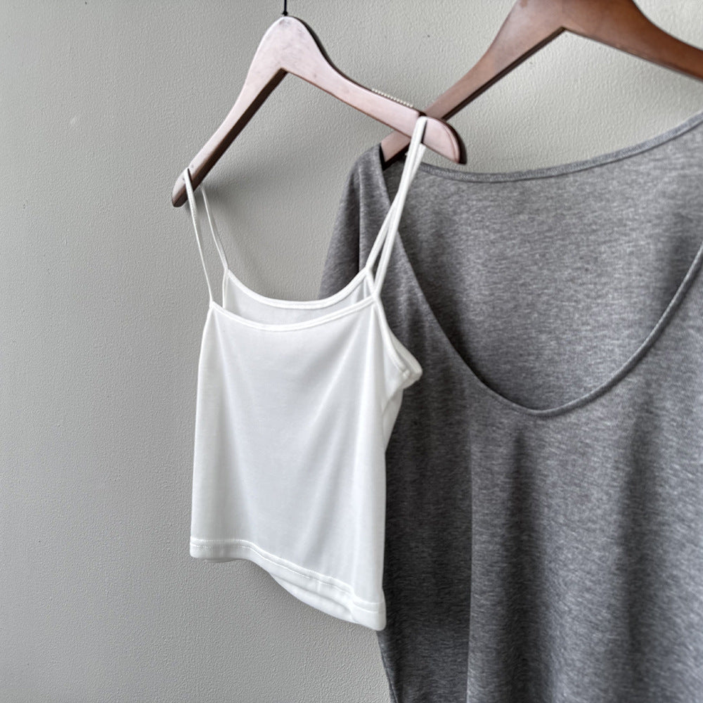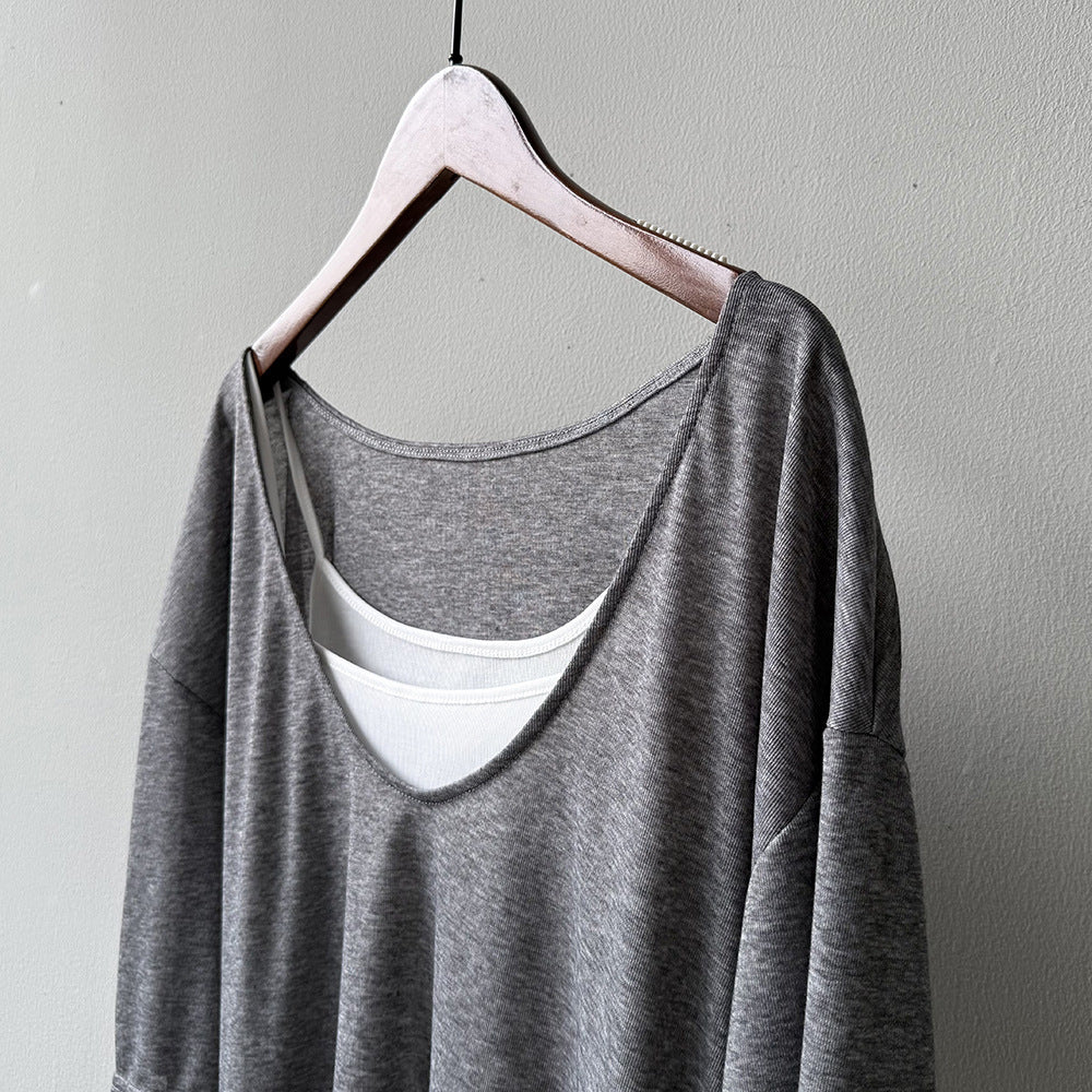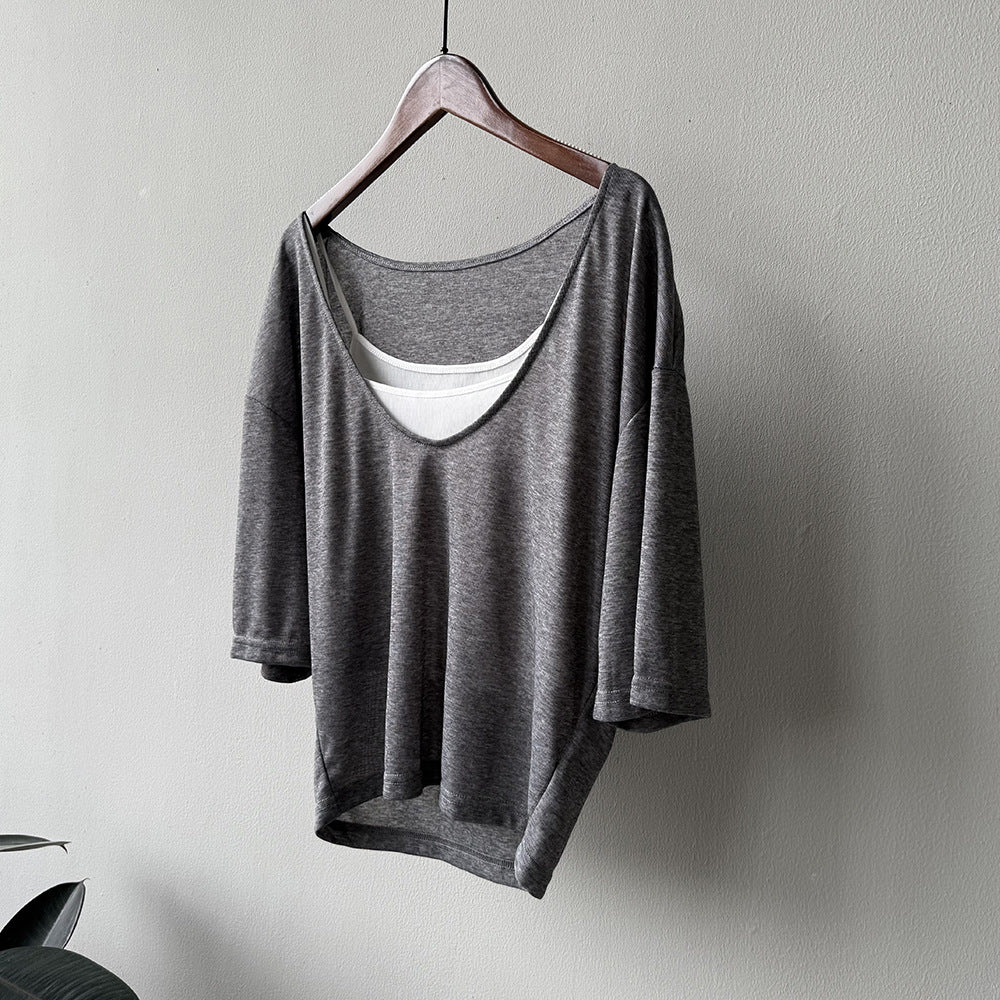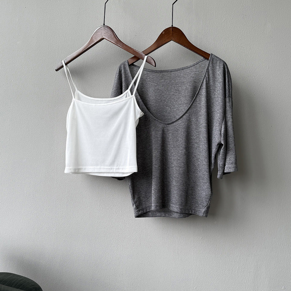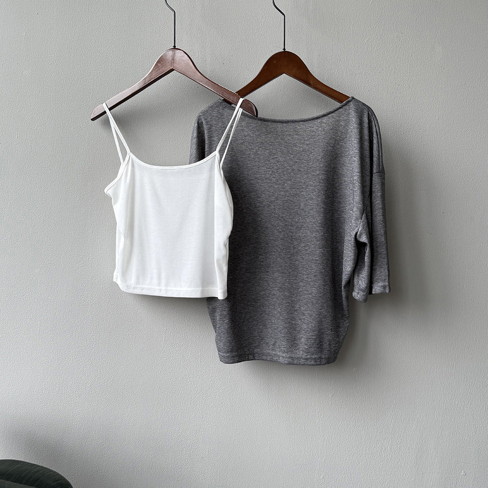 【Y82529】實拍夏季天絲羊毛慵懶短袖T恤+吊帶背心250619