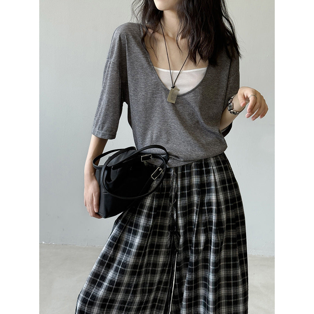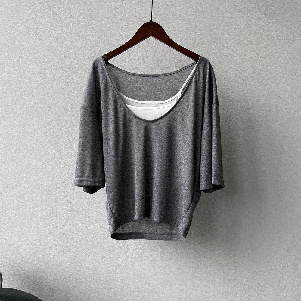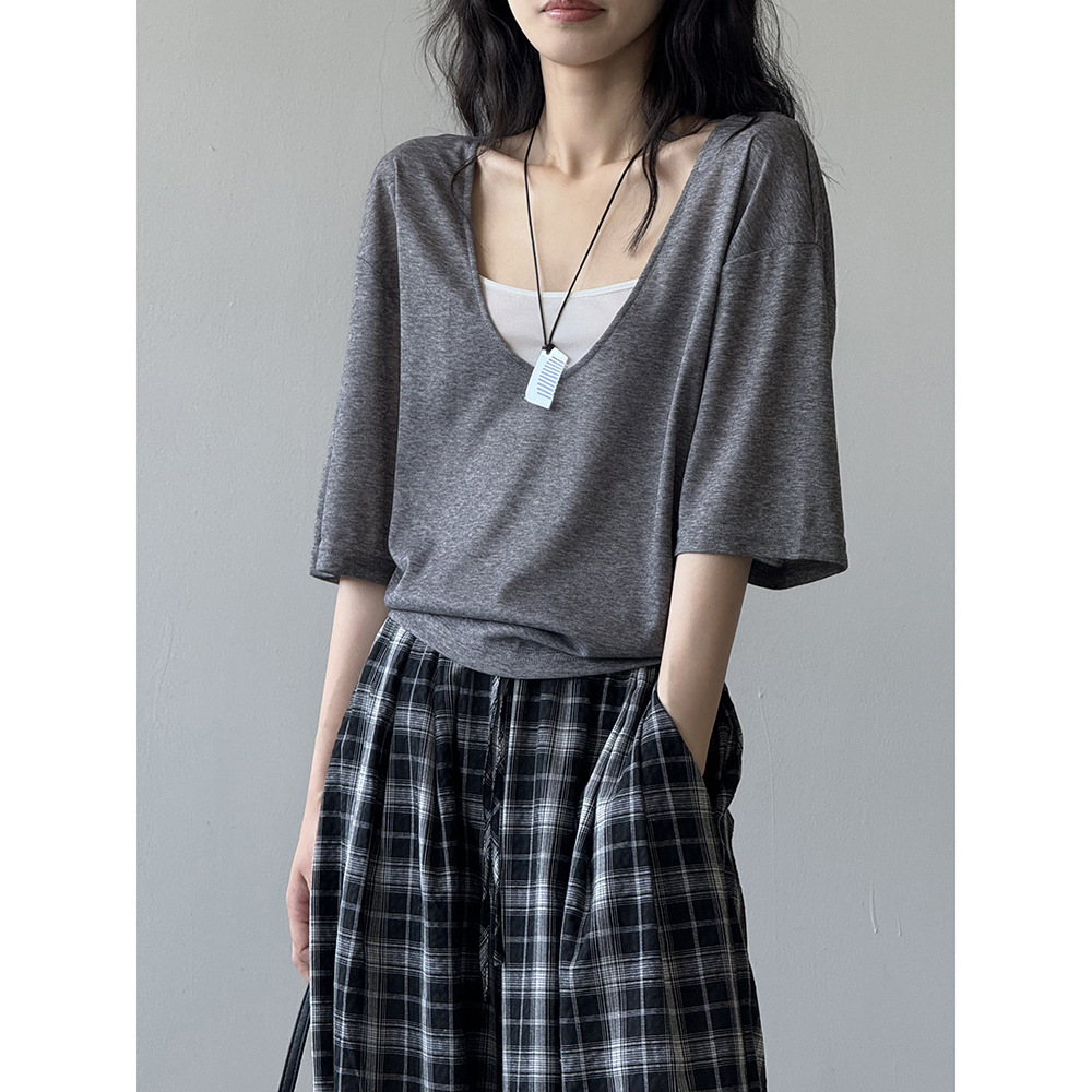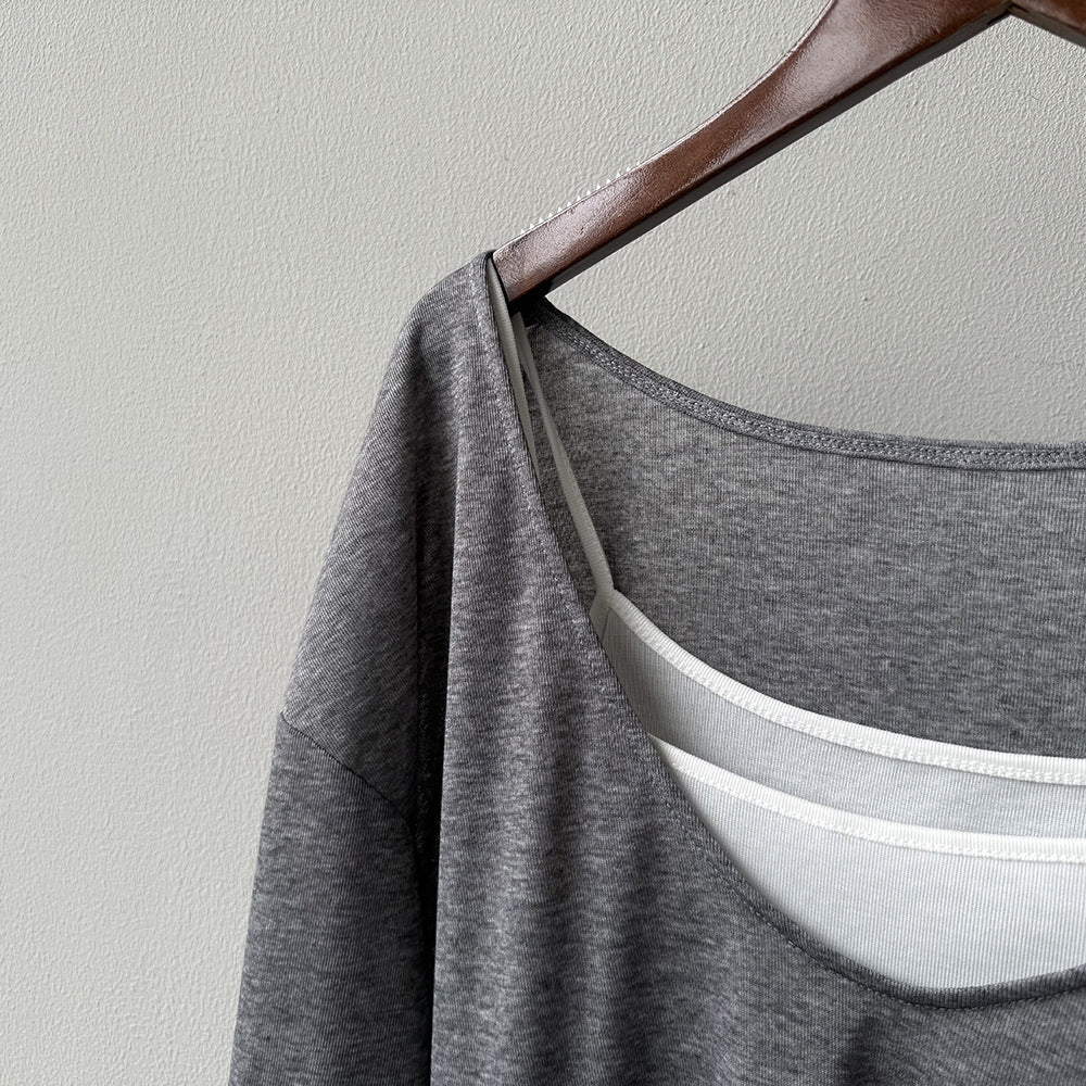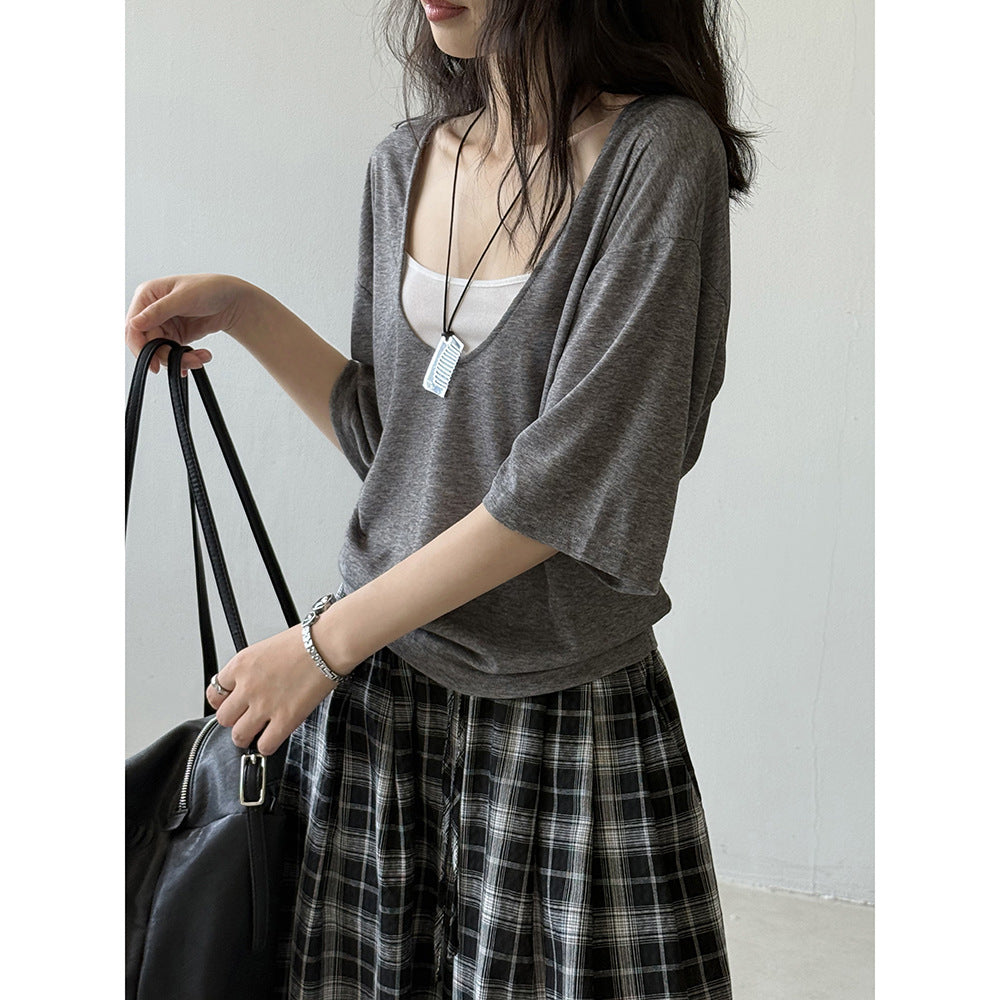 【Y82529】實拍夏季天絲羊毛慵懶短袖T恤+吊帶背心250619