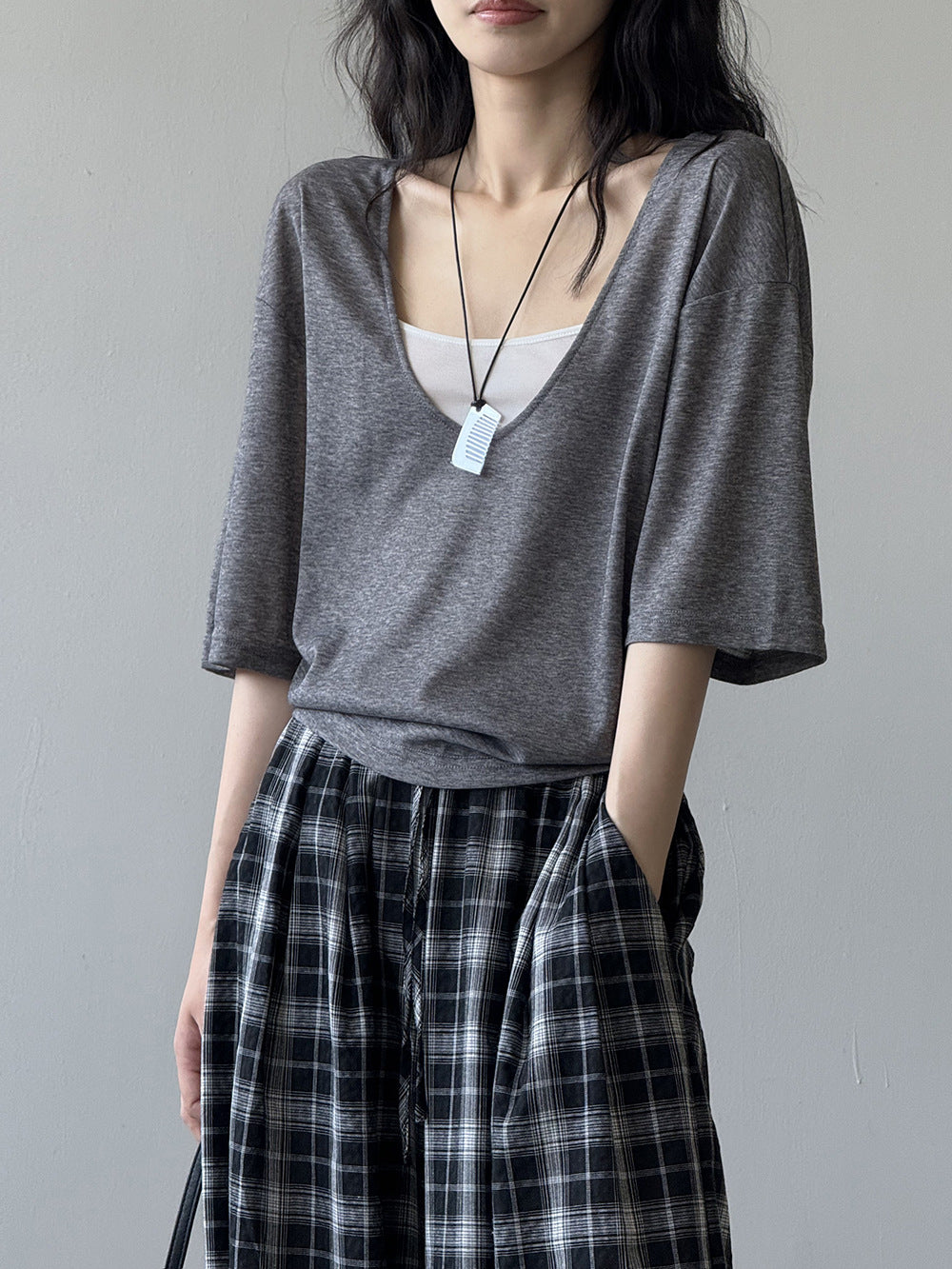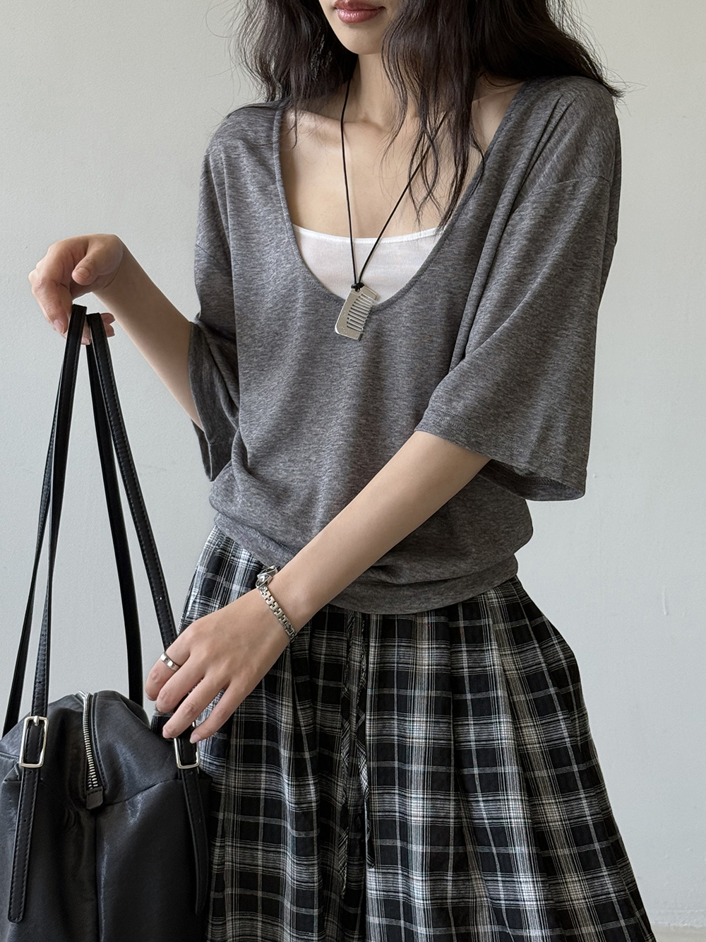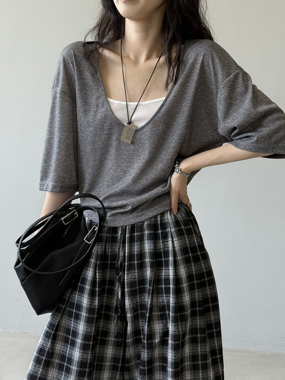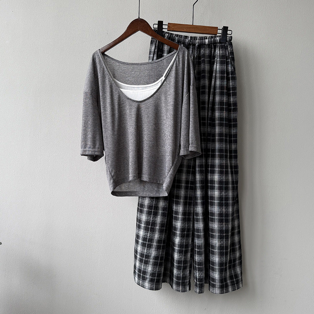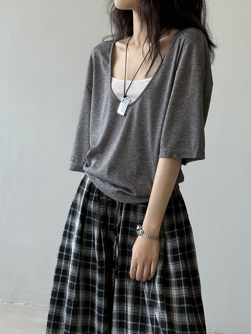 【Y82529】實拍夏季天絲羊毛慵懶短袖T恤+吊帶背心250619