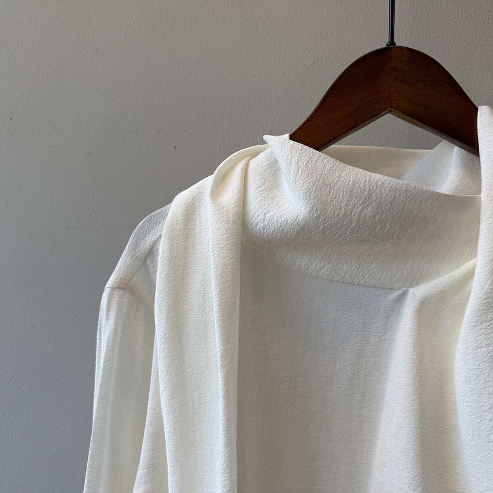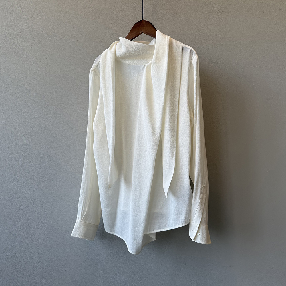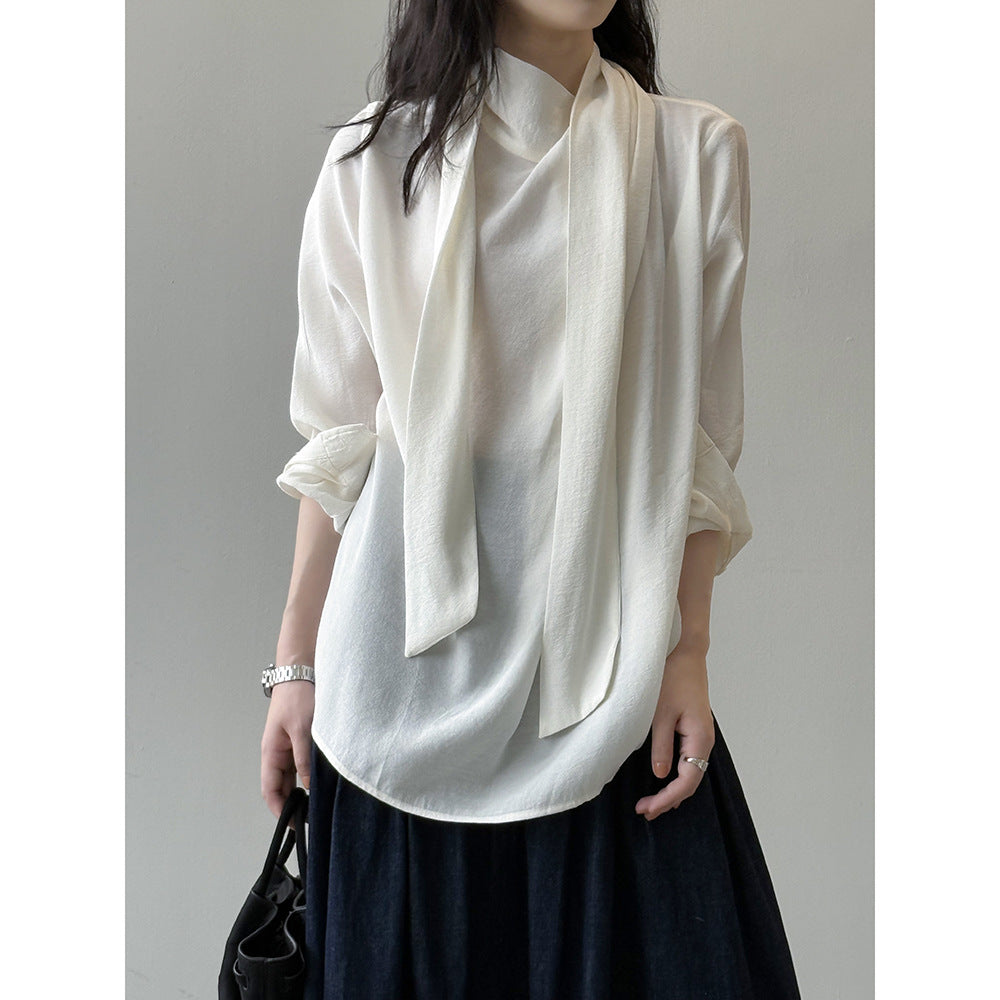 【Y82582】實拍初秋法式輕熟高級感優雅飄帶襯衫(80%莫代爾)250822