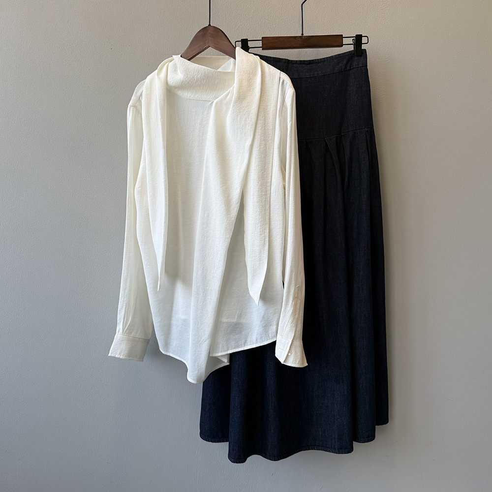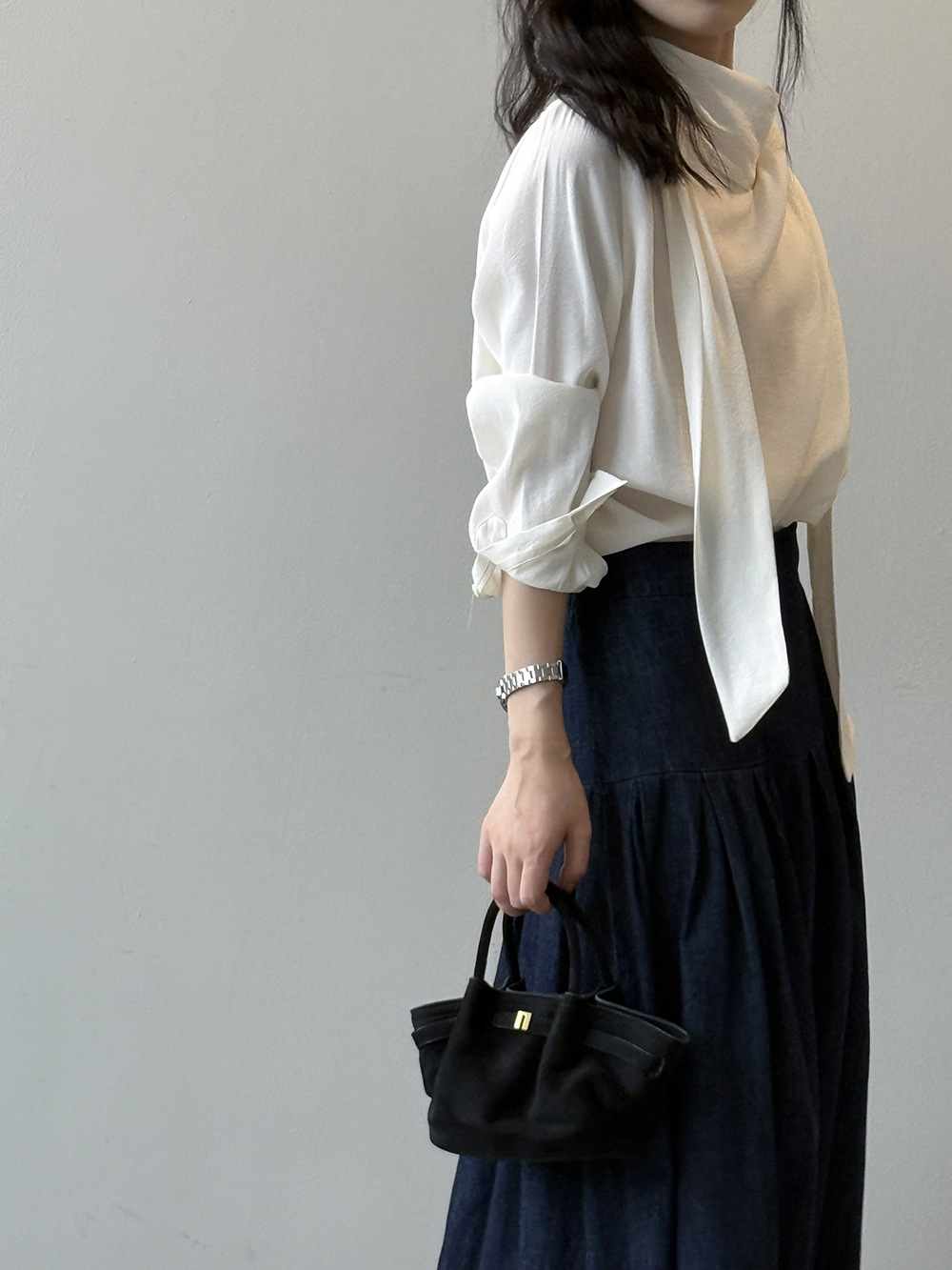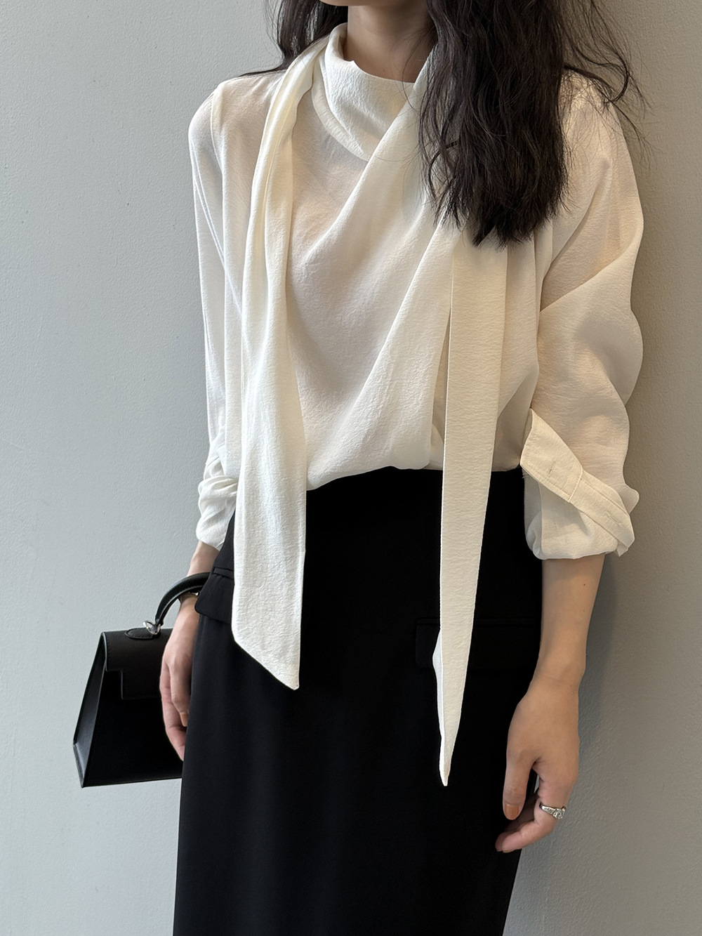 【Y82582】實拍初秋法式輕熟高級感優雅飄帶襯衫(80%莫代爾)250822