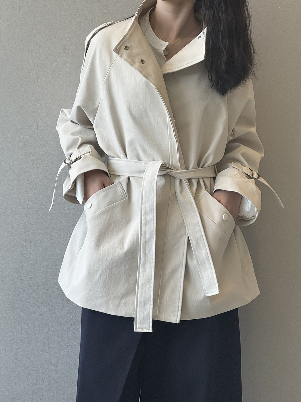 【Y82585】實拍初秋英倫風立領休閒綁帶風衣外套250822