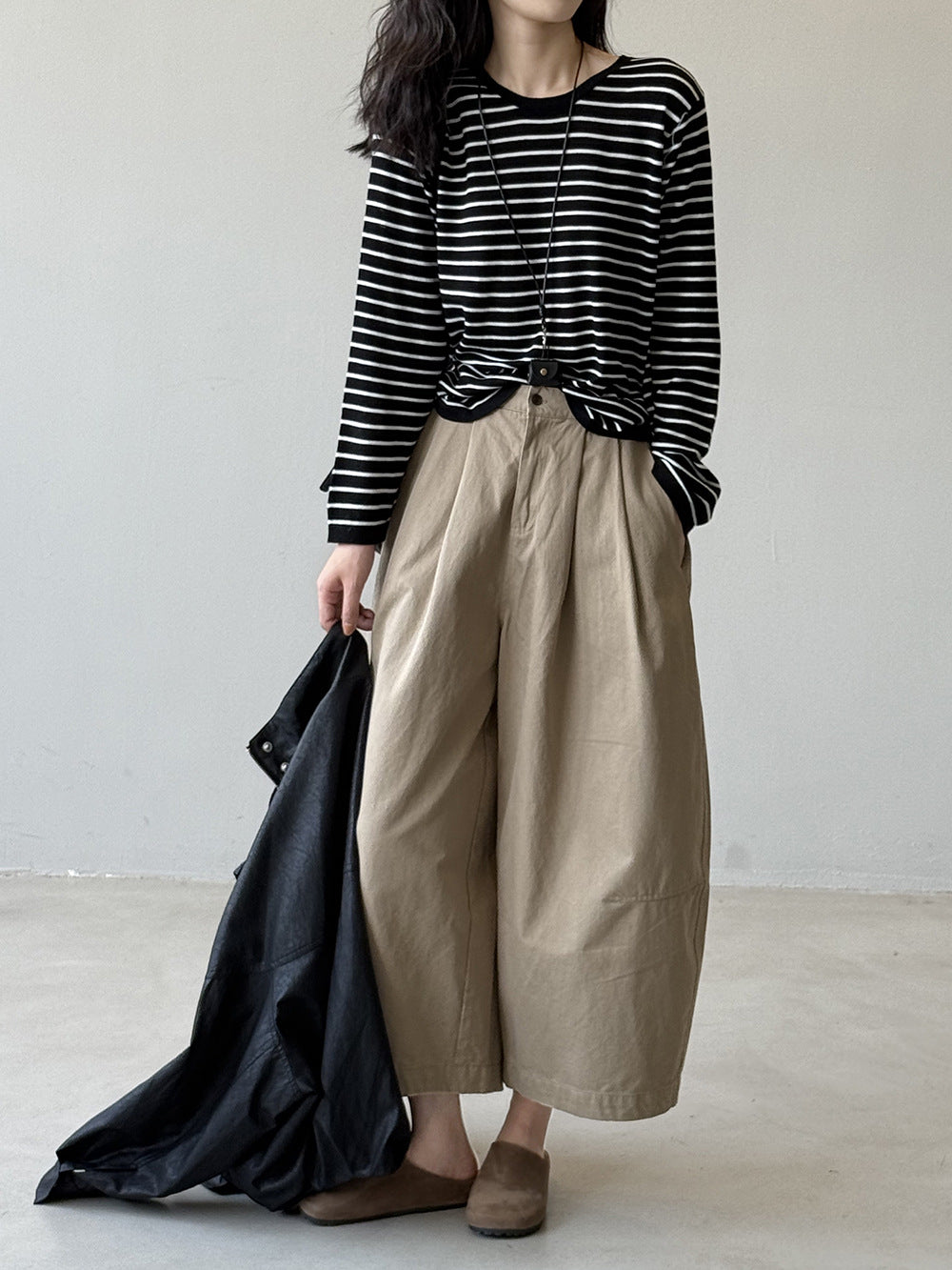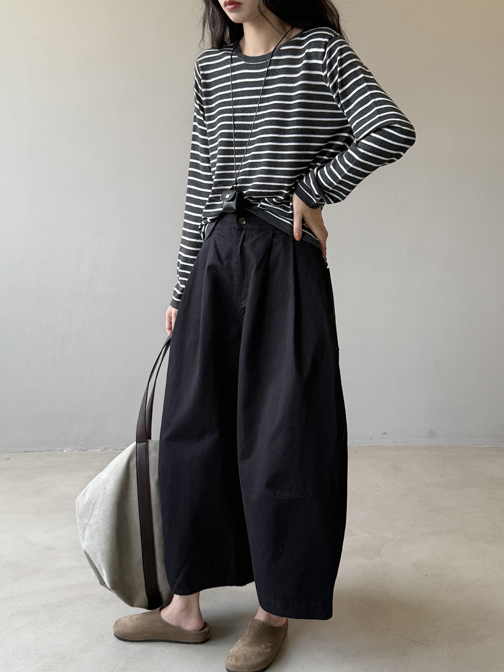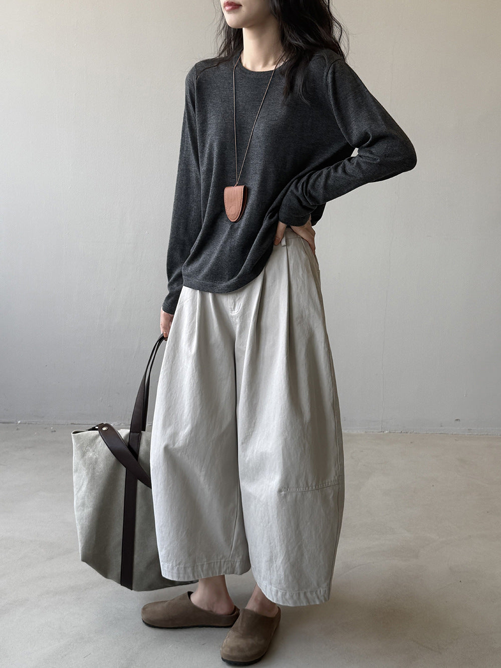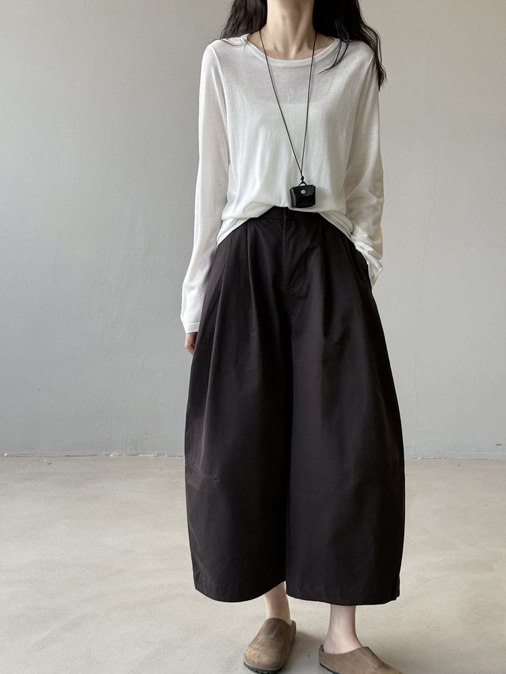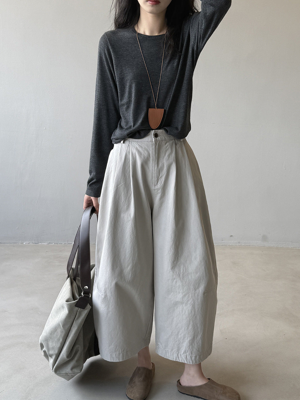 【Y82590】實拍顯瘦高腰九分彎刀氣球褲250911