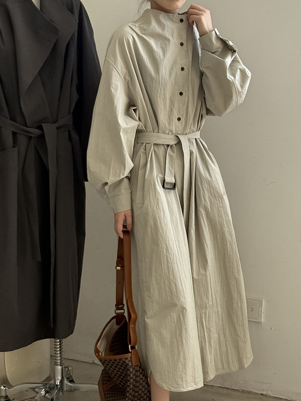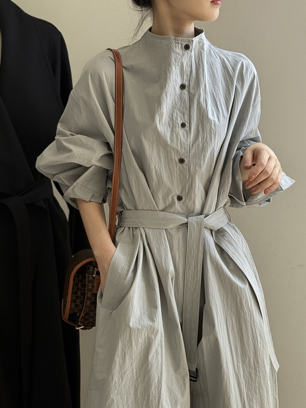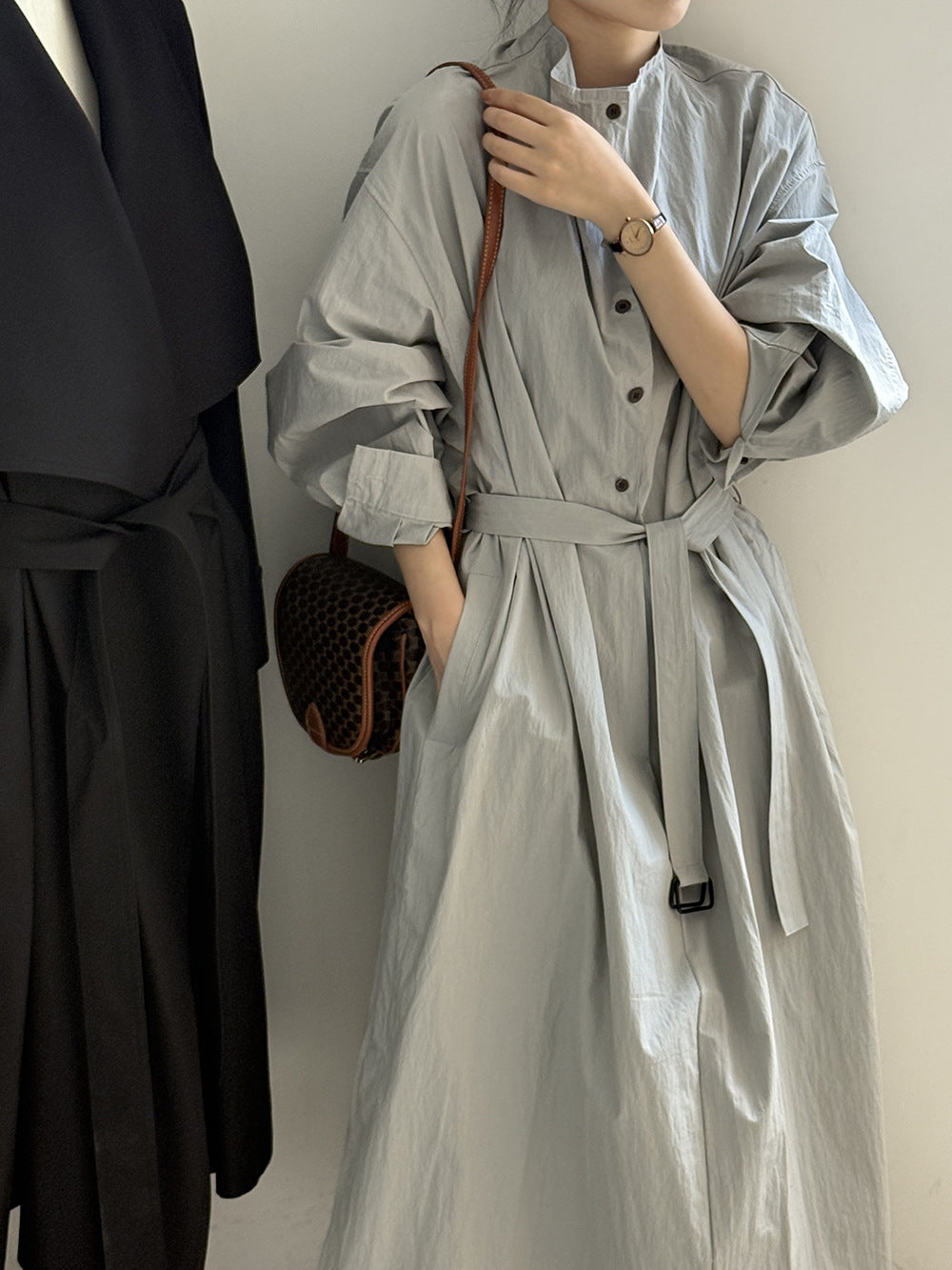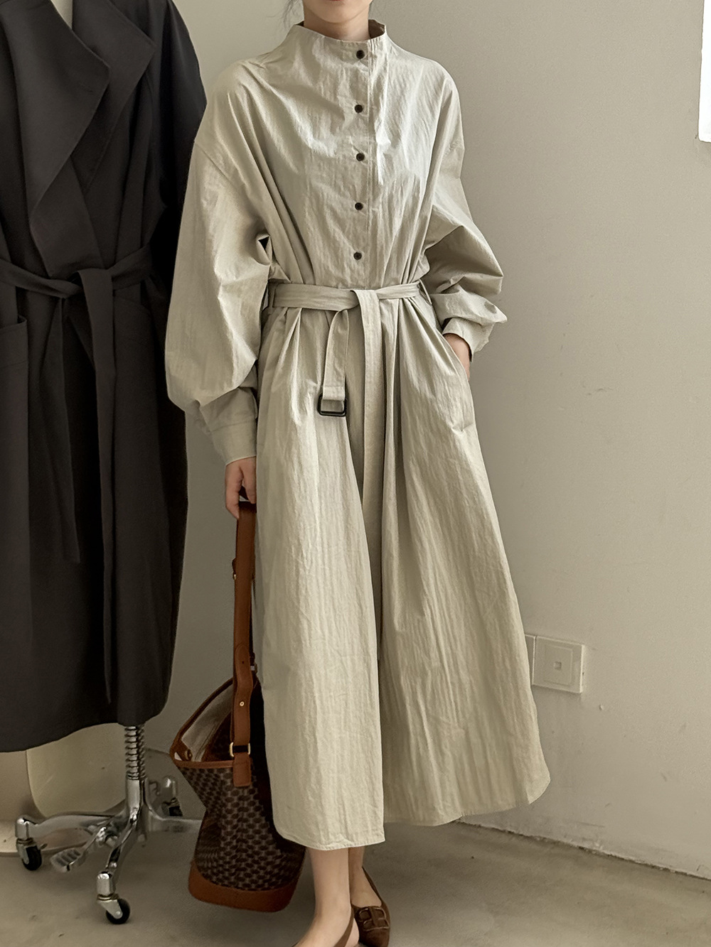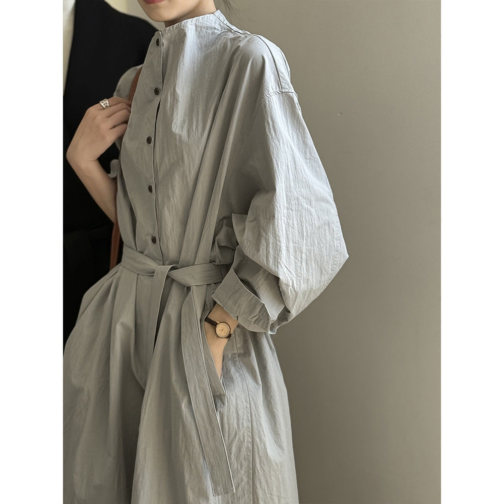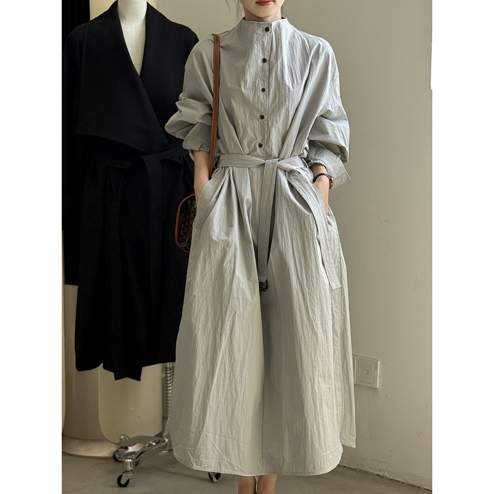 【Y82593】實拍法式復古微高領襯衫長洋裝含腰帶250828