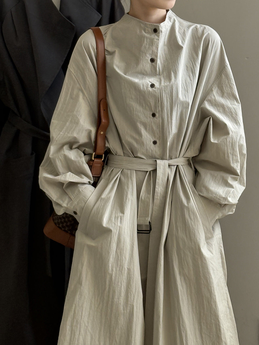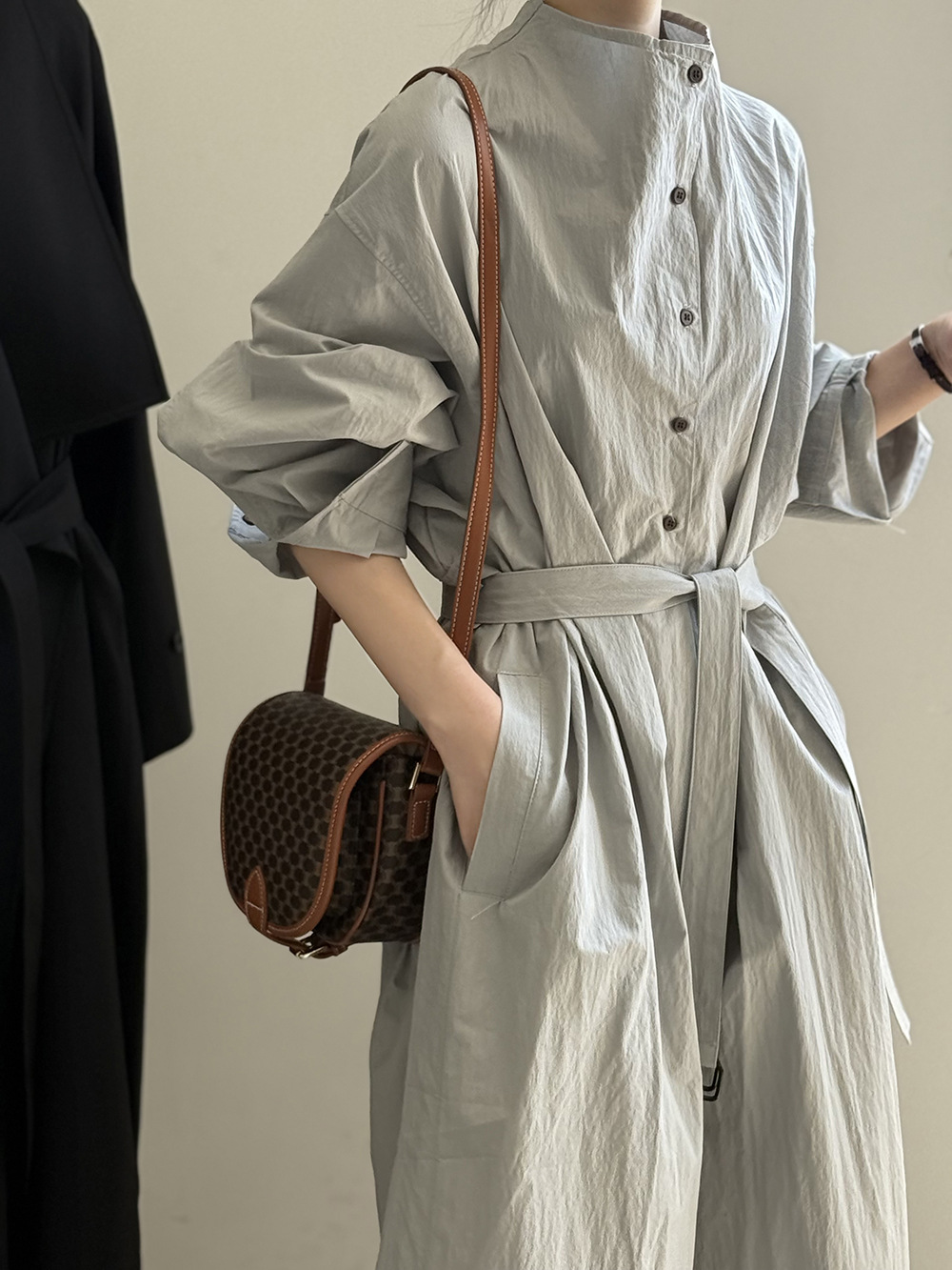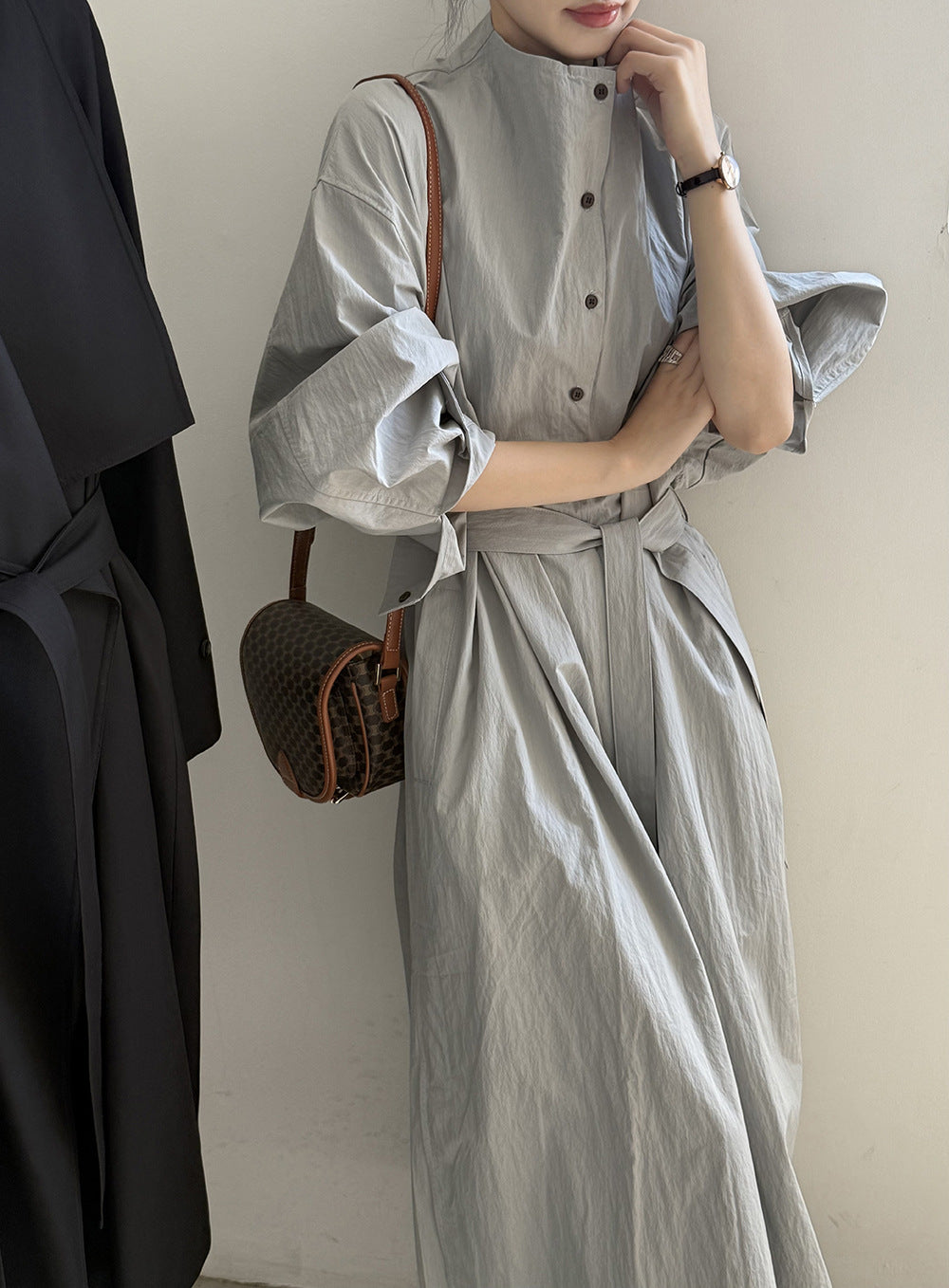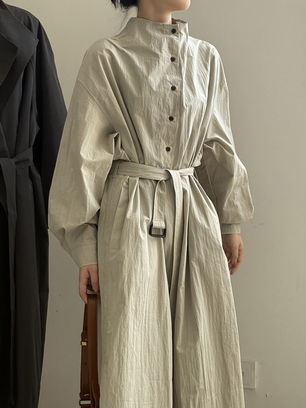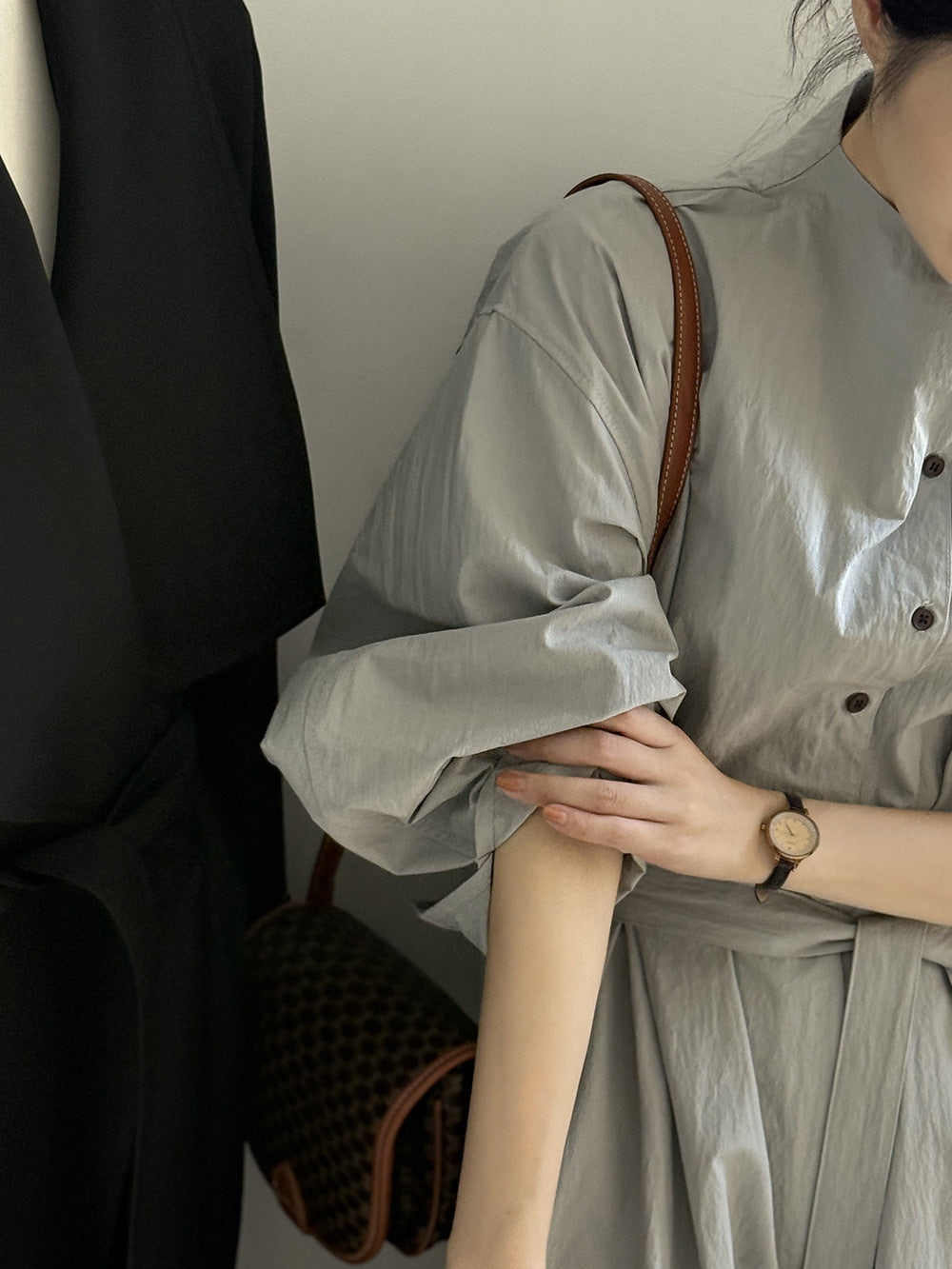 【Y82593】實拍法式復古微高領襯衫長洋裝含腰帶250828