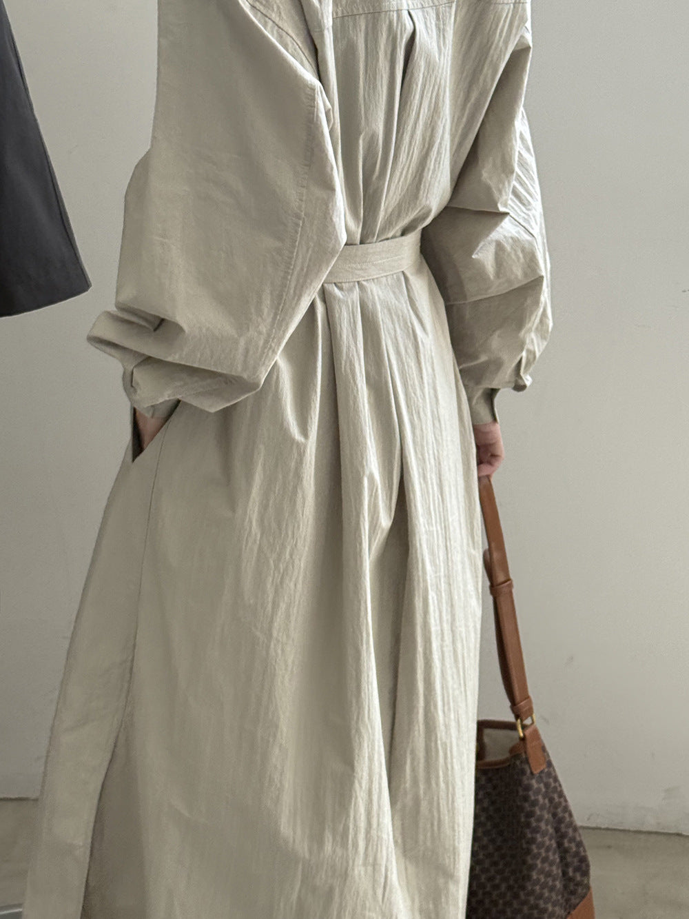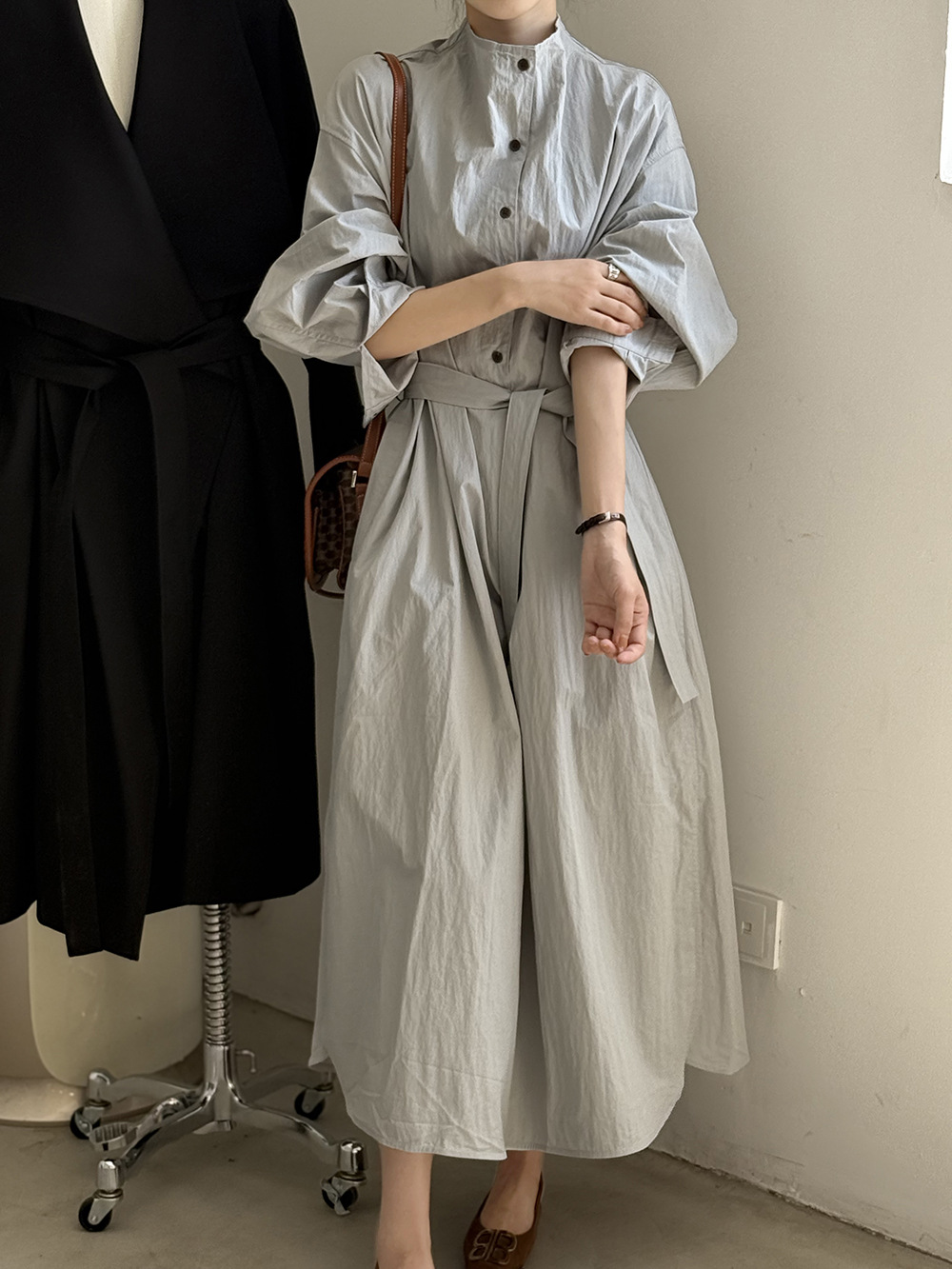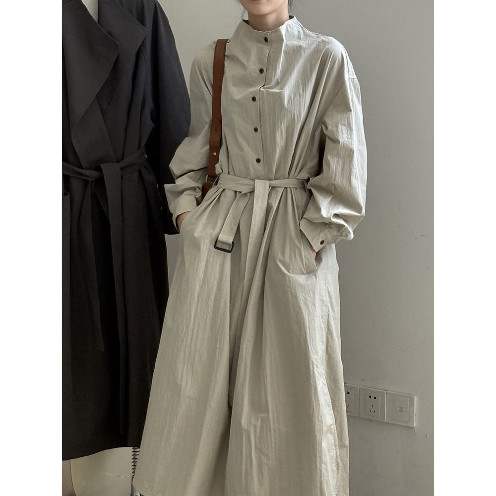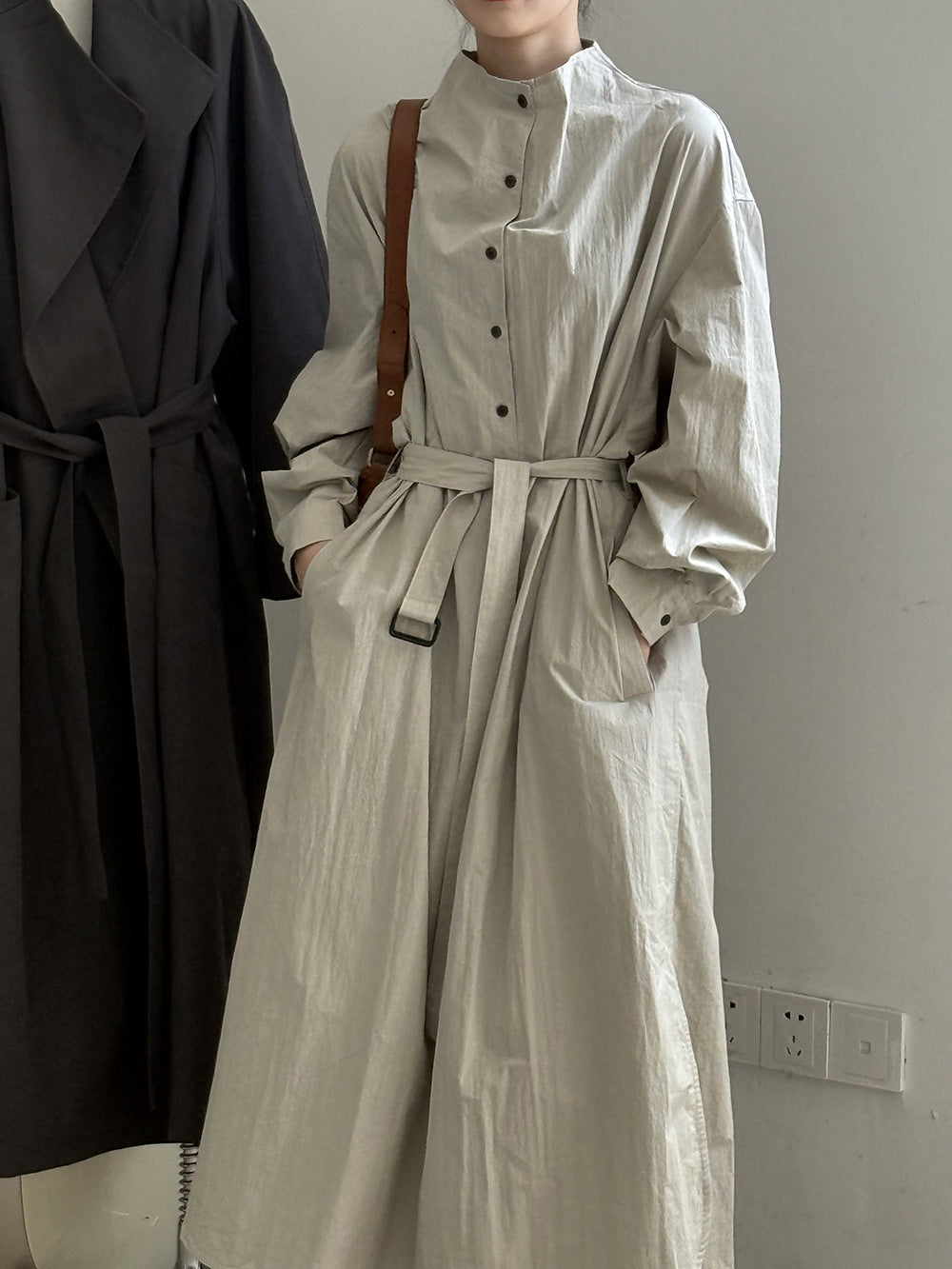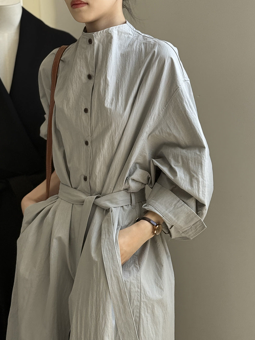 【Y82593】實拍法式復古微高領襯衫長洋裝含腰帶250828