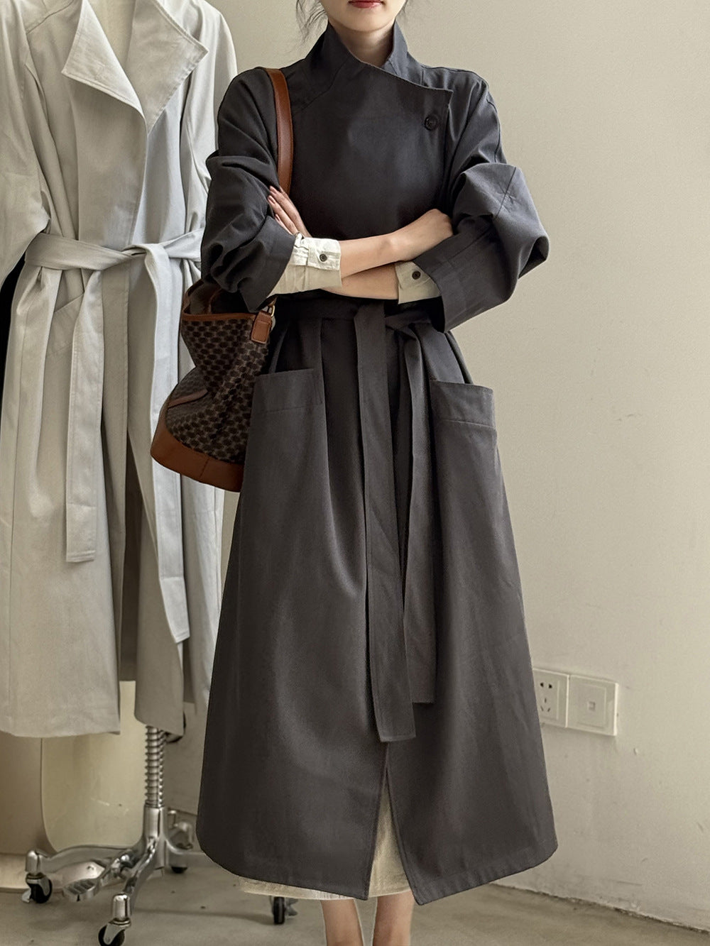 【Y82598】實拍秋季韓系復古翻領一粒扣大衣外套250828