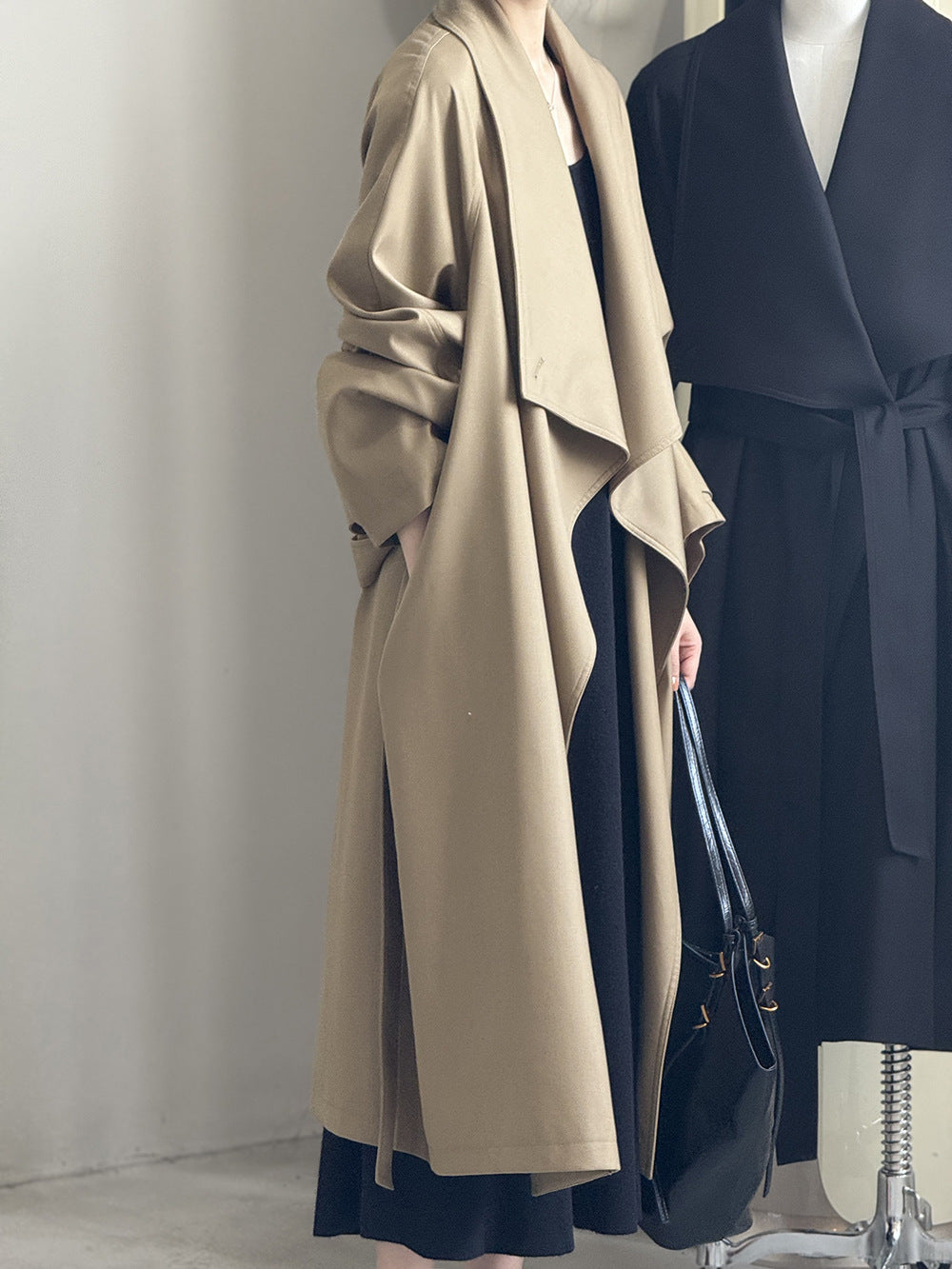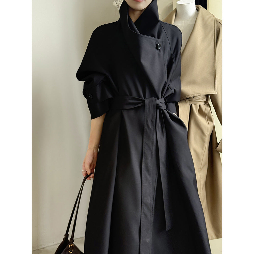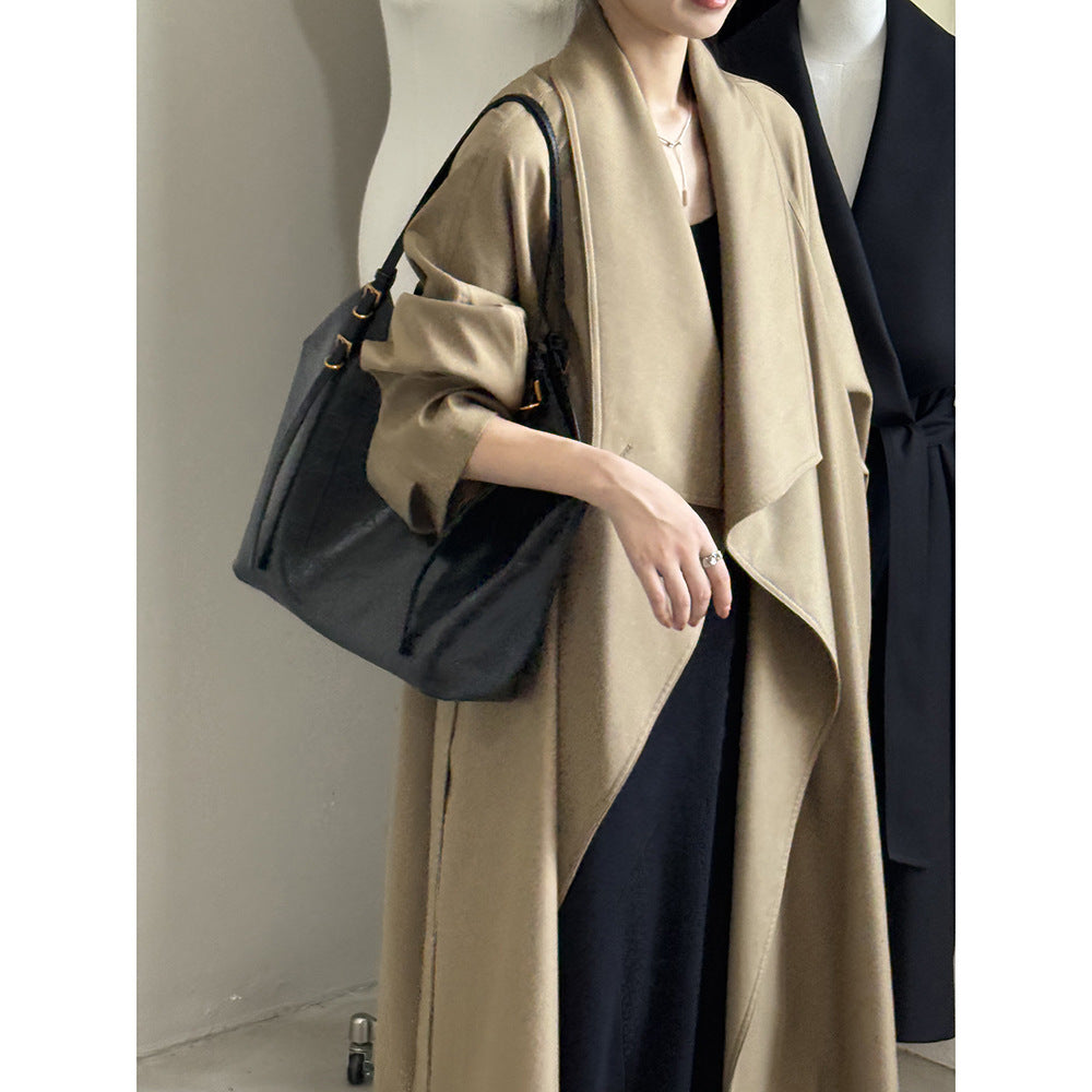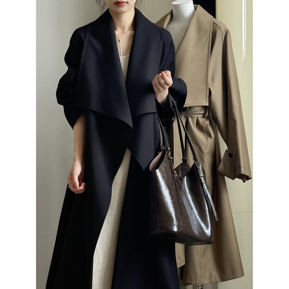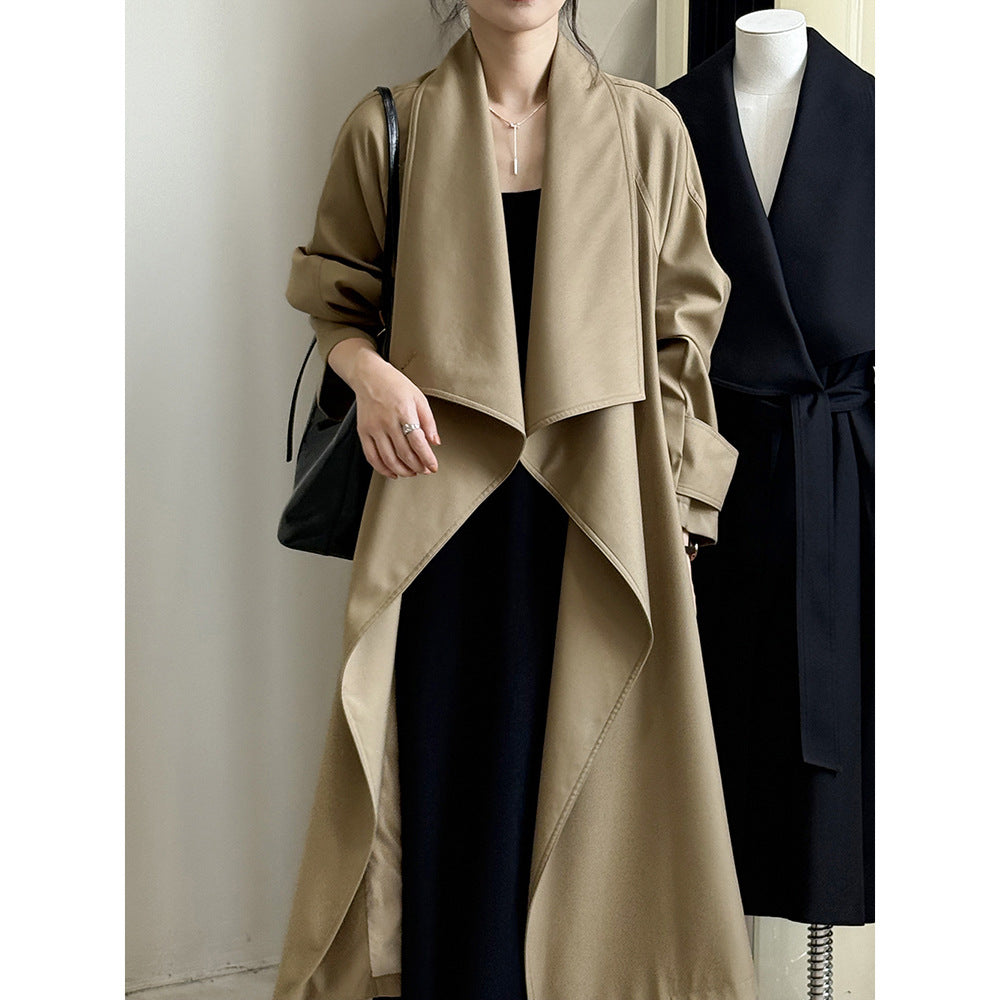 【Y82605】實拍韓系設計款大翻領寬鬆長款風衣外套含腰帶250828
