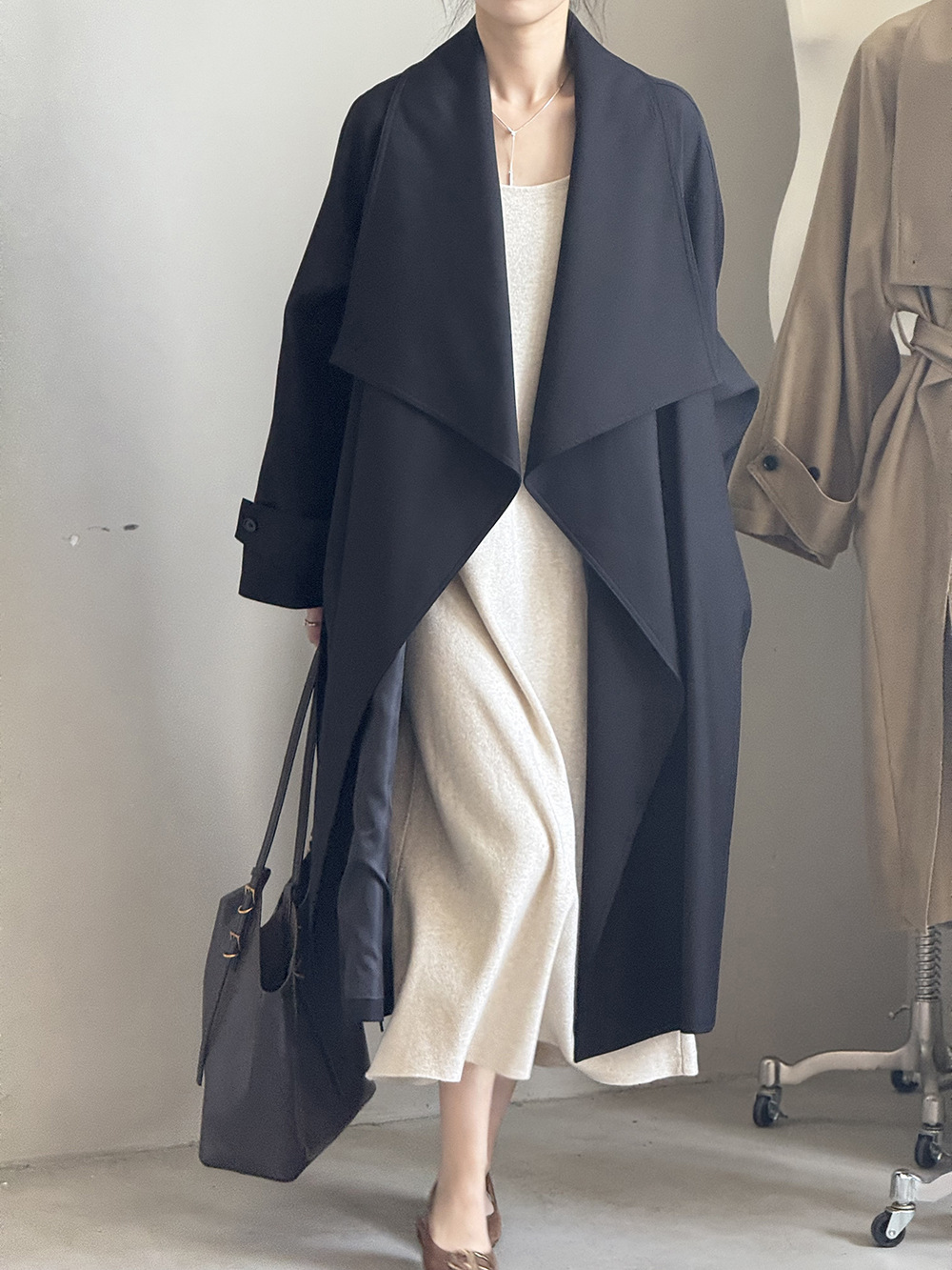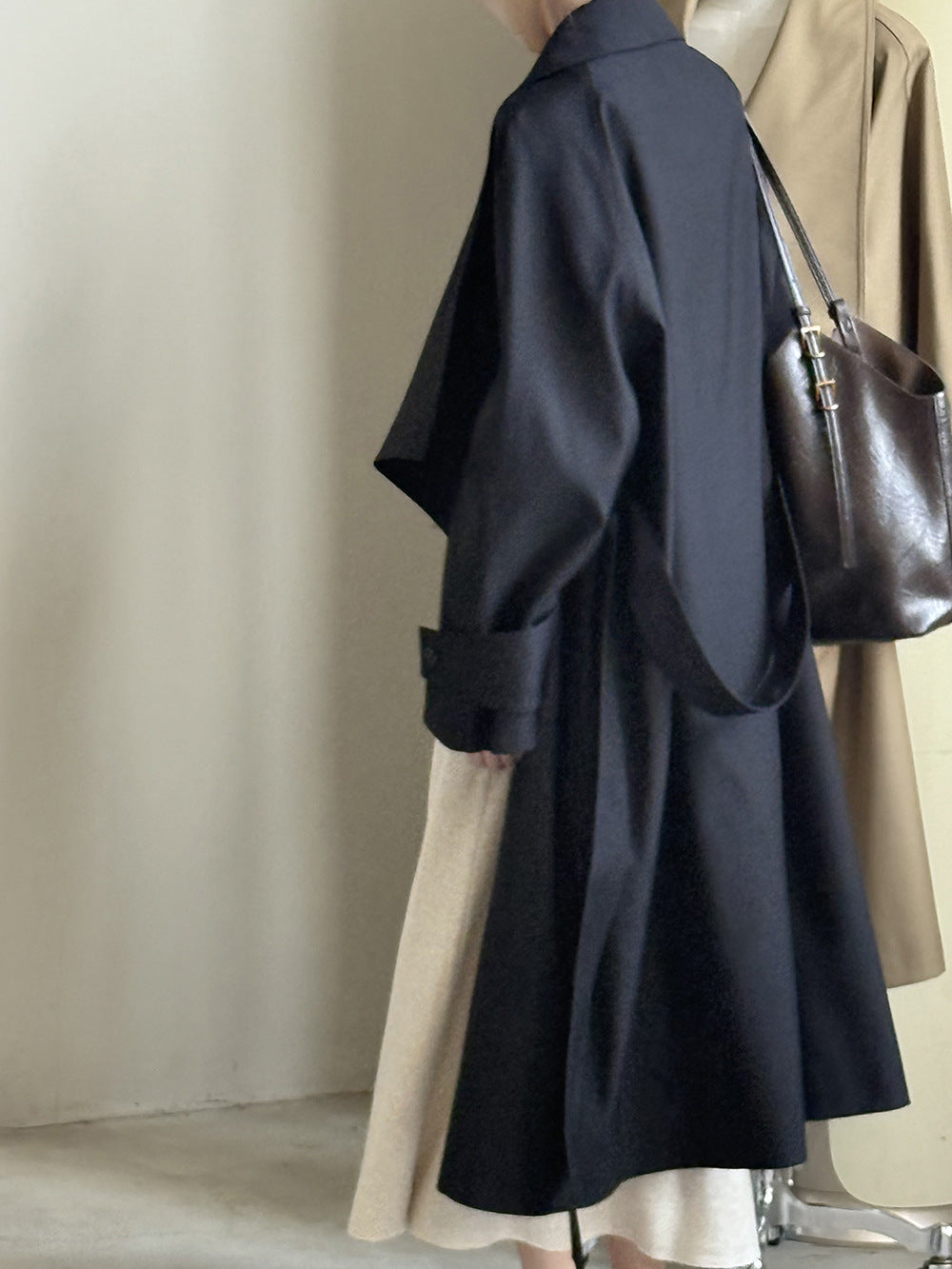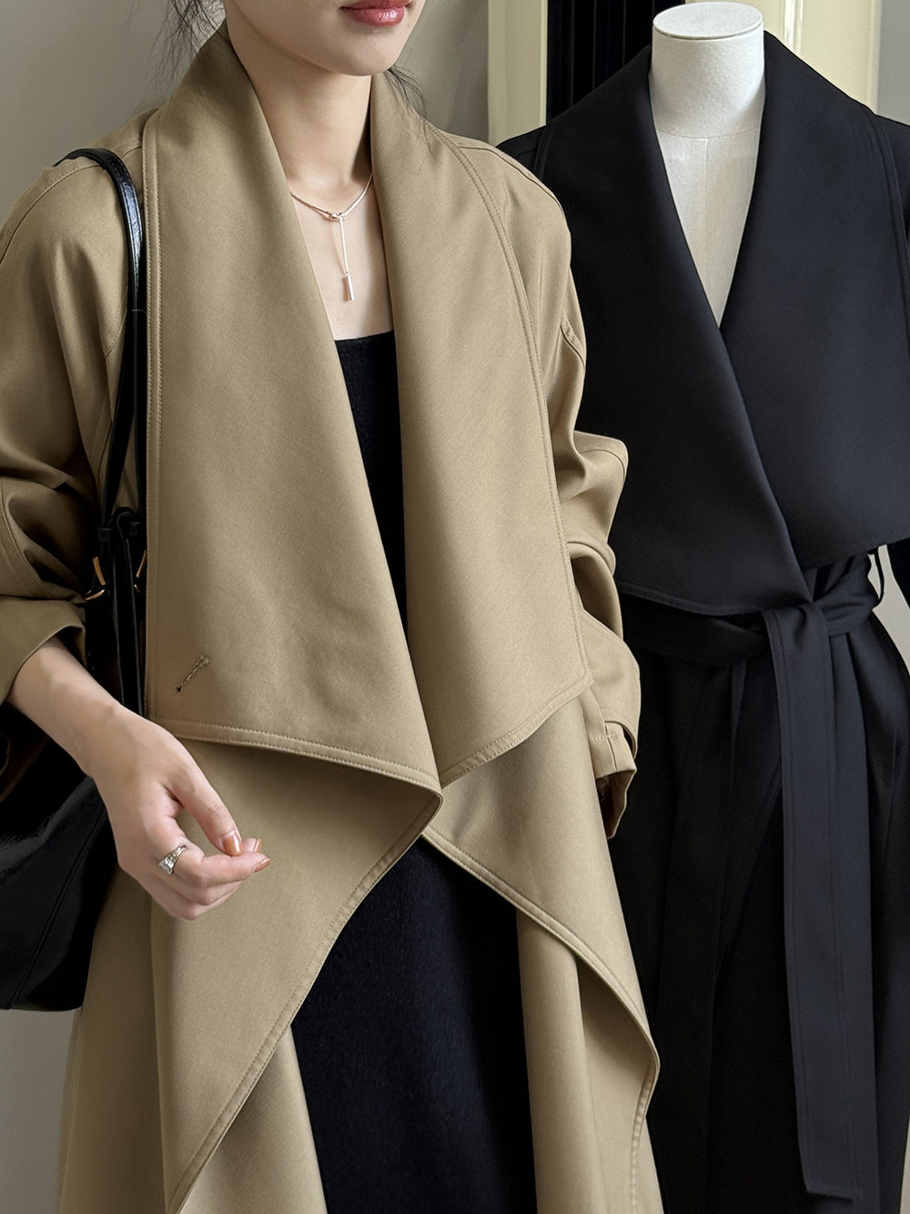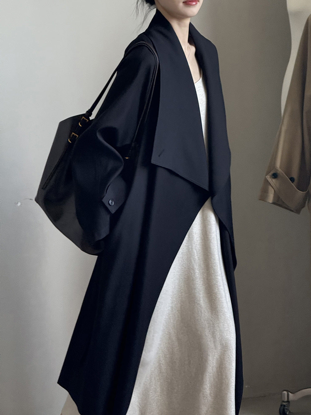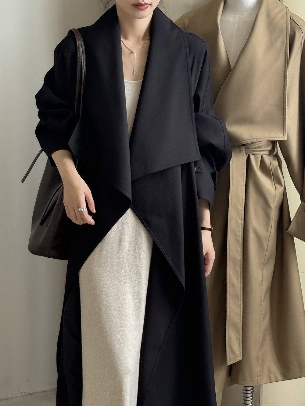 【Y82605】實拍韓系設計款大翻領寬鬆長款風衣外套含腰帶250828