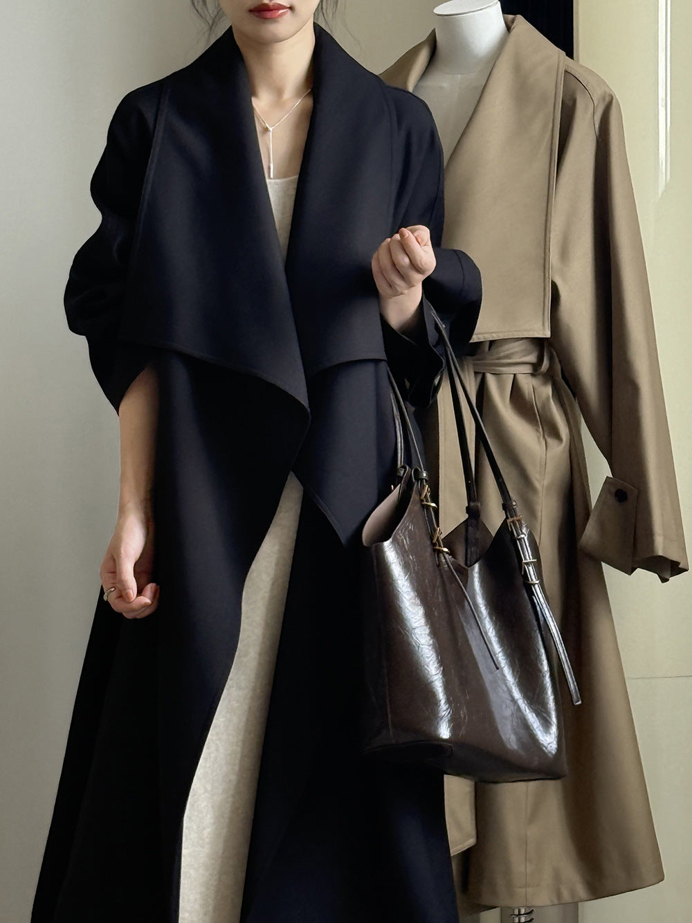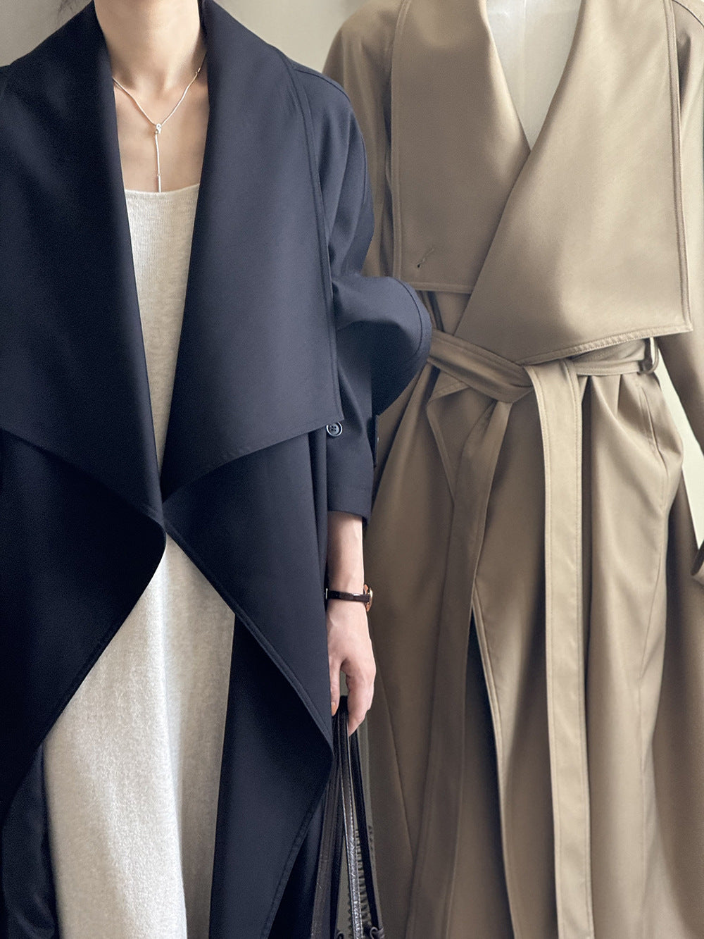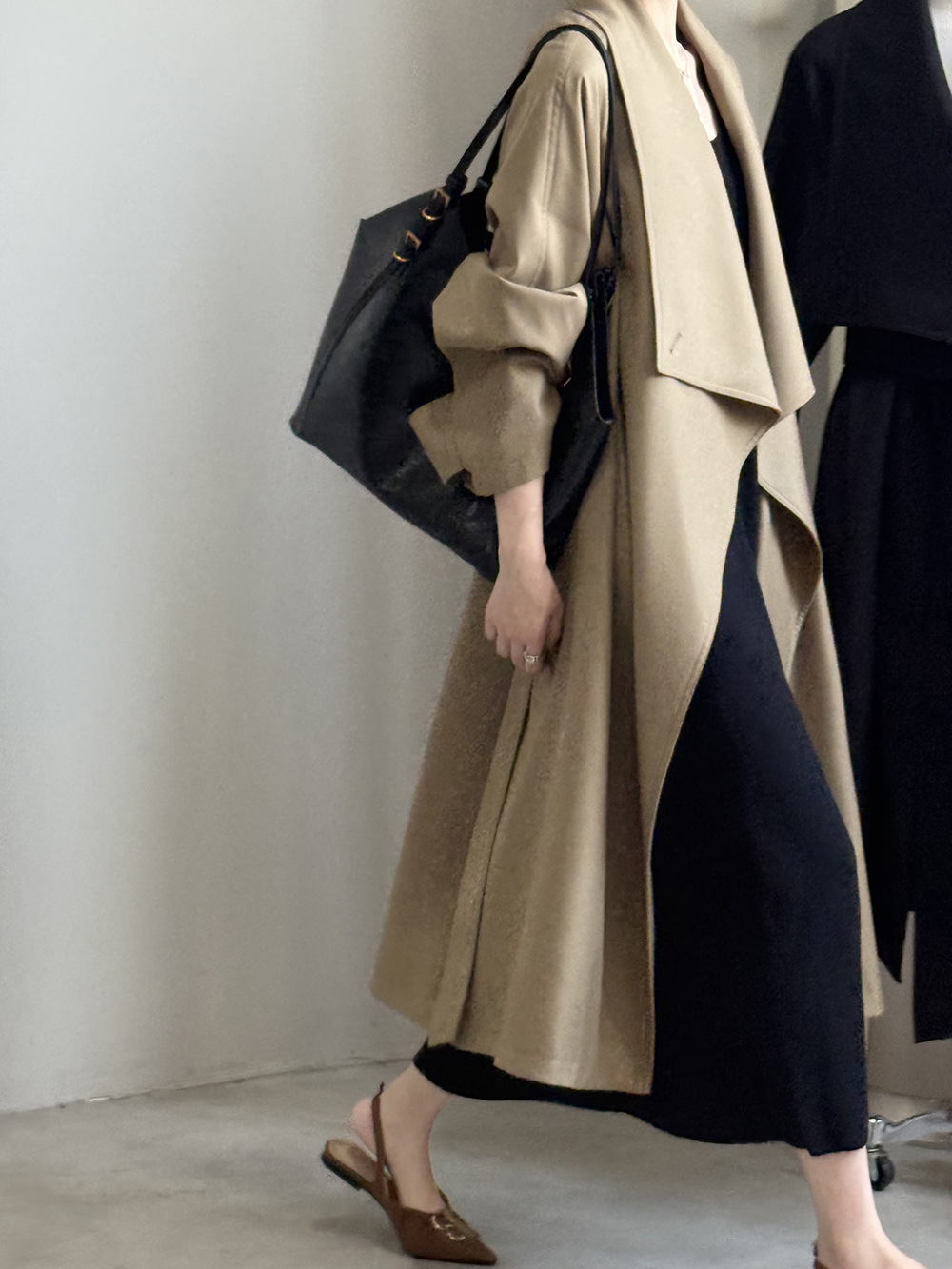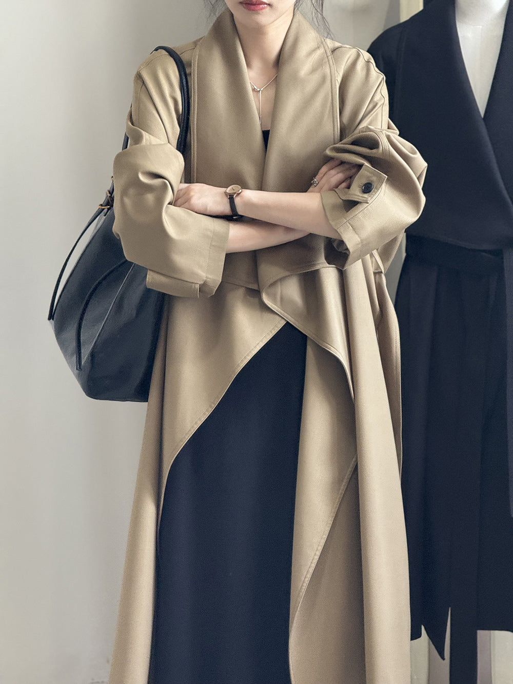 【Y82605】實拍韓系設計款大翻領寬鬆長款風衣外套含腰帶250828