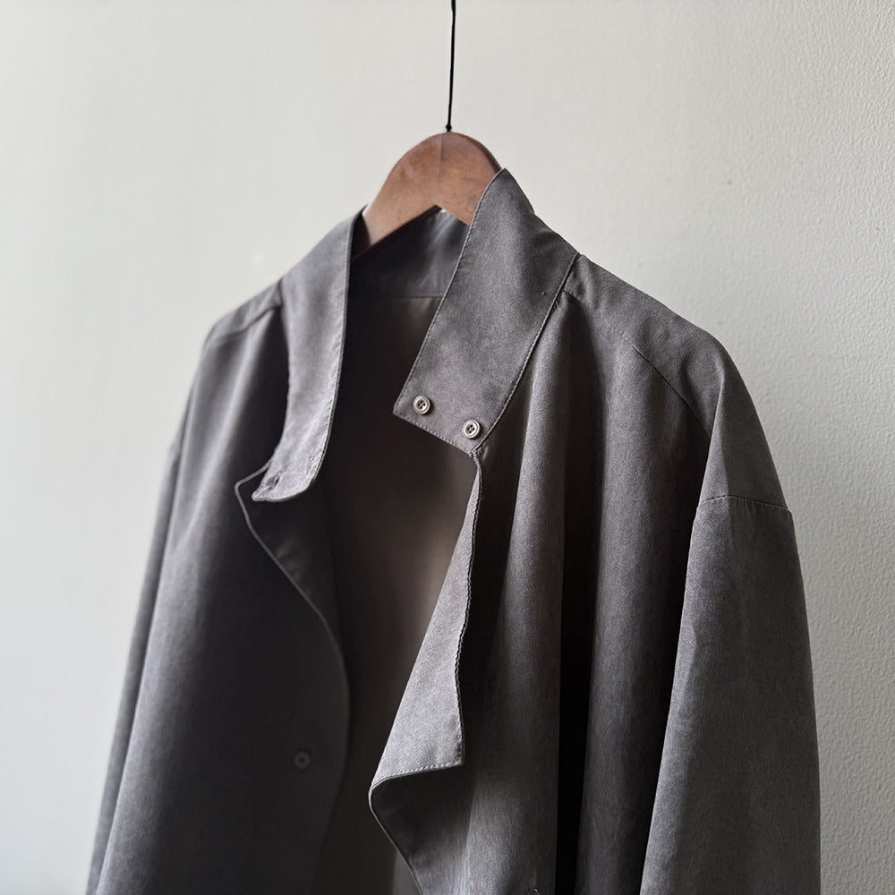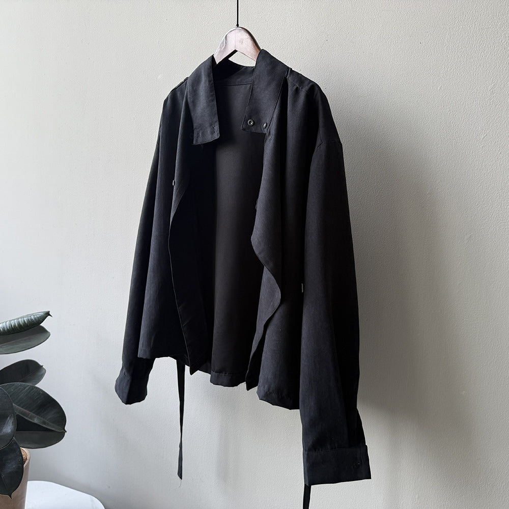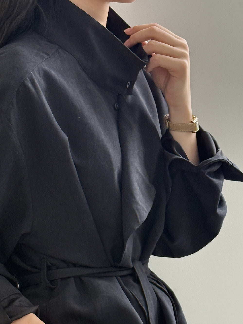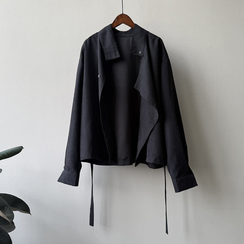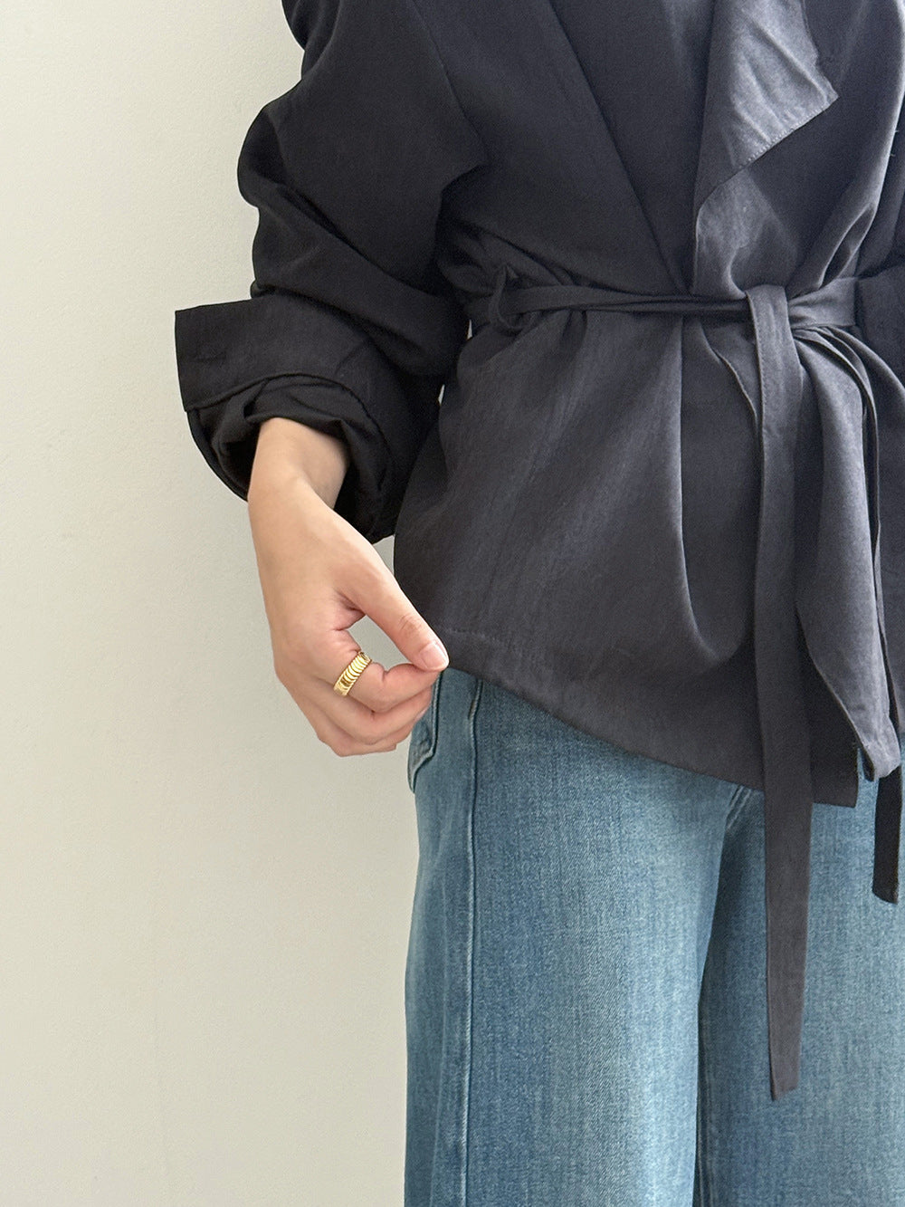【Y82622】實拍設計款絨感立領收腰繫帶襯衫250918