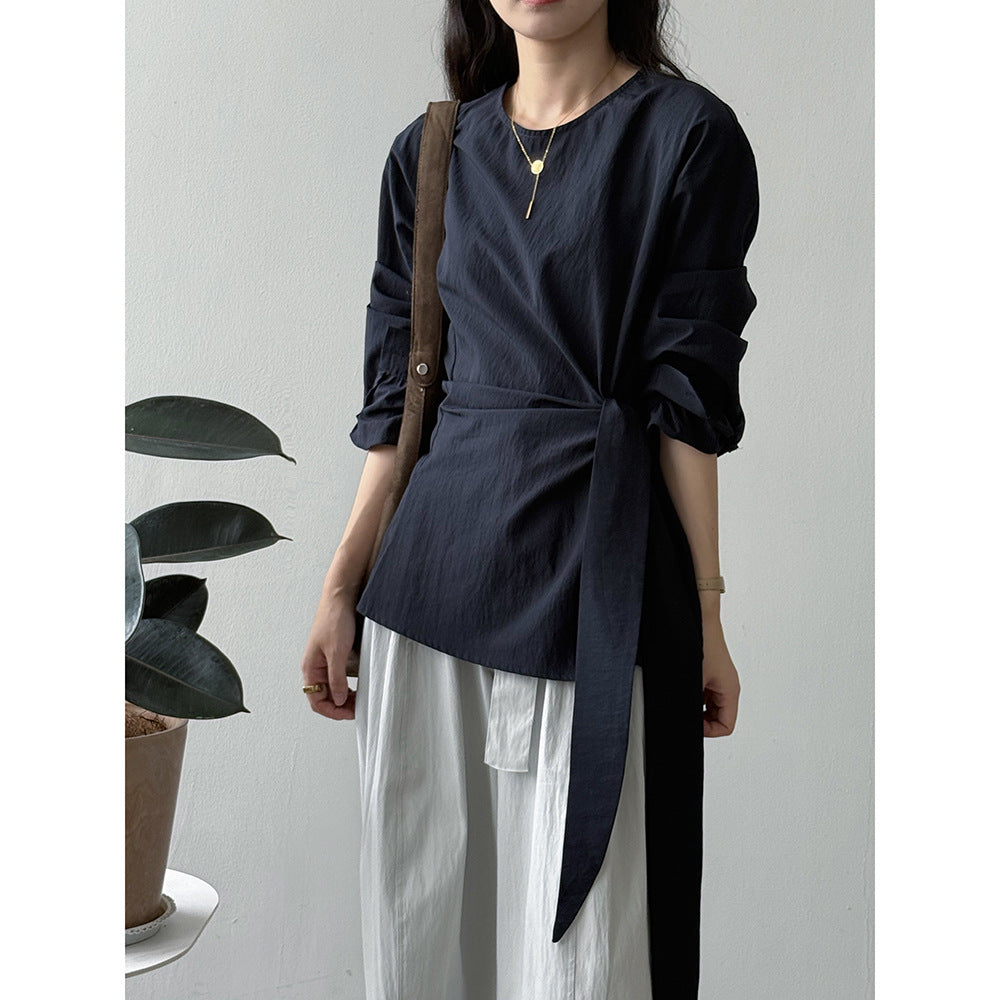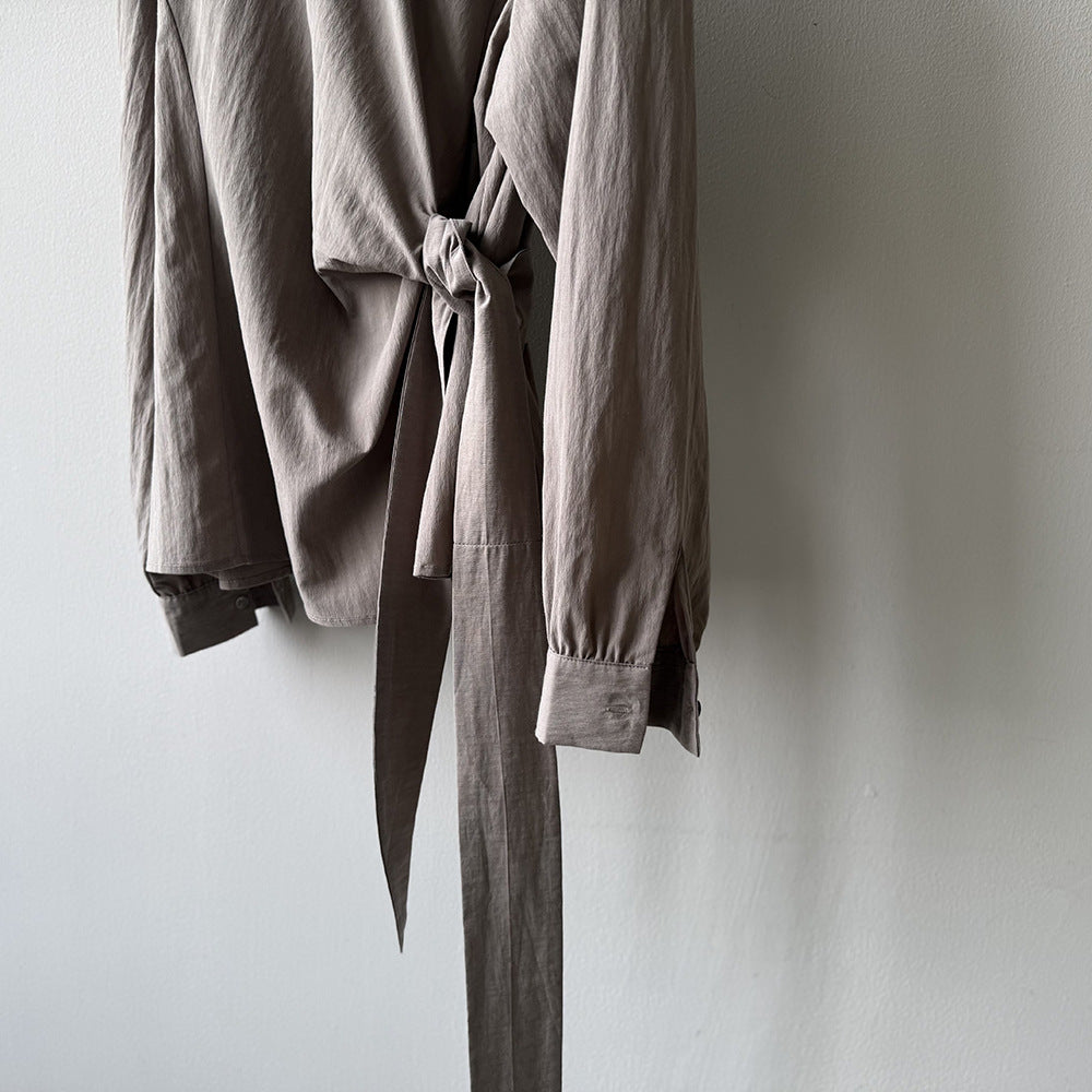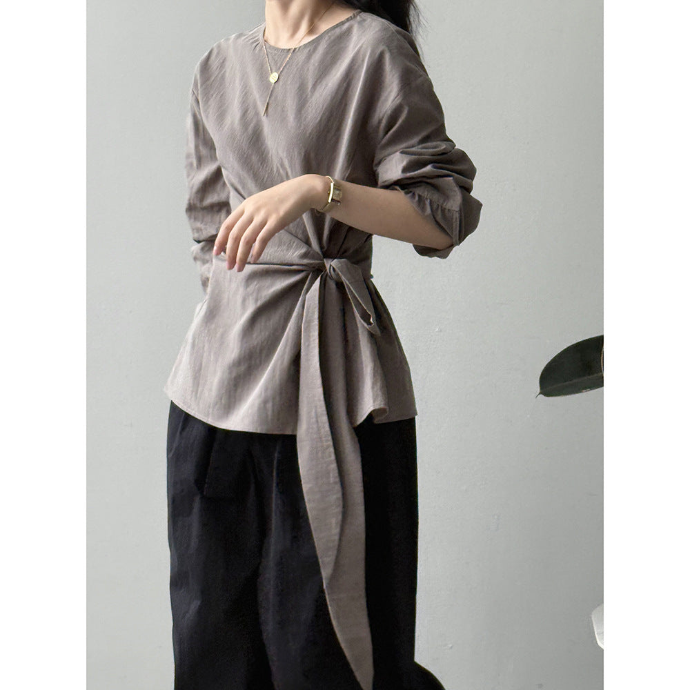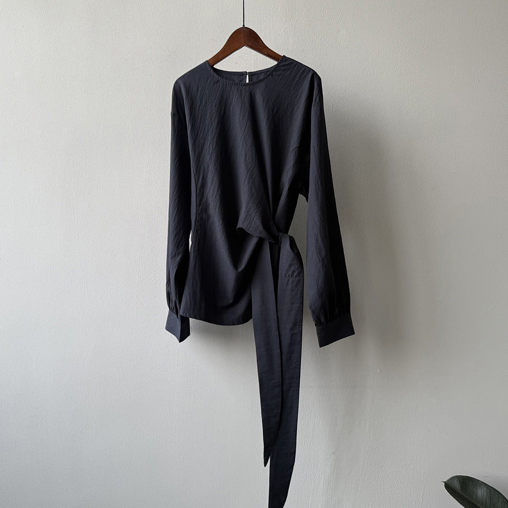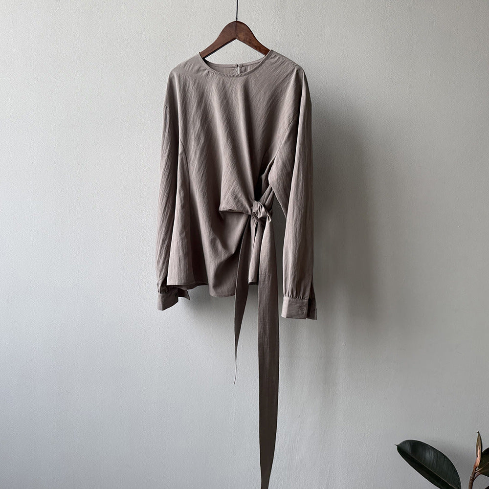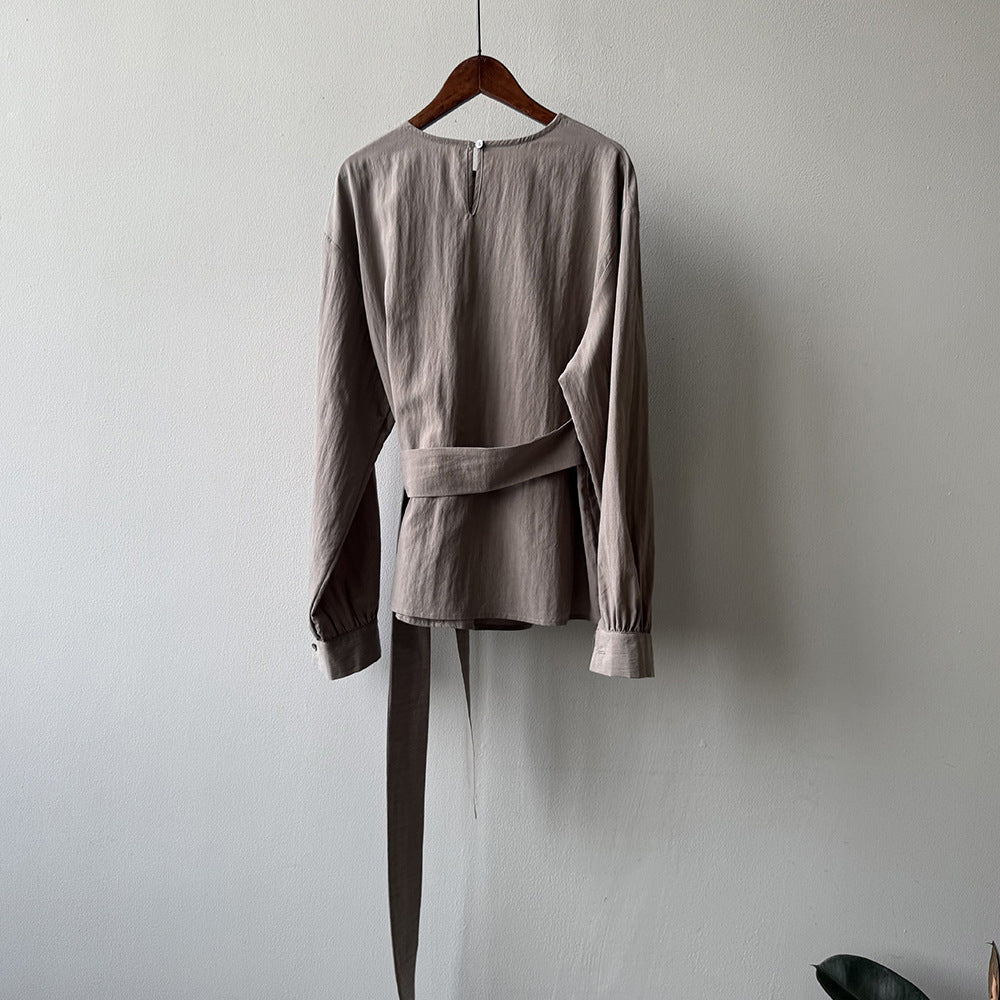 【Y82628】實拍綁帶收腰高級感天絲襯衫250918