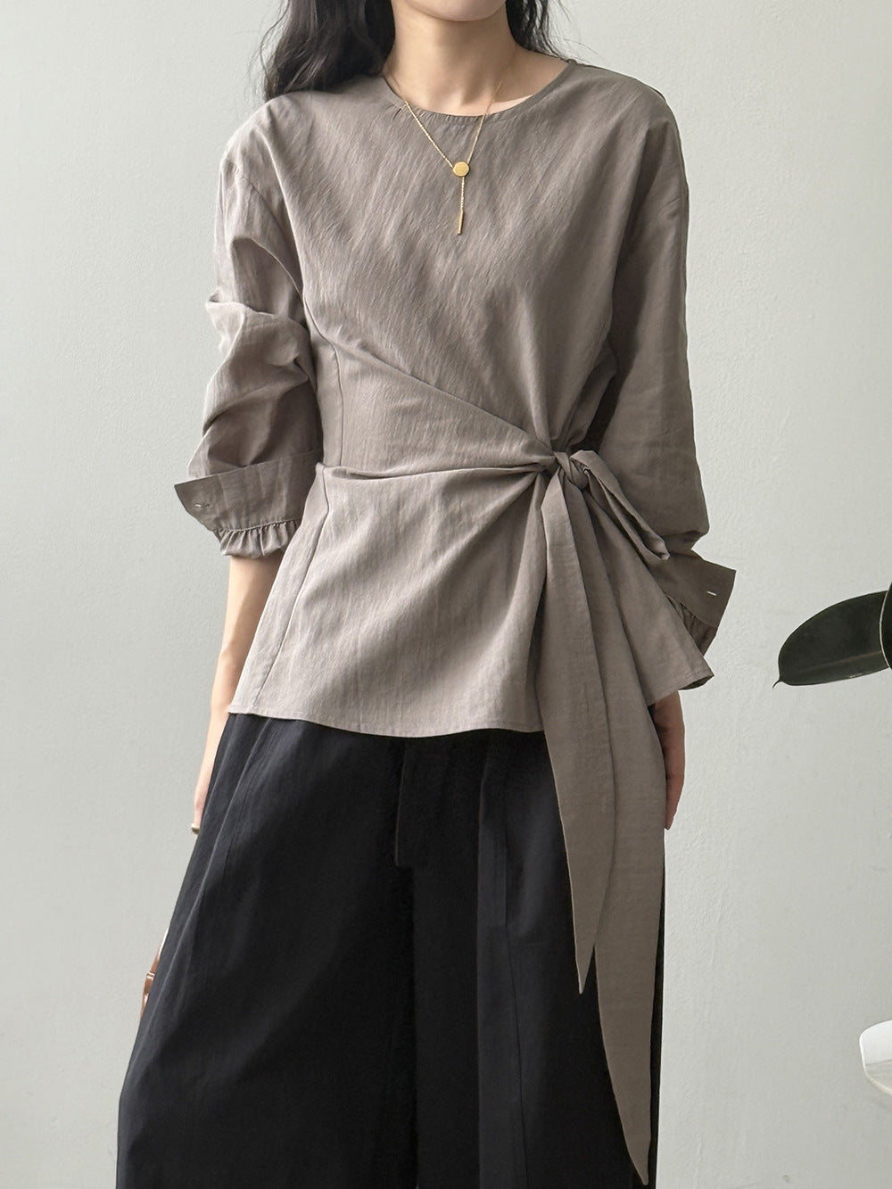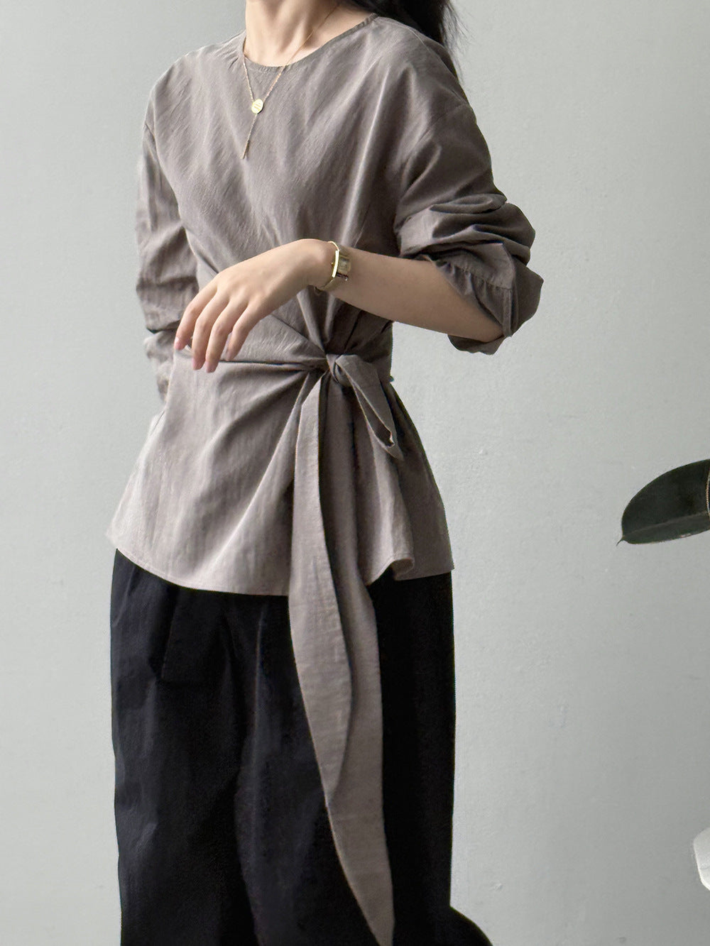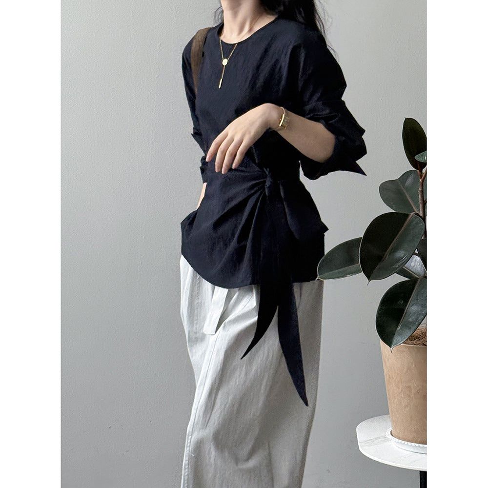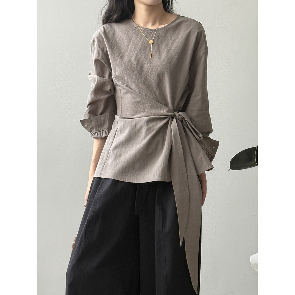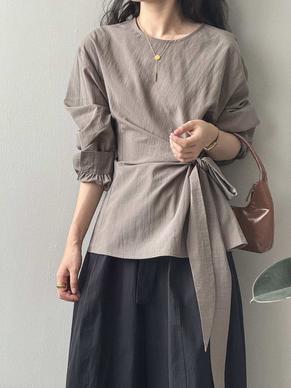 【Y82628】實拍綁帶收腰高級感天絲襯衫250918