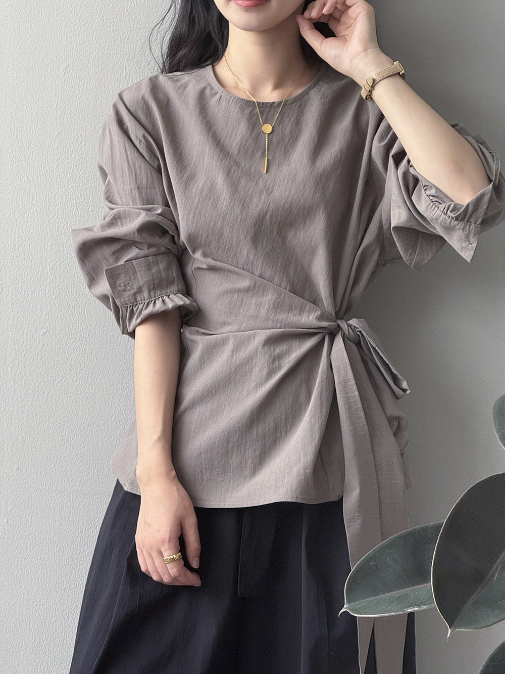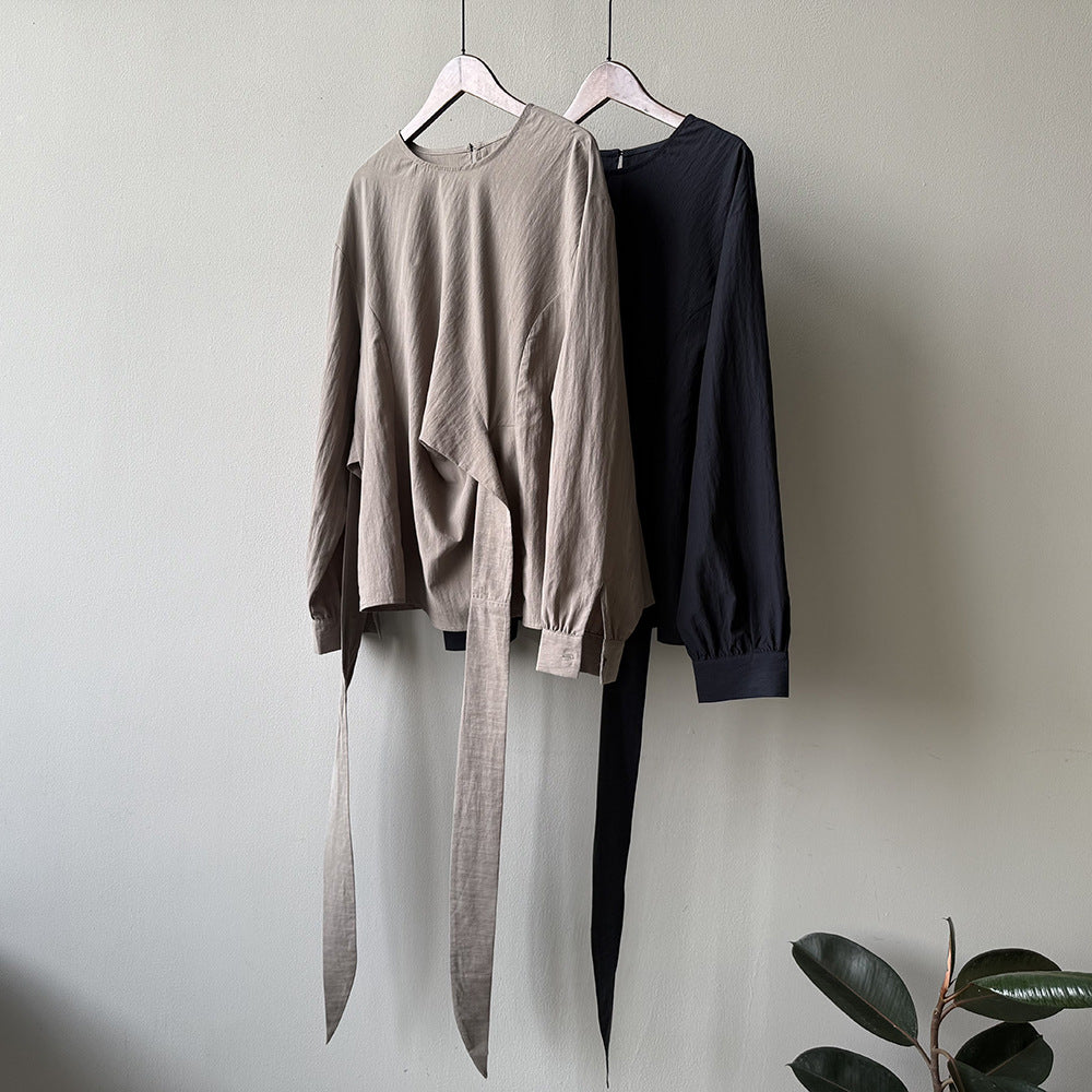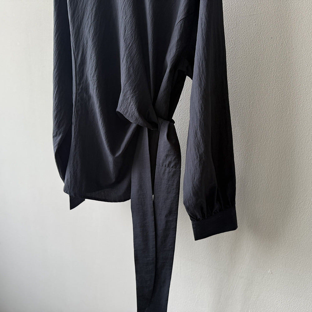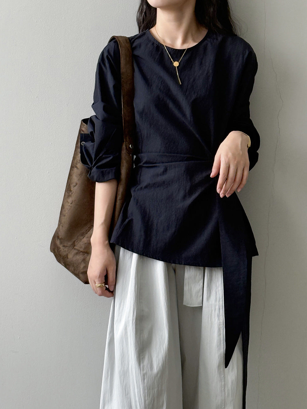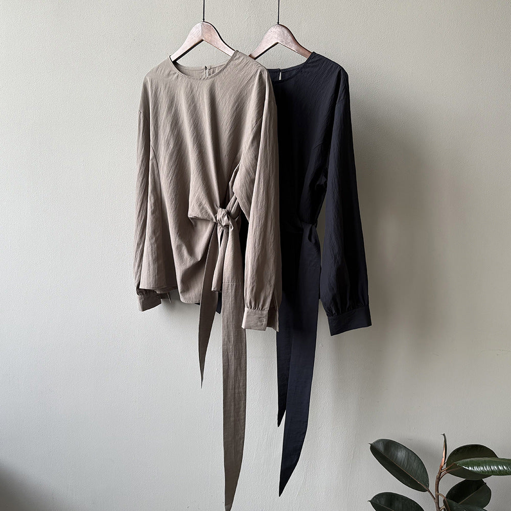 【Y82628】實拍綁帶收腰高級感天絲襯衫250918