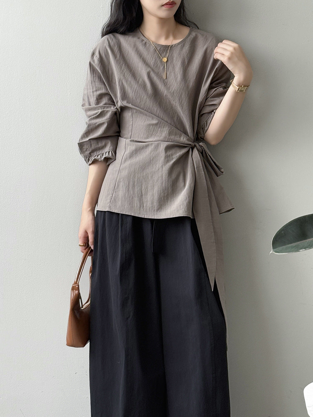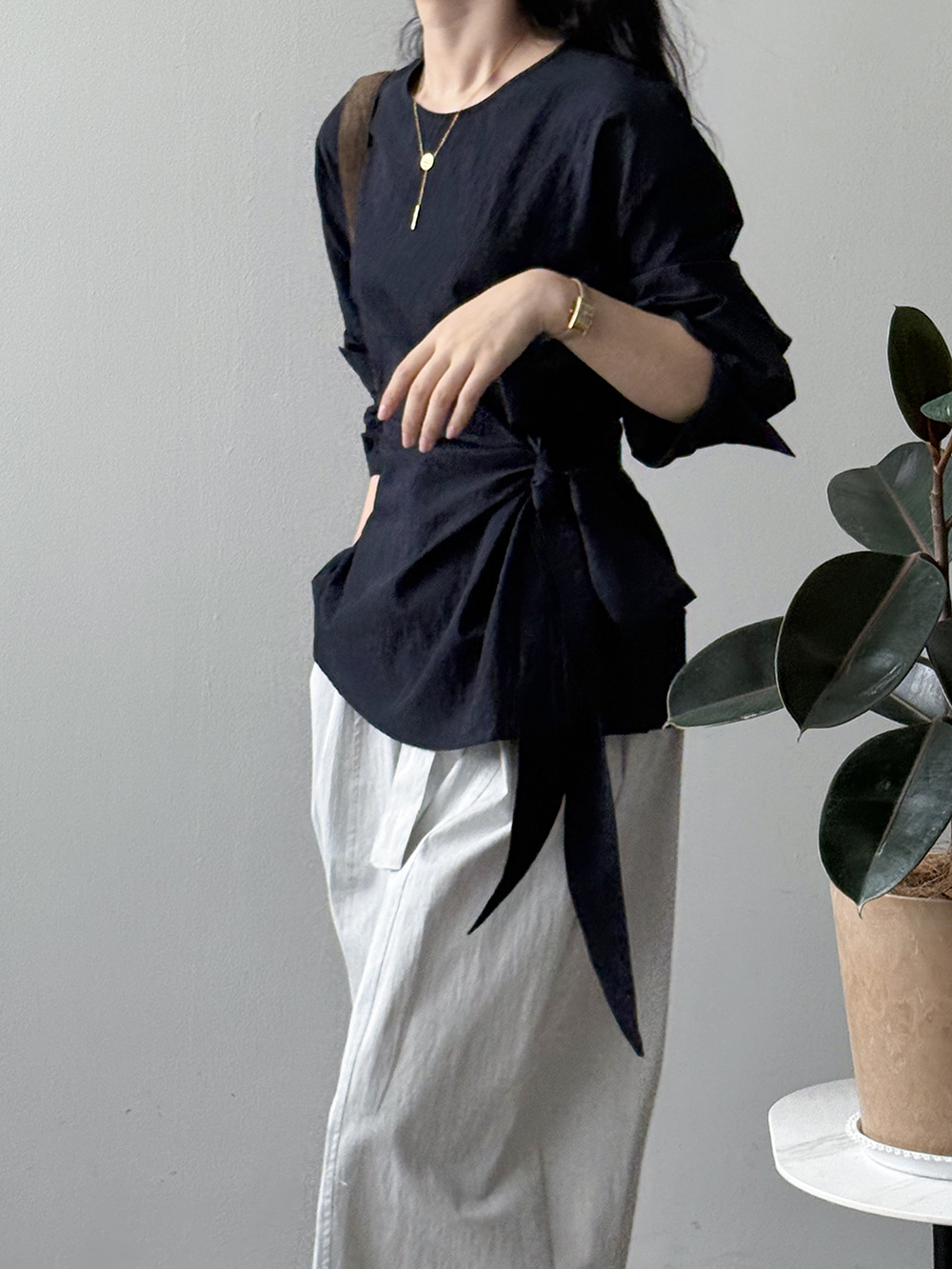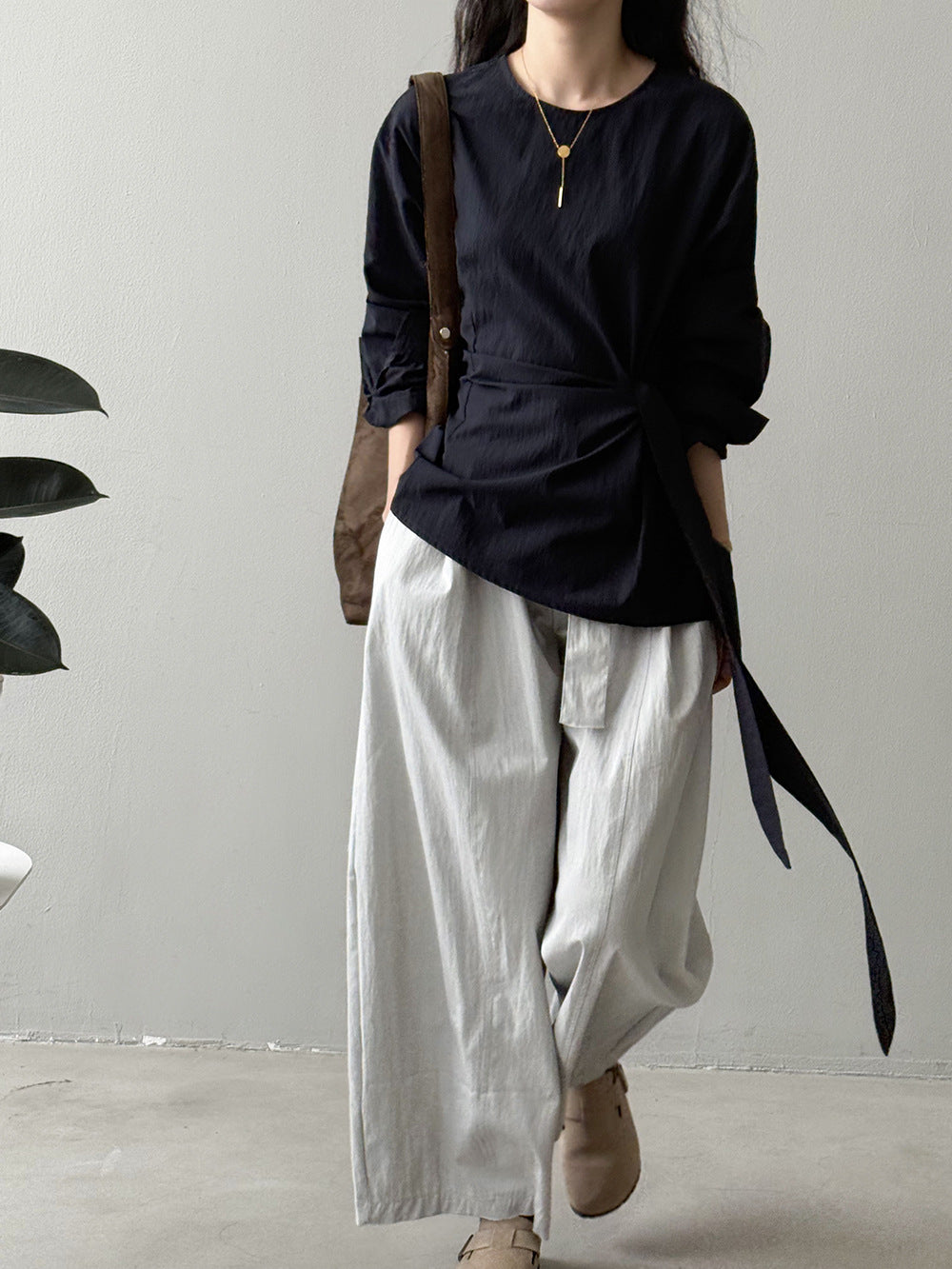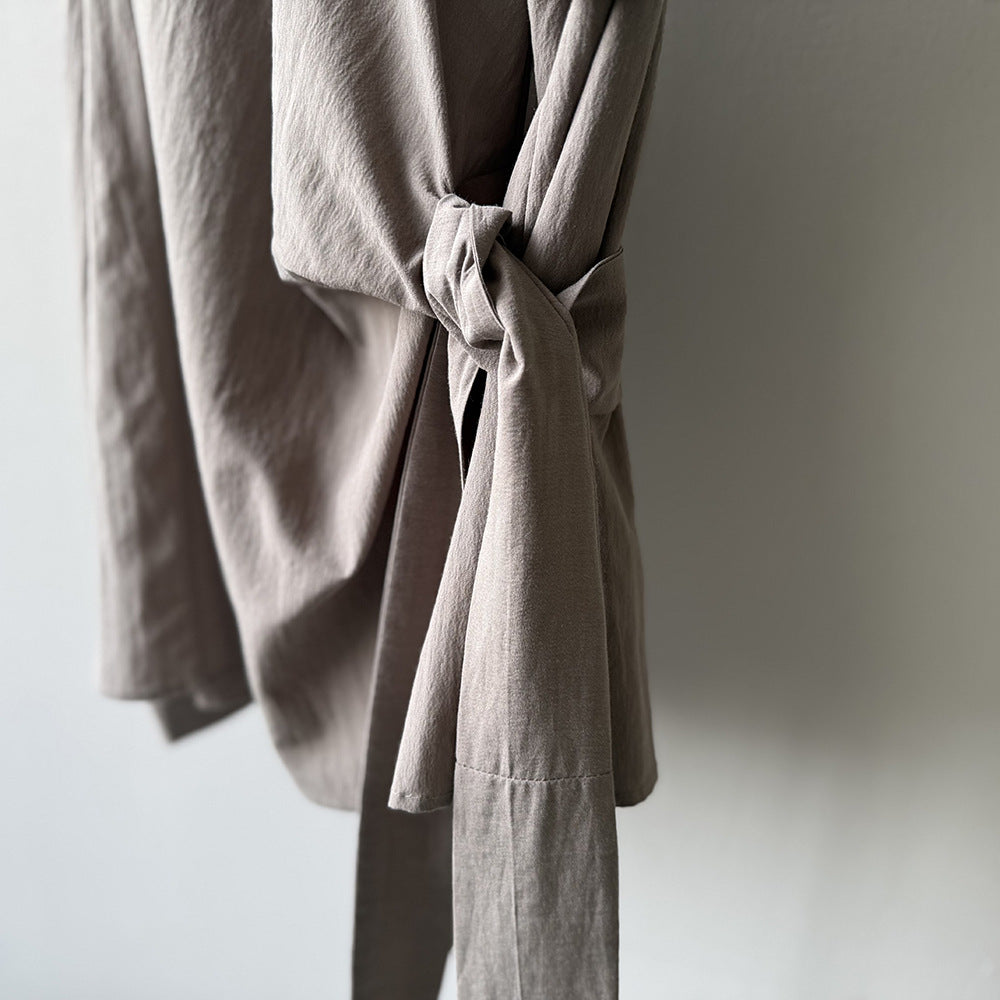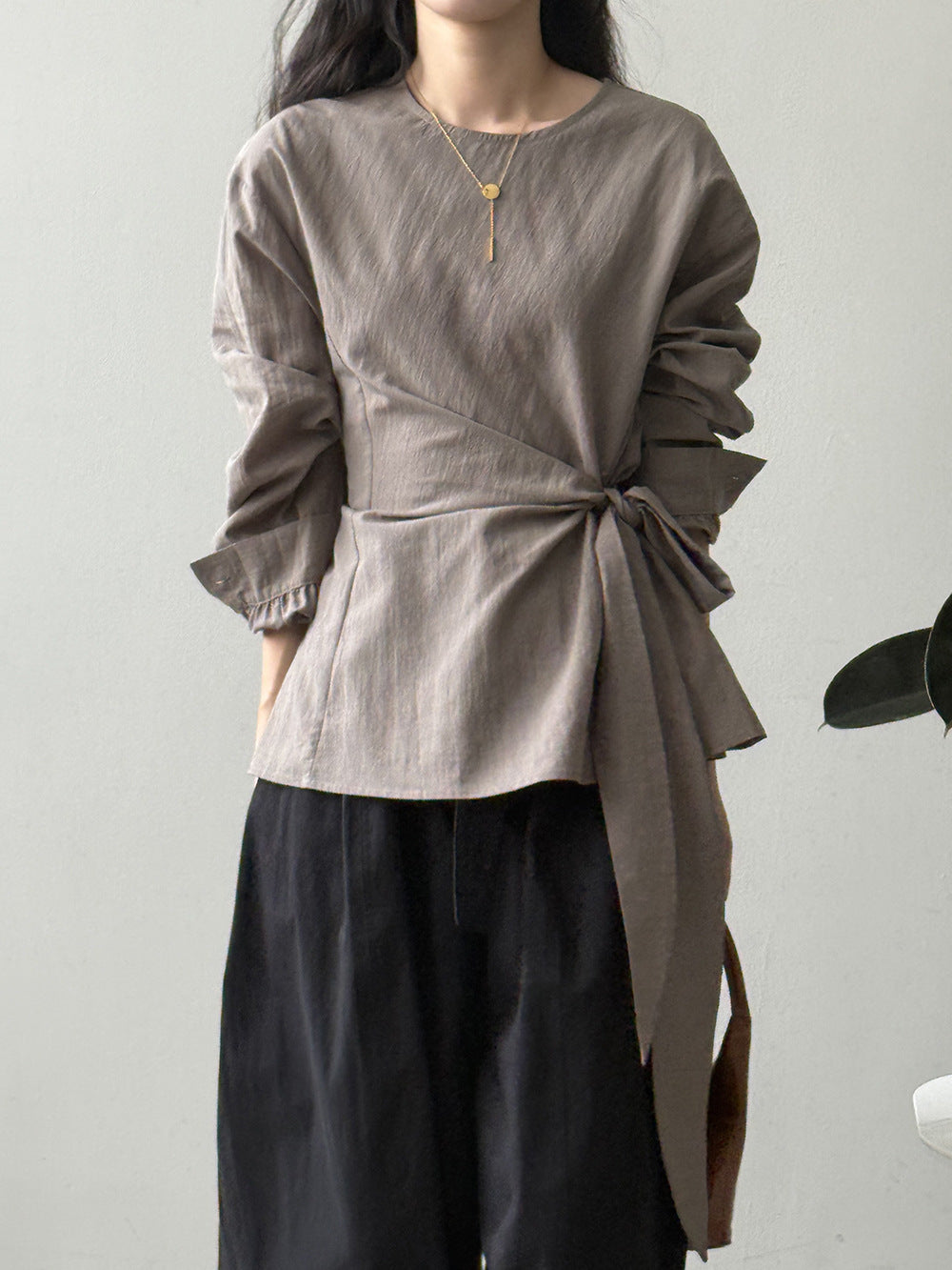 【Y82628】實拍綁帶收腰高級感天絲襯衫250918