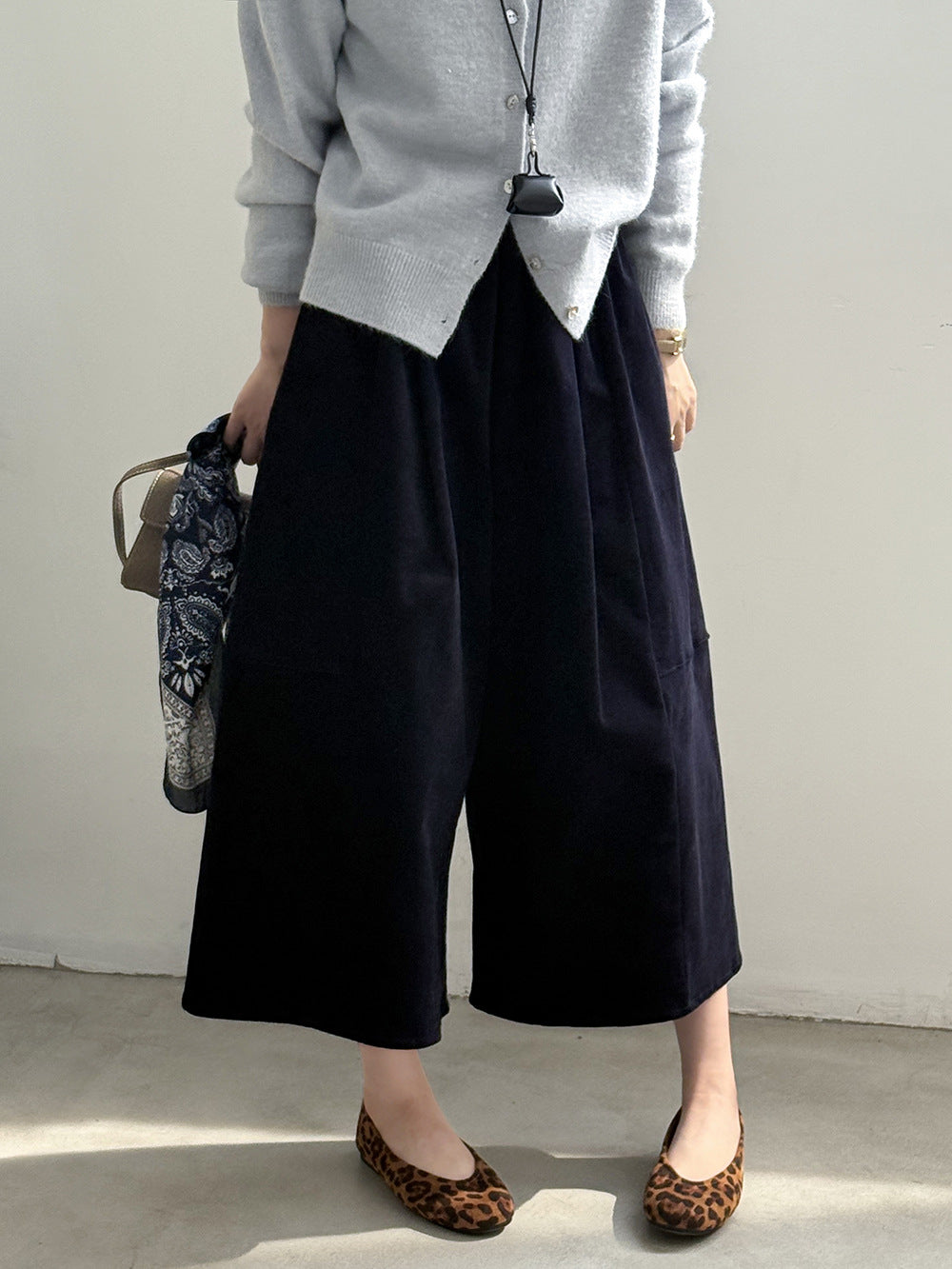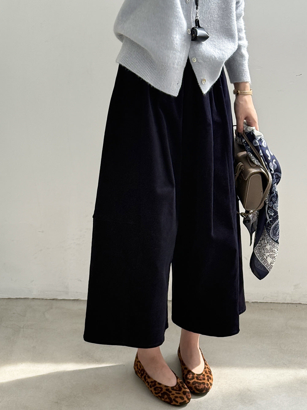 【Y82636】實拍燈芯絨超顯瘦闊腿八分褲251002